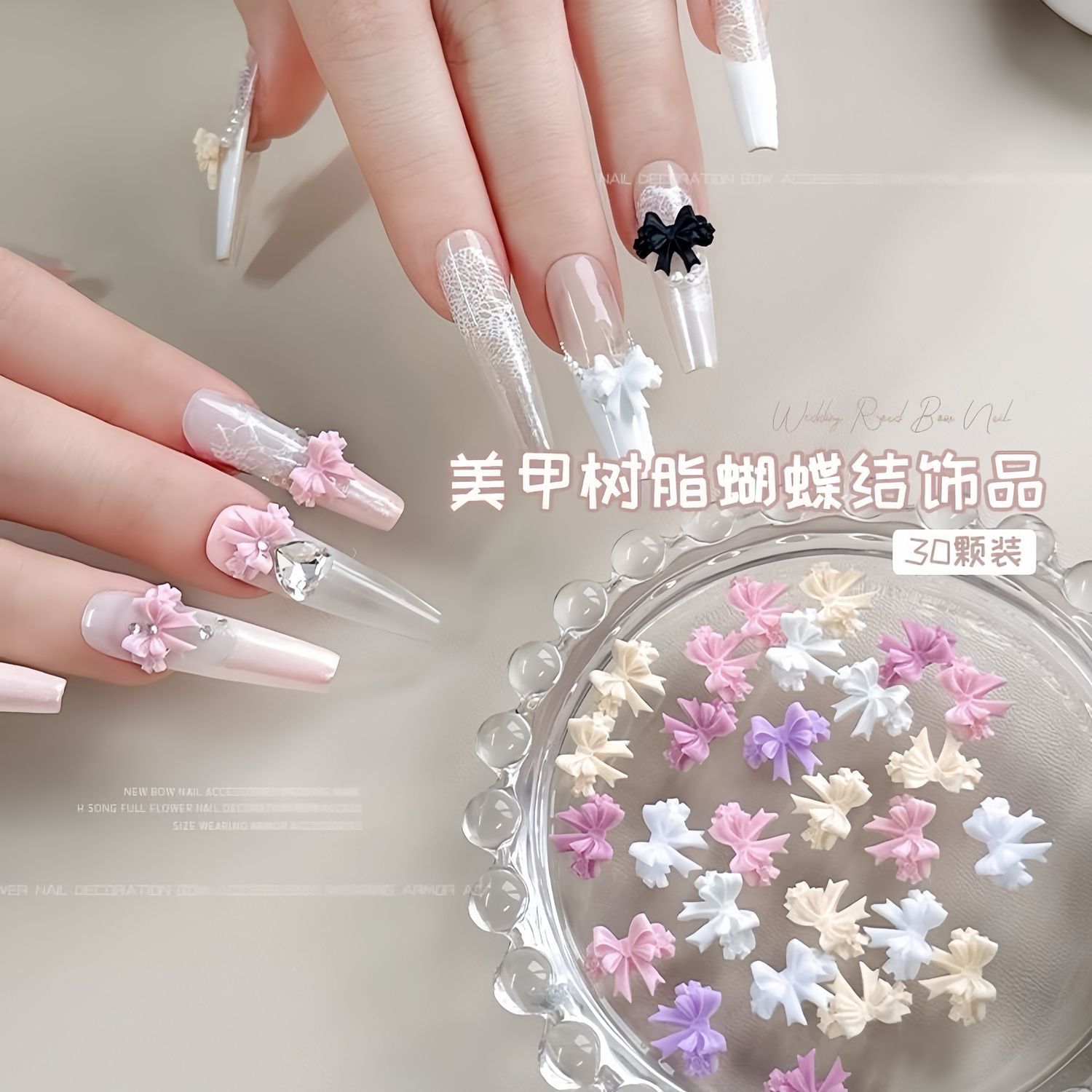 새로운 인터넷 연예인 나비 매듭 네일 아트 액세서리 인기 혼합 네일 플로팅 나비 넥타이 수지 입체 네일 장식