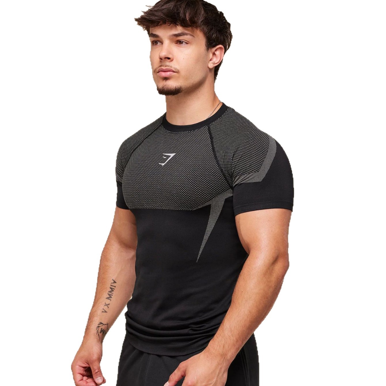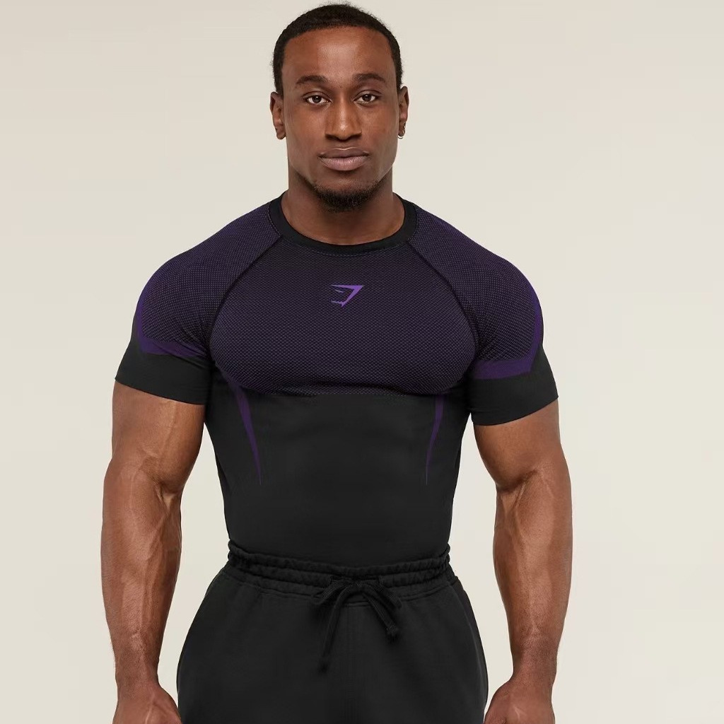GYMSHARK 피트니스 탑 남성 캐주얼 러닝 속건성 통기성 타이츠 반팔 티셔츠 남성 근육 상어