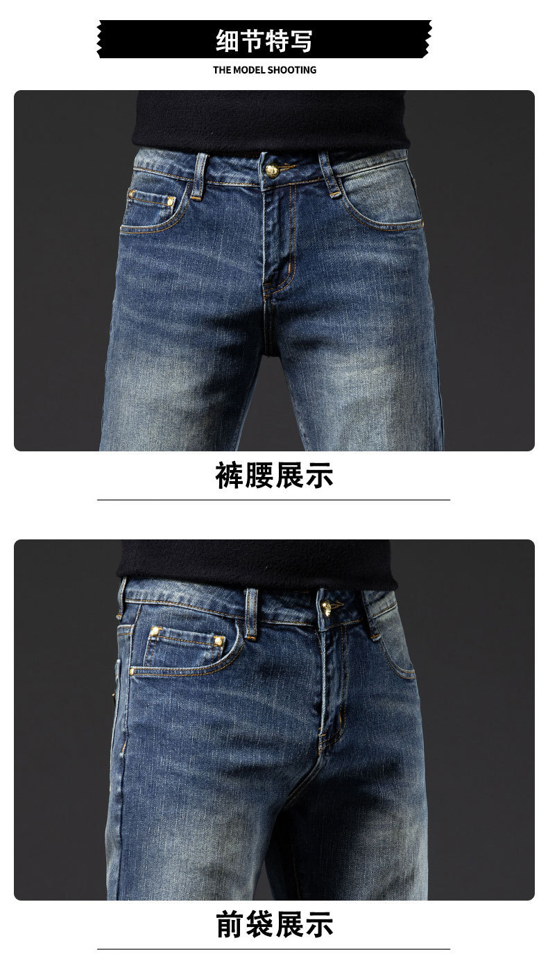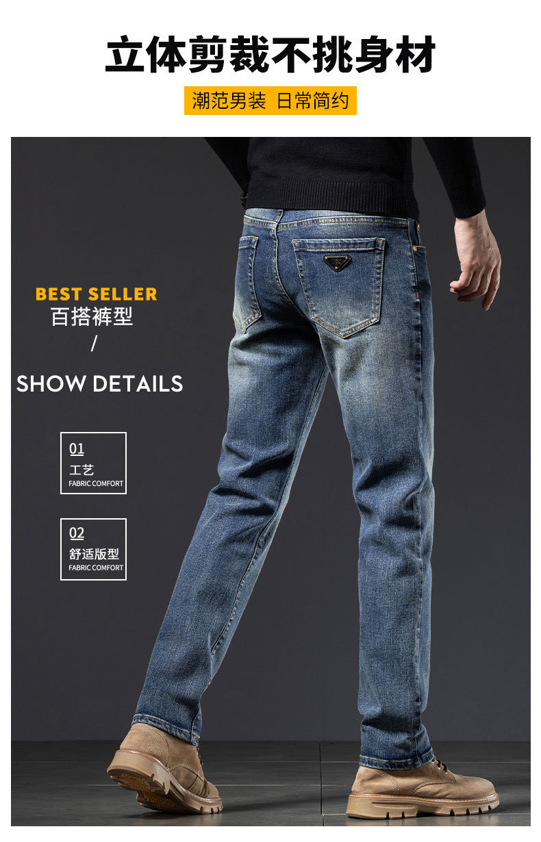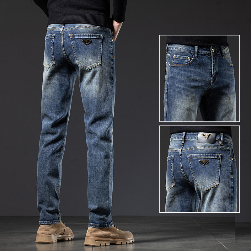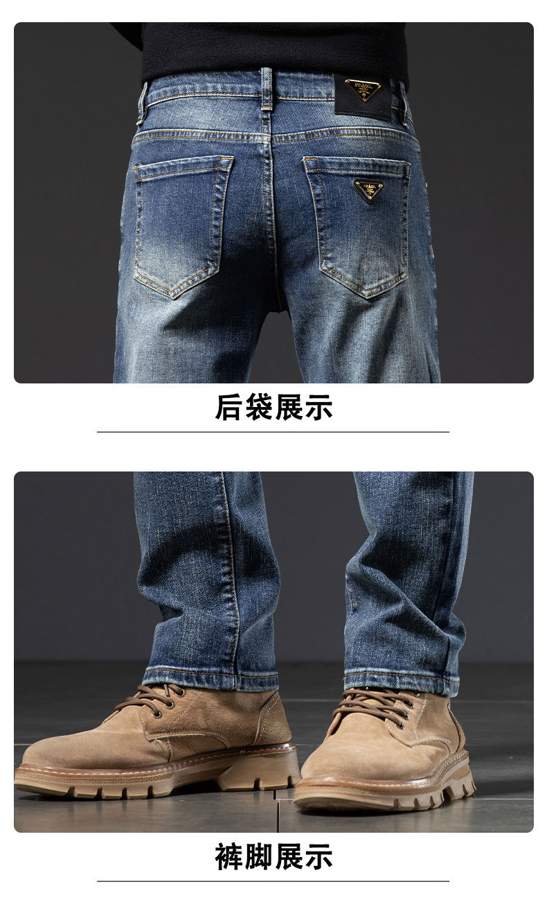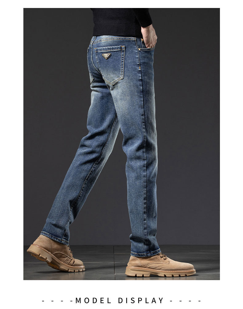 2025년 신상 고급 남성용 청바지 가을 겨울 신축성 슬림핏 스몰 스트레이트 브랜드 유럽풍 캐주얼 트렌디 팬츠