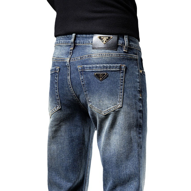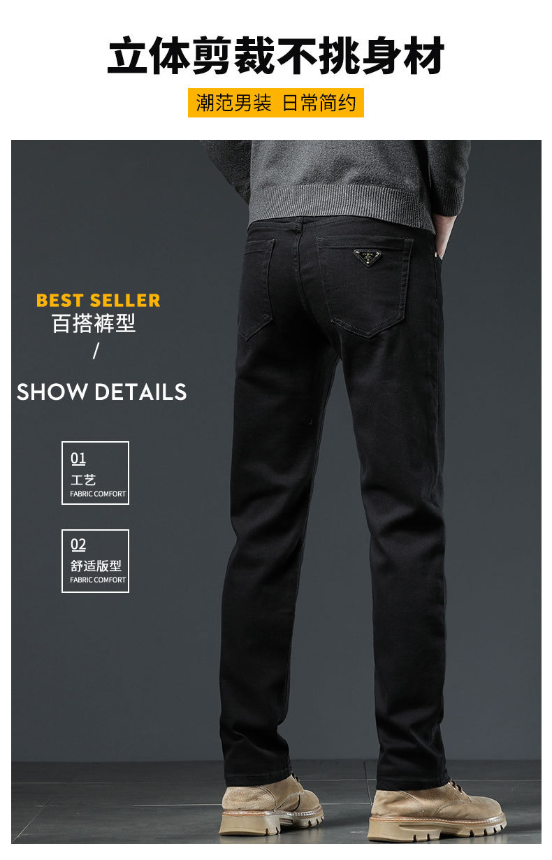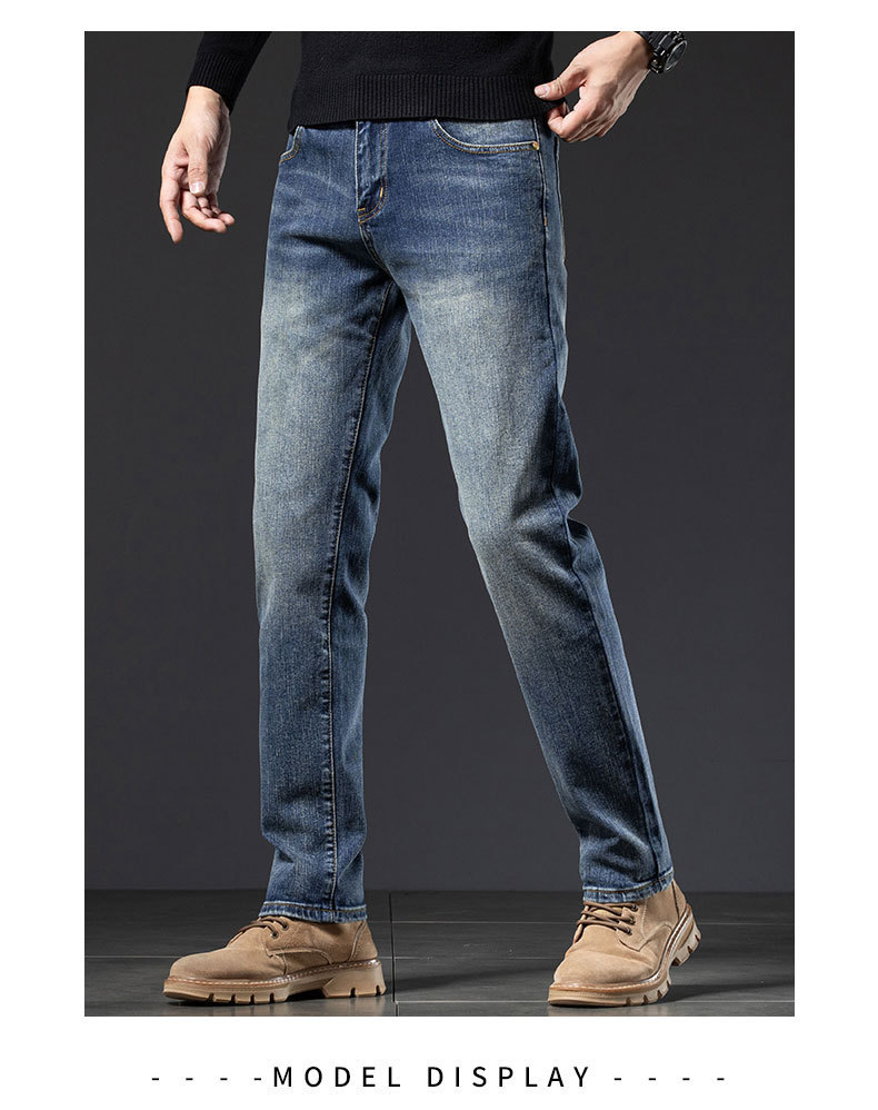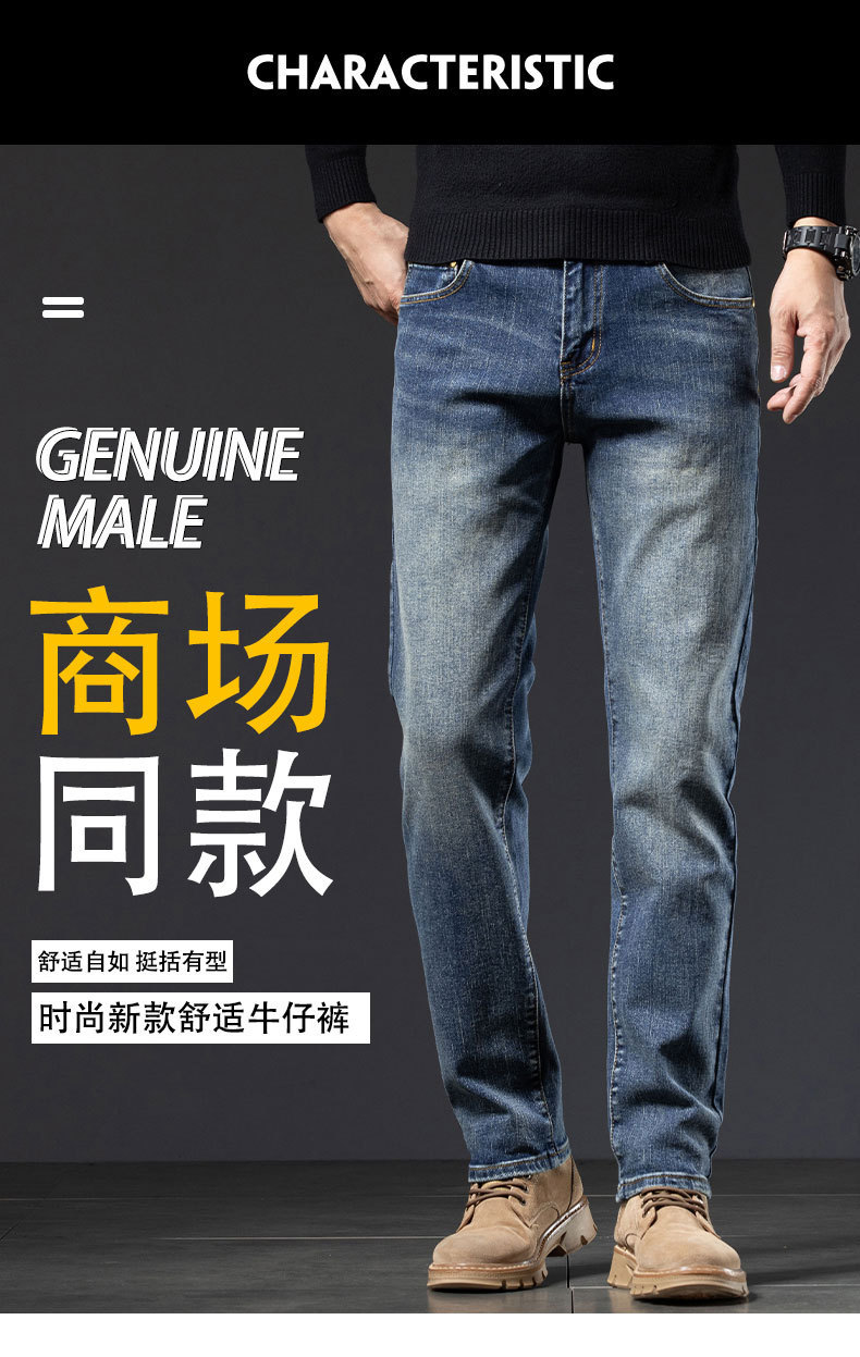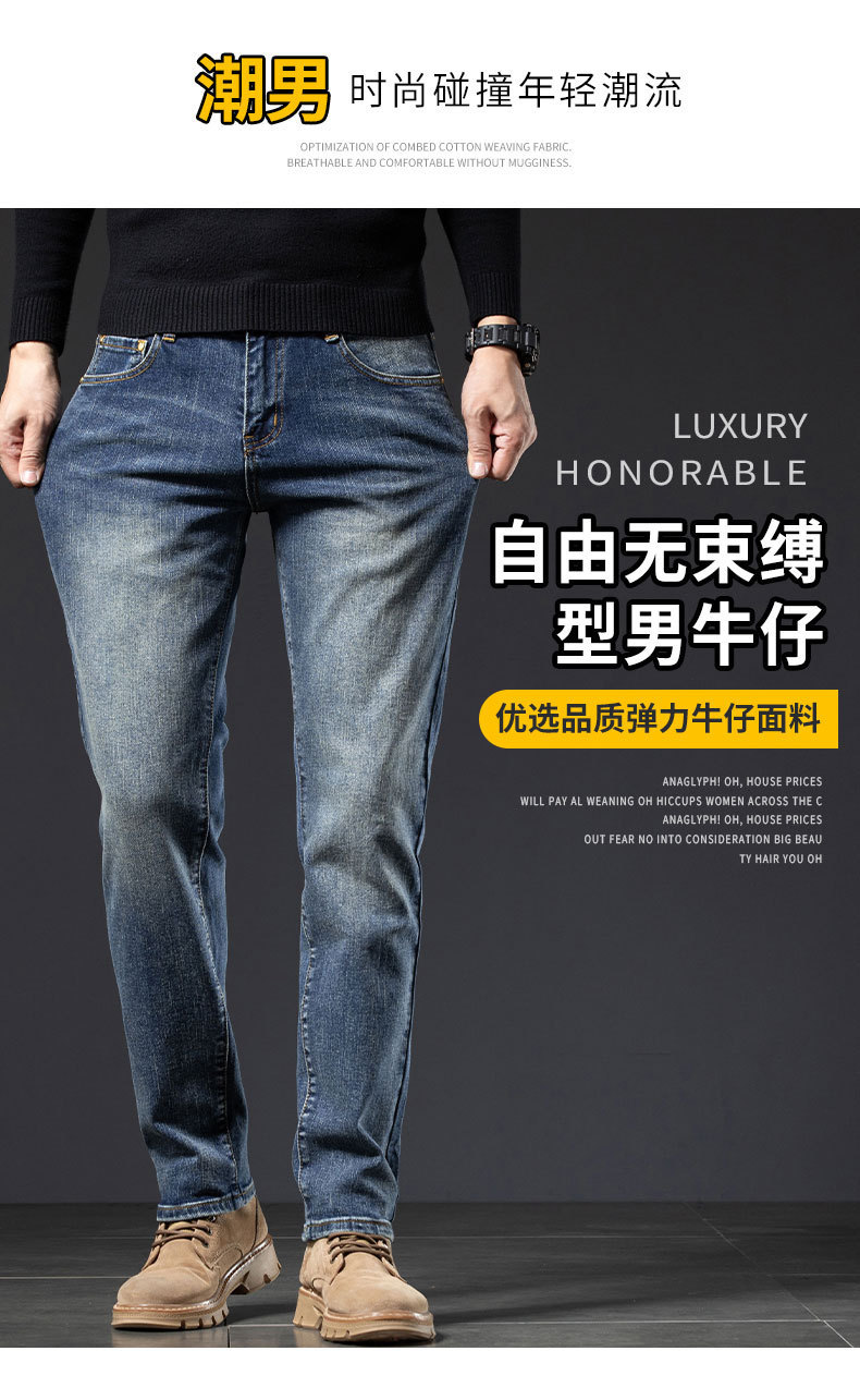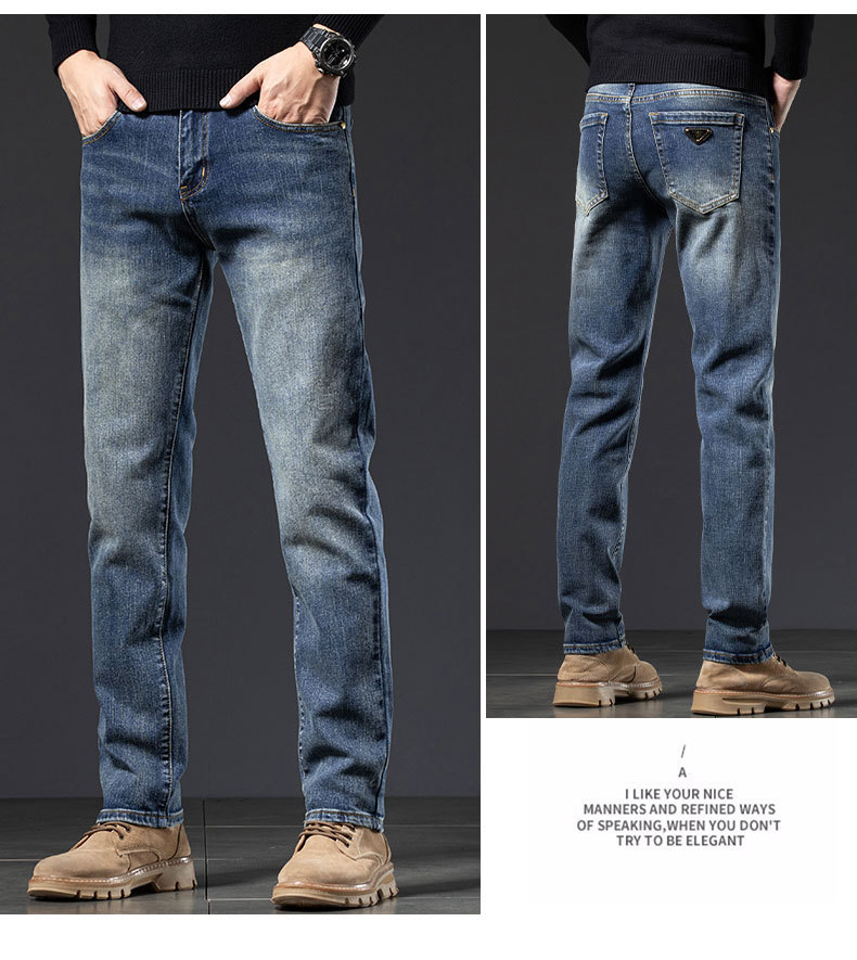 2025년 신상 고급 남성용 청바지 가을 겨울 신축성 슬림핏 스몰 스트레이트 브랜드 유럽풍 캐주얼 트렌디 팬츠