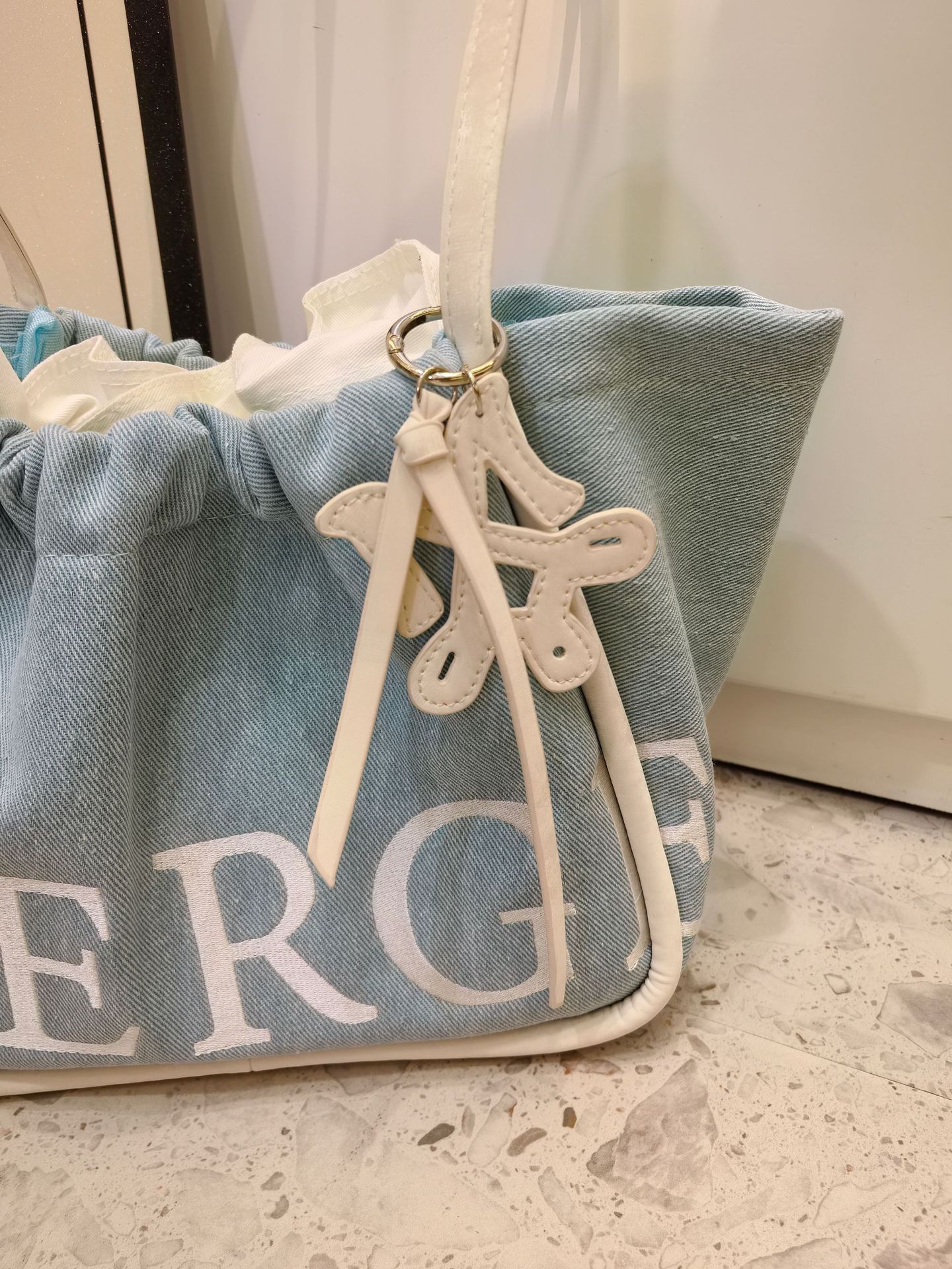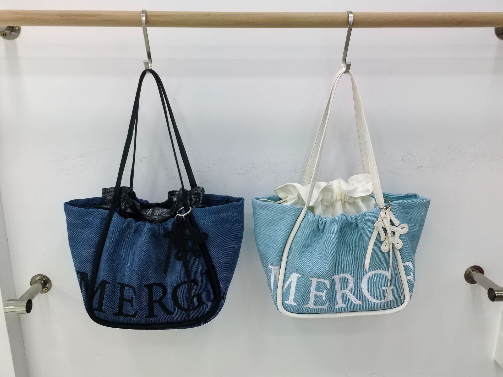 태국 MERGE 미디엄 사이즈 데님 컬러 토트백 2025 신상 심플 드로스트링 숄더백 겸 겨드랑이백 여성용 핸드백