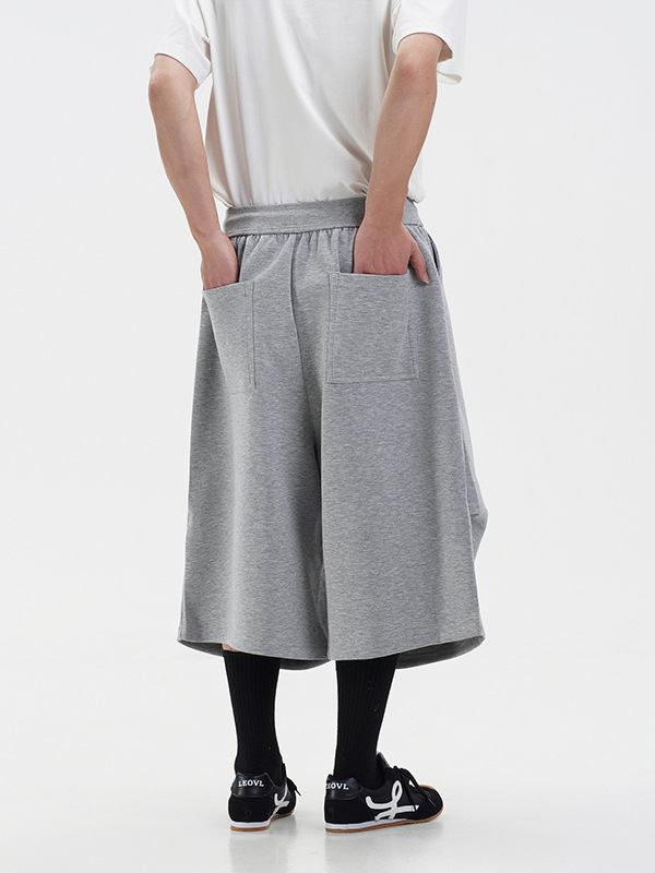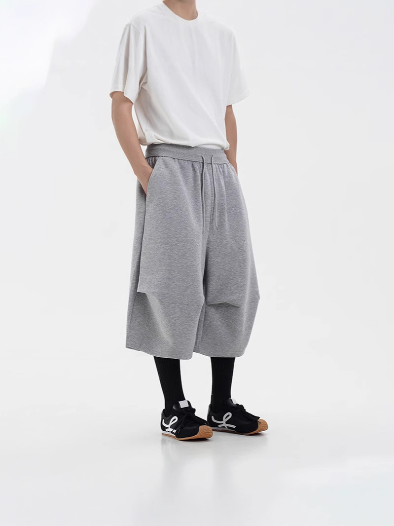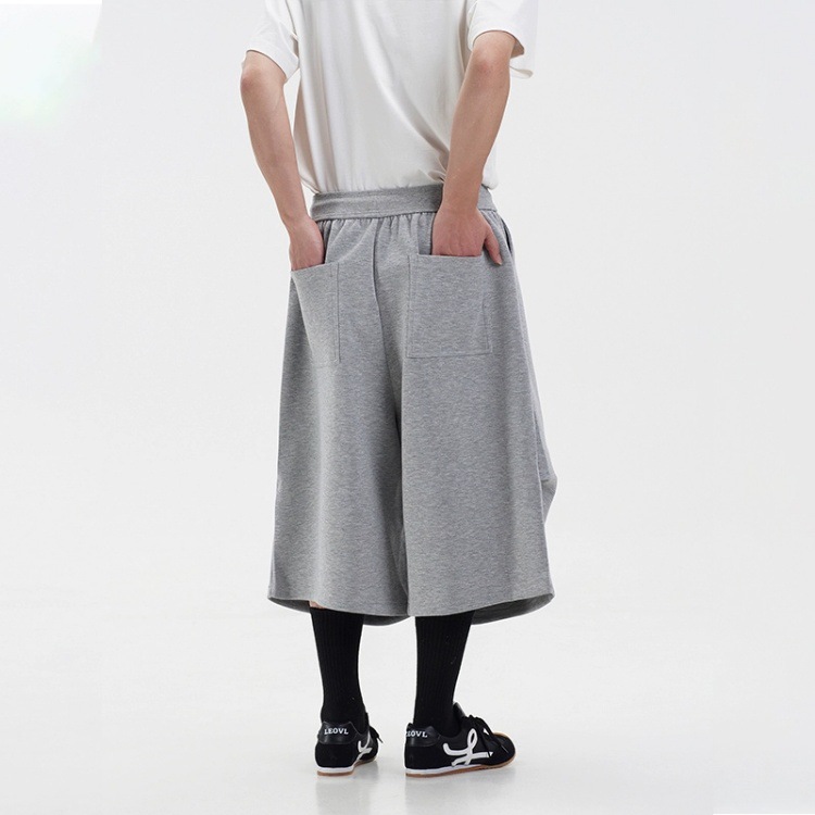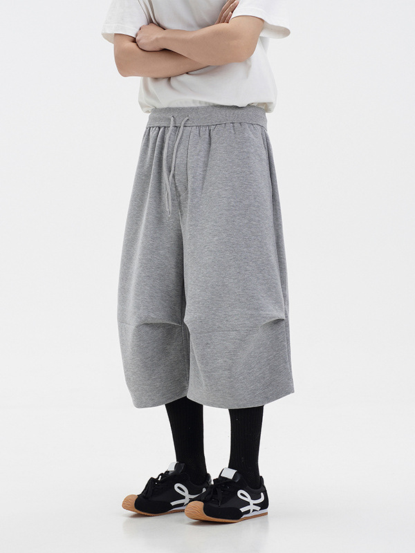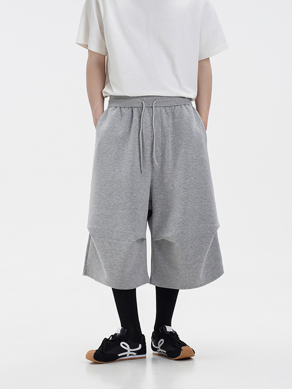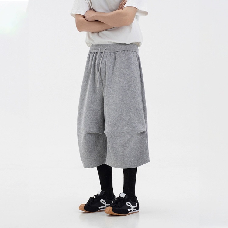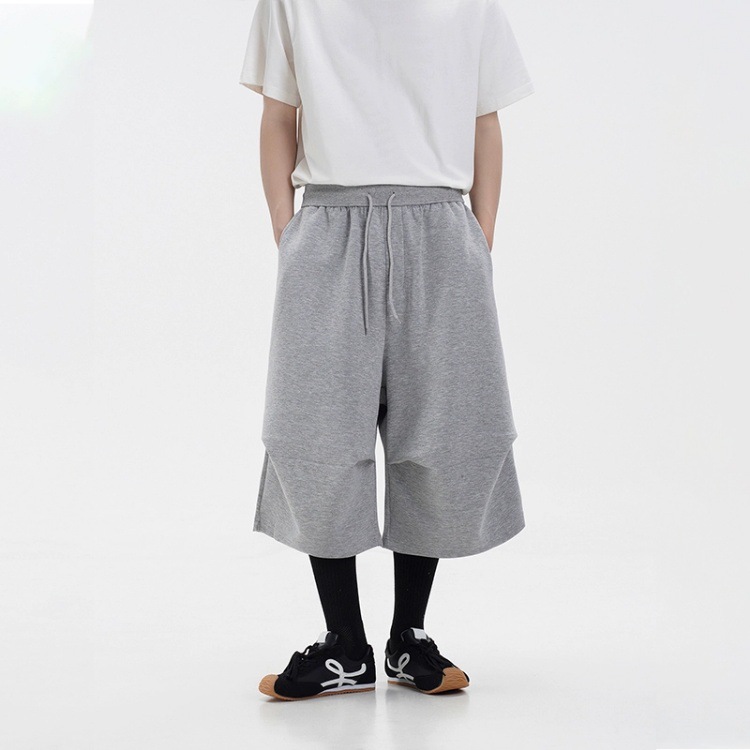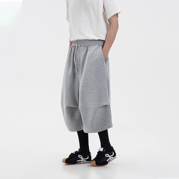 라이트 그레이 헤비급 와이드 레그 스포츠 바지 남성 여름 반바지 아메리칸 트렌디 브랜드 루즈 실루엣 세이버 크롭 팬츠
