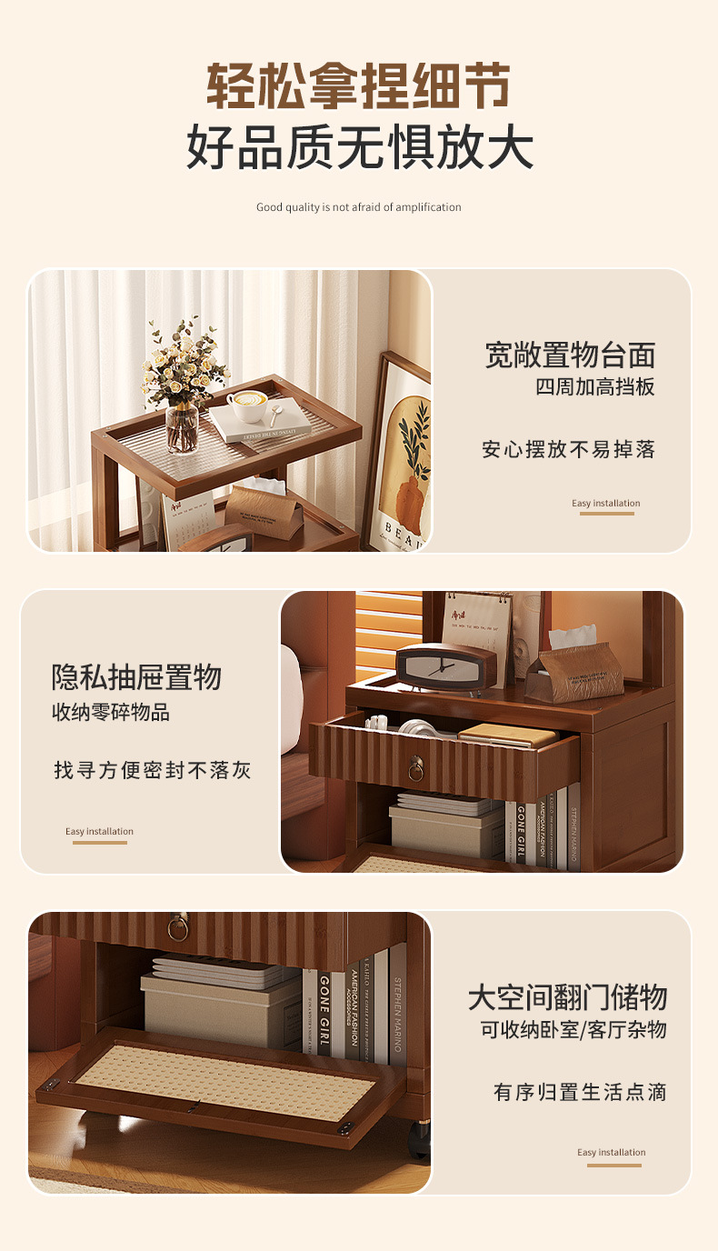 침실용 가정용 침대 옆 탁자, 가벼운 럭셔리 및 고급 감각, 임대용 소형 초소형 침대 옆 수납 캐비닛, 소파, 작은 사이드 테이블