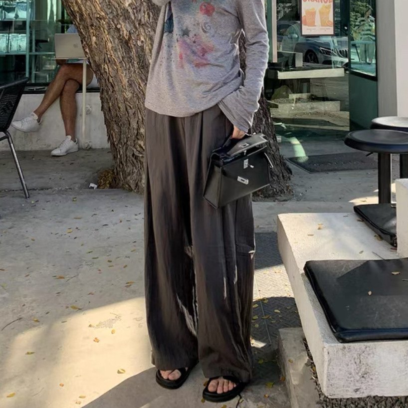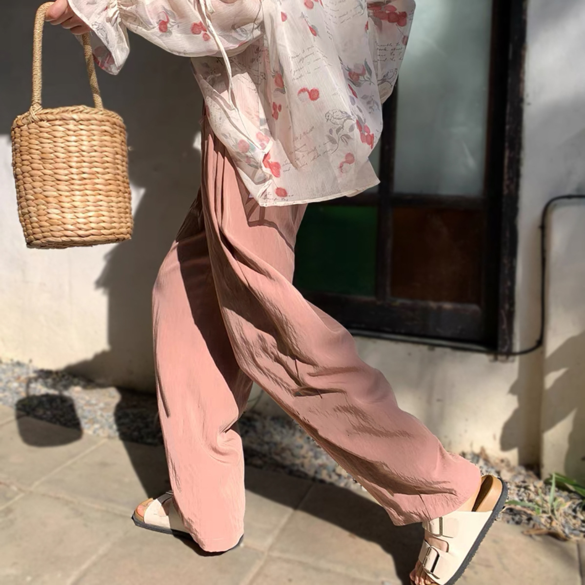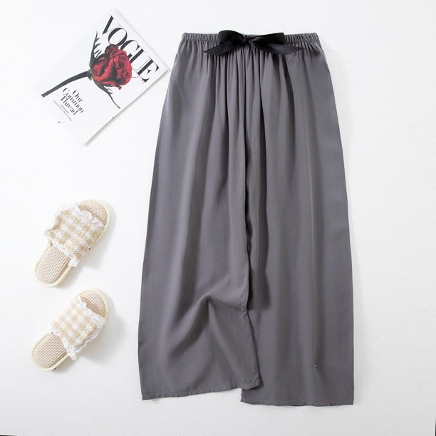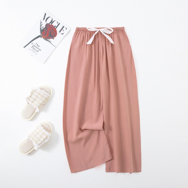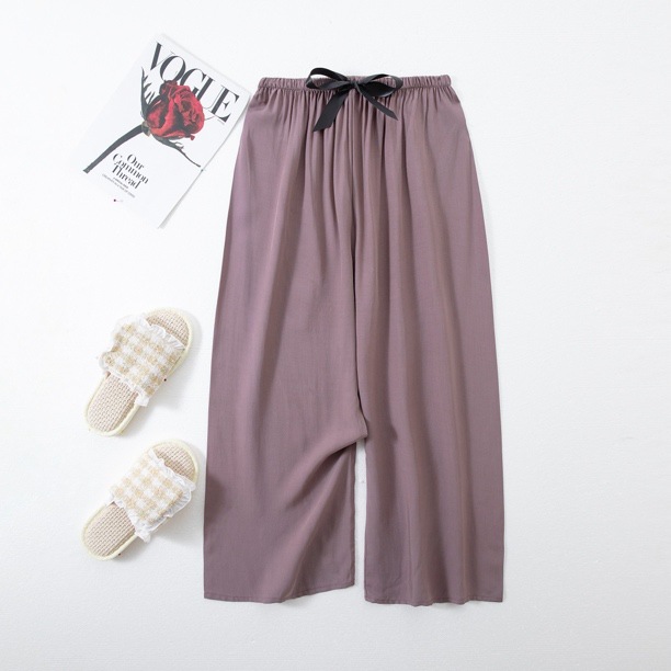 봄여름용 얇은 홈웨어, 여름철 면 실크 잠옷, 해변용 9부 와이드 팬츠, 면 실크 소재로 편안하고 외출복으로도 착용 가능