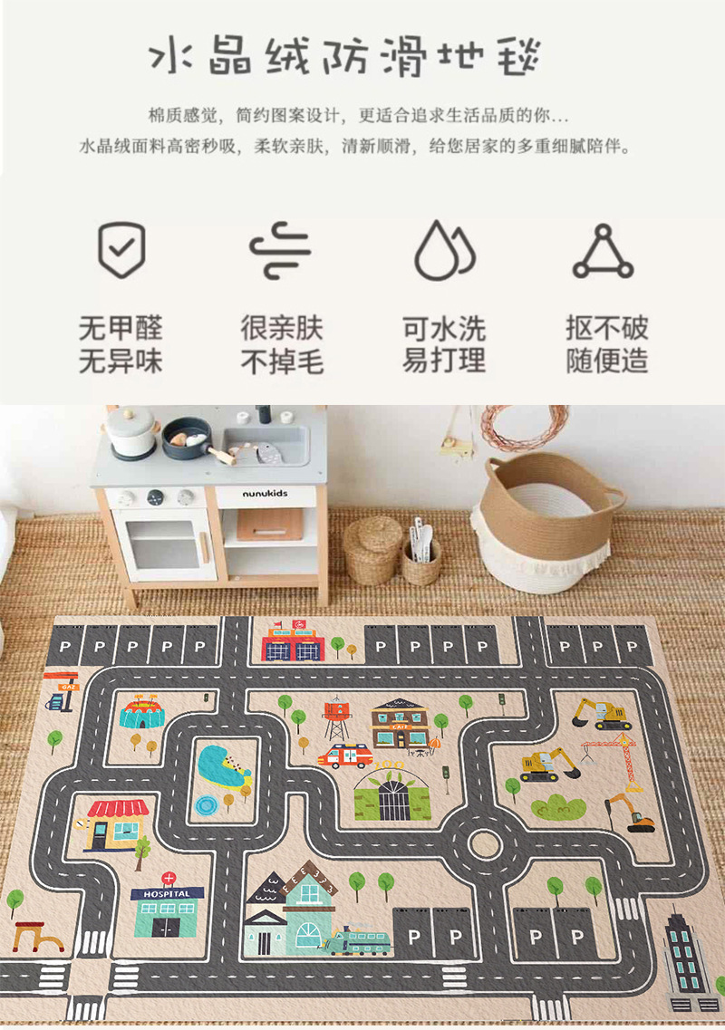 자동차 주차장 바닥 매트, 어린이 방 독서 공간, 침실 크롤링 매트, 거실 조기 교육 게임 및 엔터테인먼트 공간 카펫