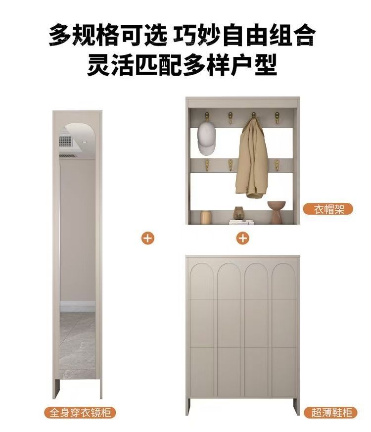 초박형 신발장, 현관, 실용적이고 비용 효율적인 일체형 수납 신발장, 옷걸이, 전신 드레싱 거울
