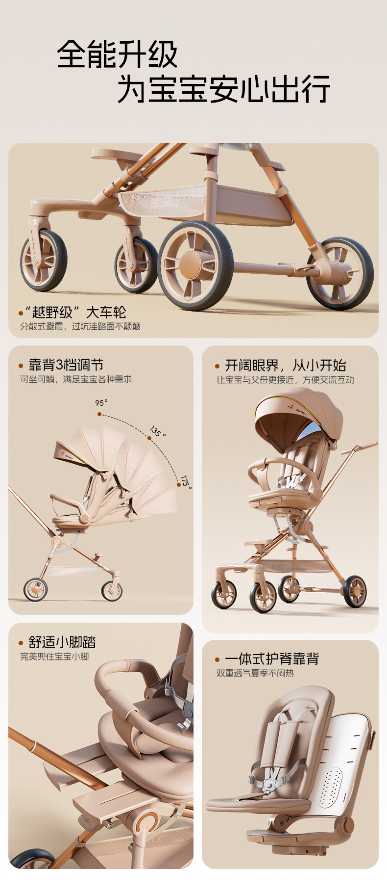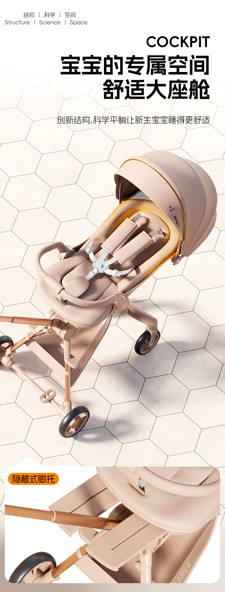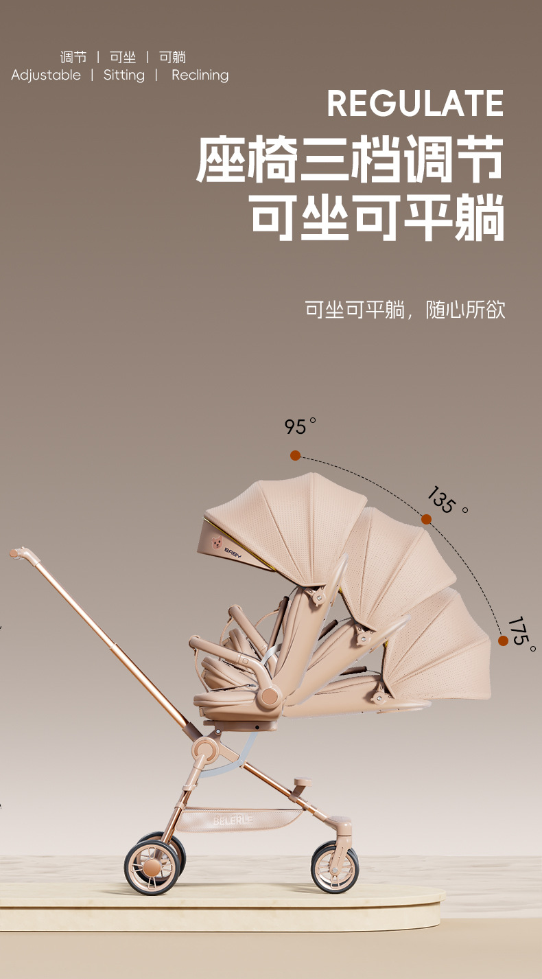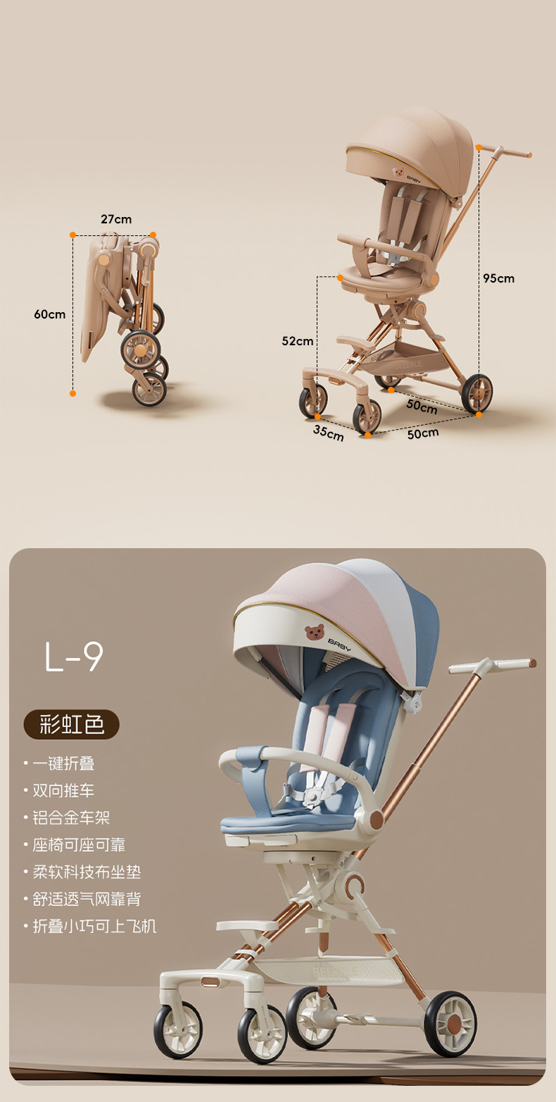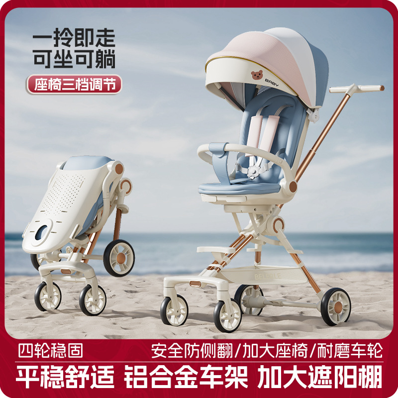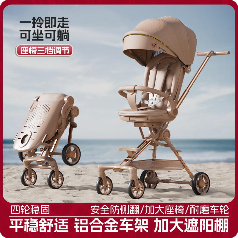 아기 유모차, 앉고 누울 수 있는 양방향 유모차, 아기 유모차, 하이뷰 4륜 슬라이딩 유모차