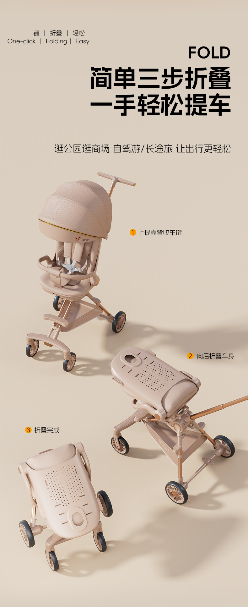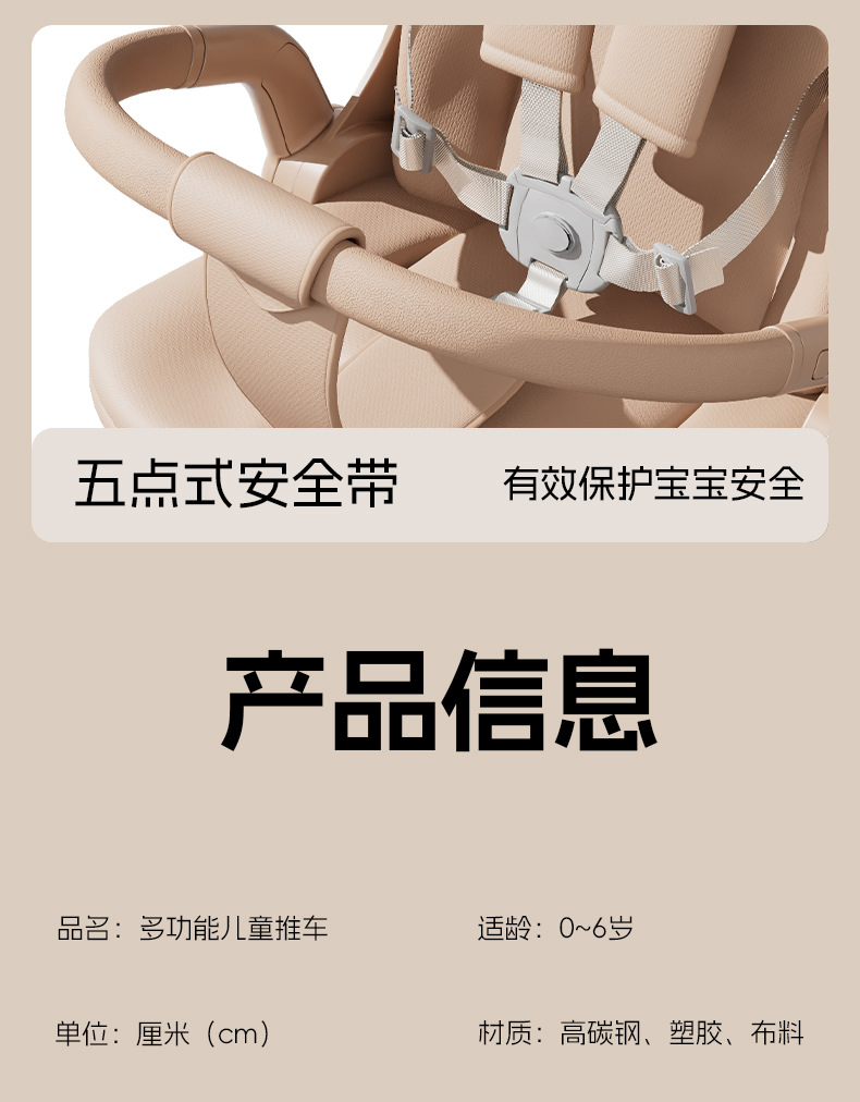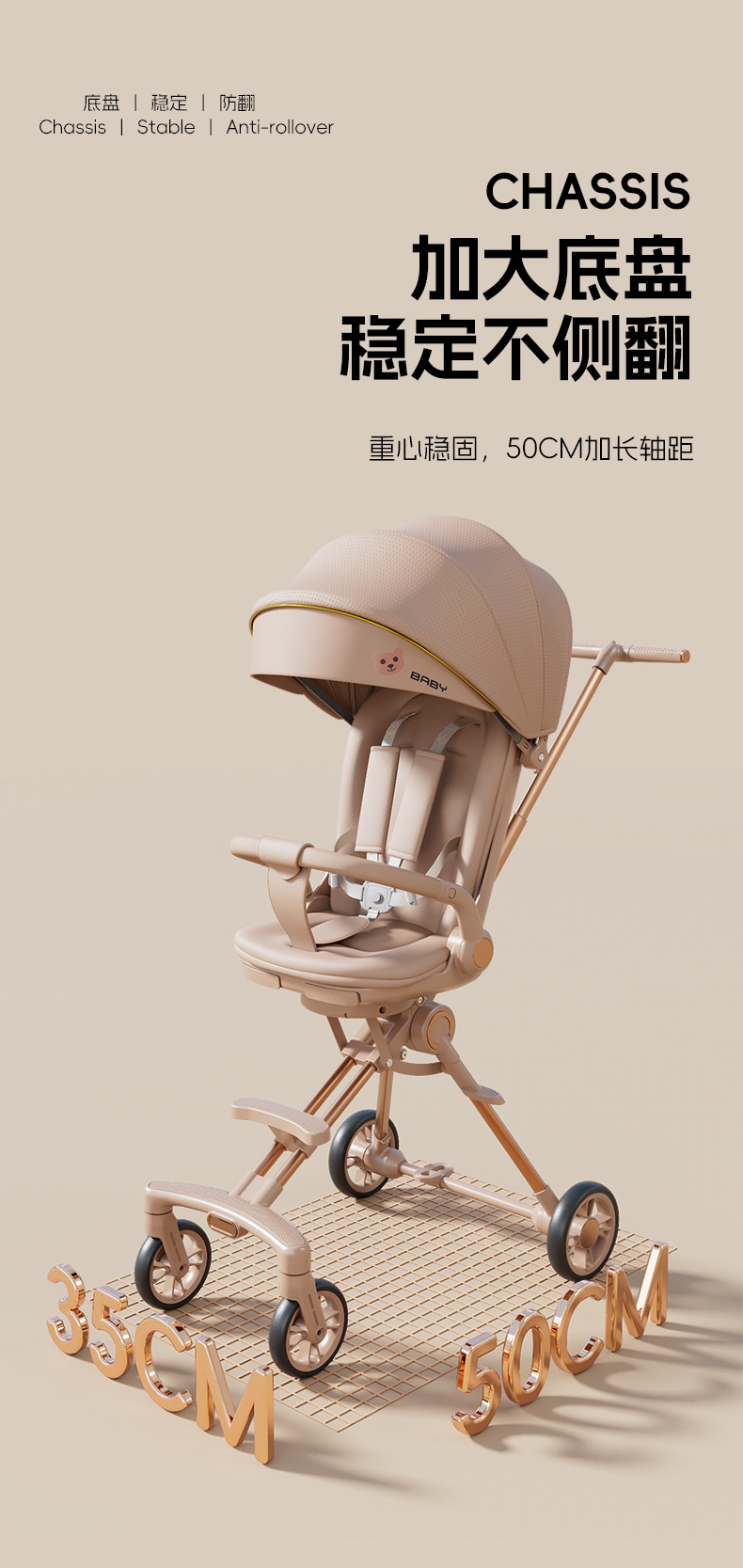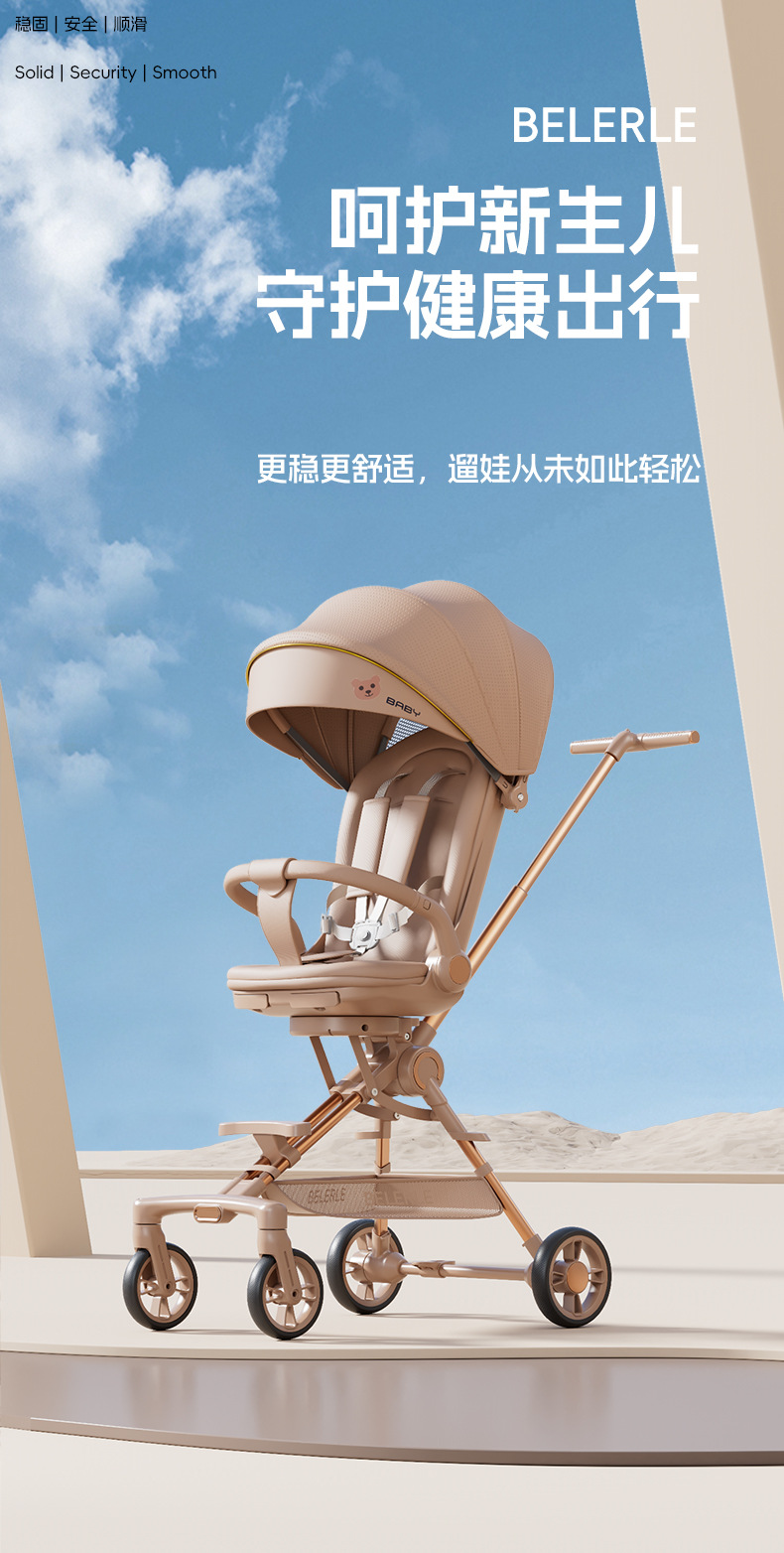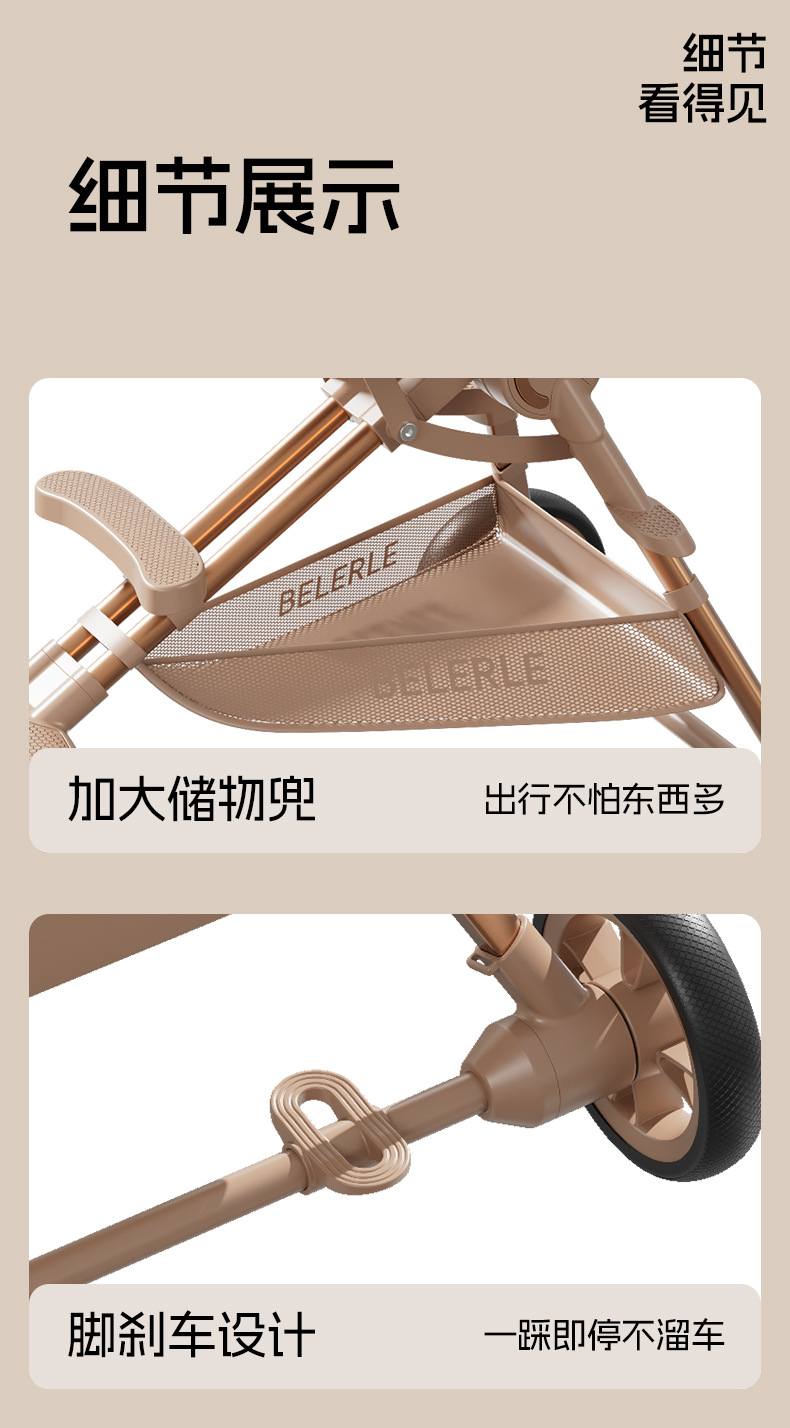 아기 유모차, 앉고 누울 수 있는 양방향 유모차, 아기 유모차, 하이뷰 4륜 슬라이딩 유모차