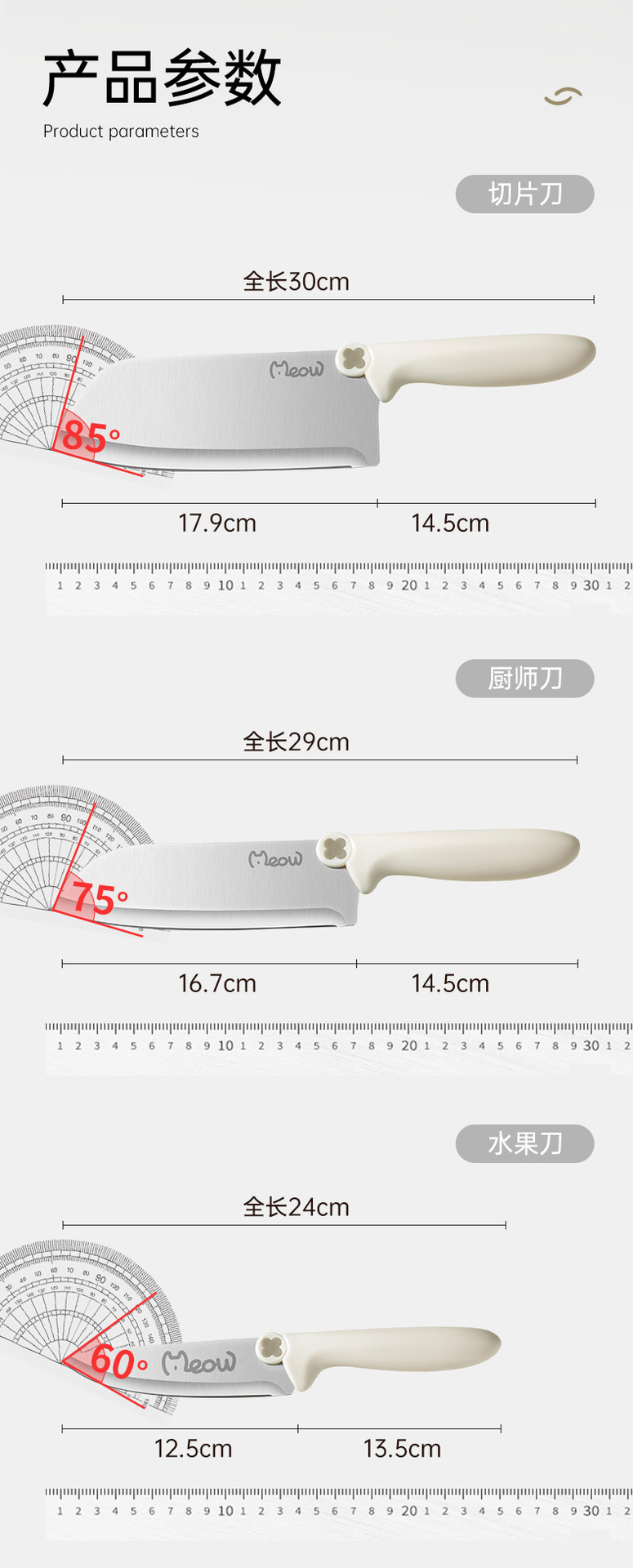 [식품보조칼 3종세트 + 식품보조도마]