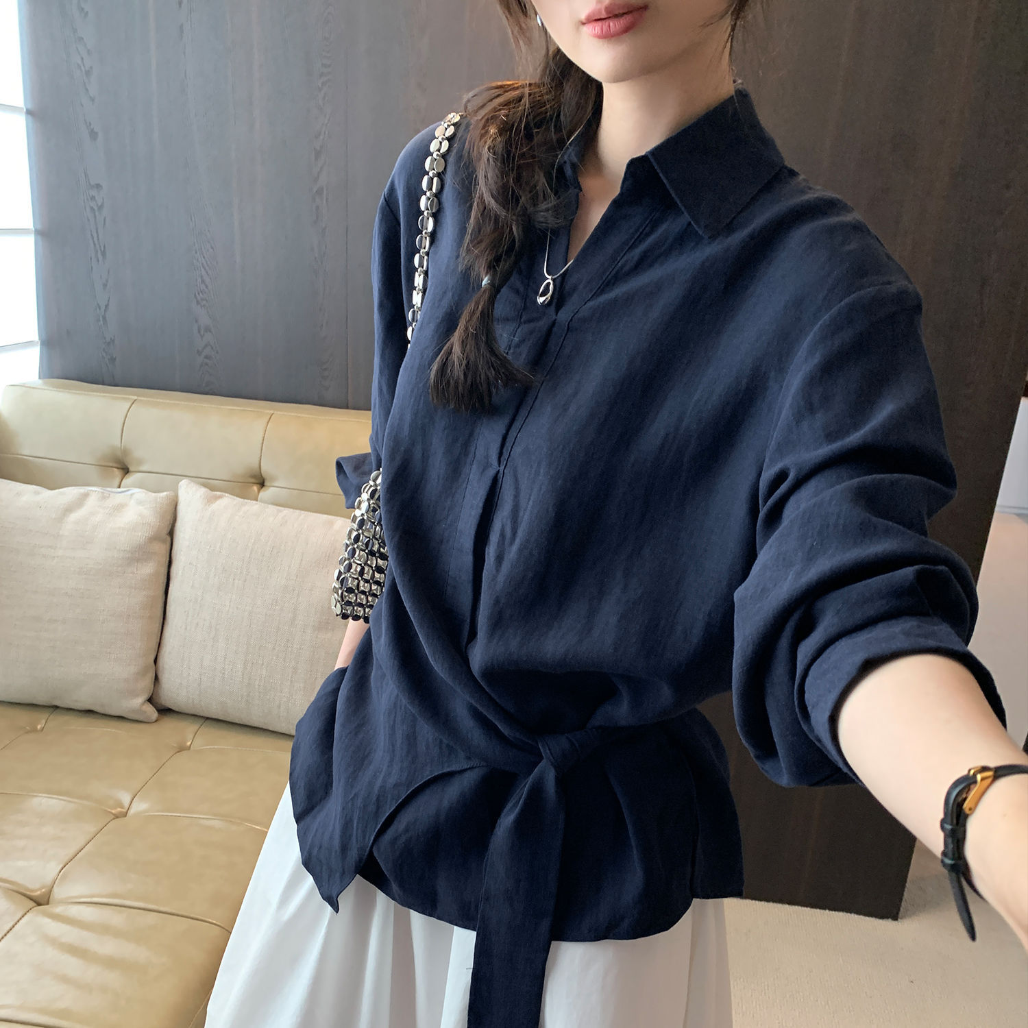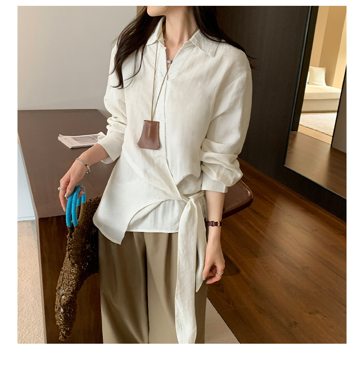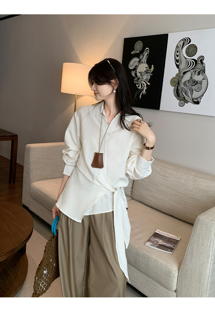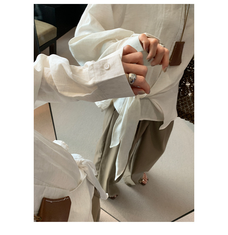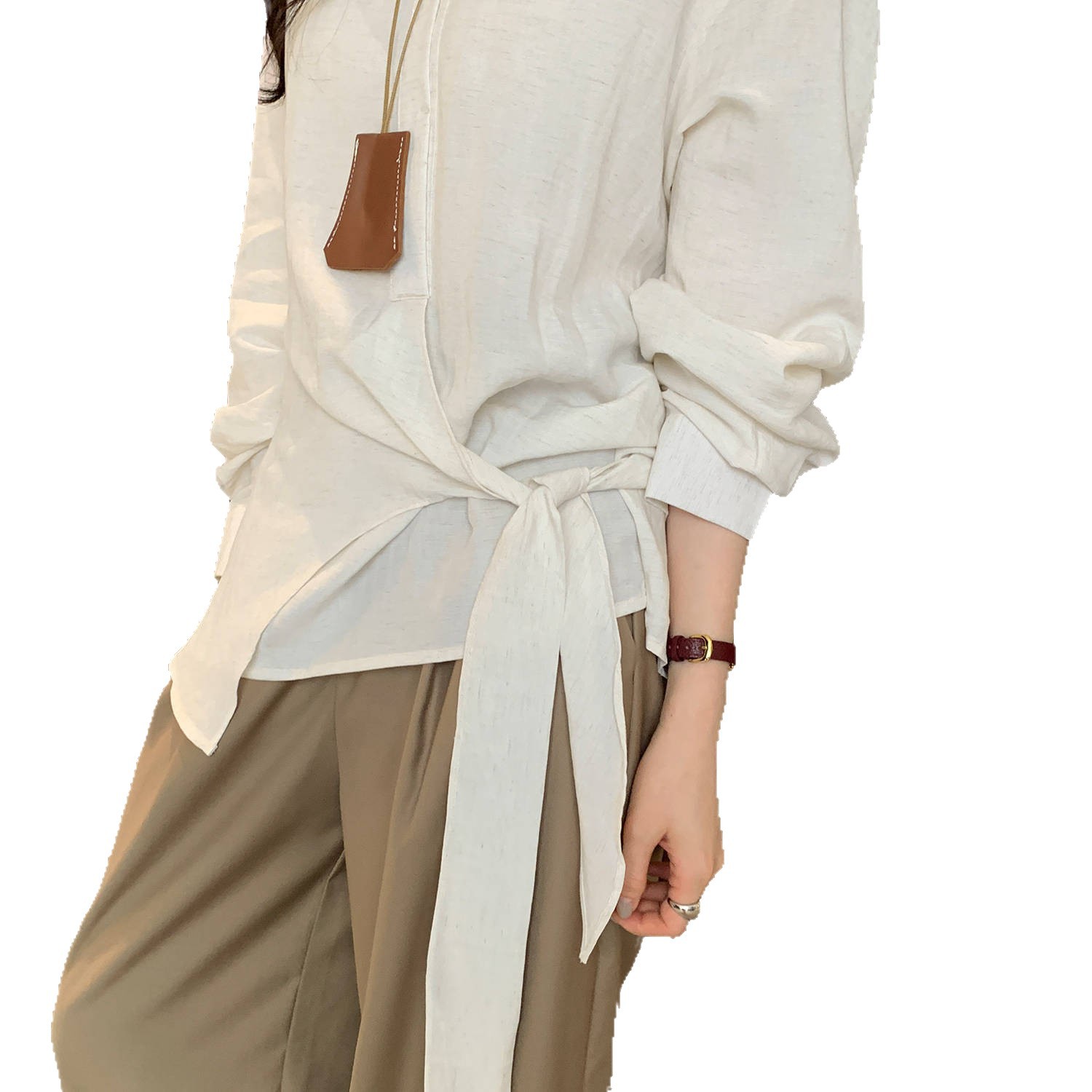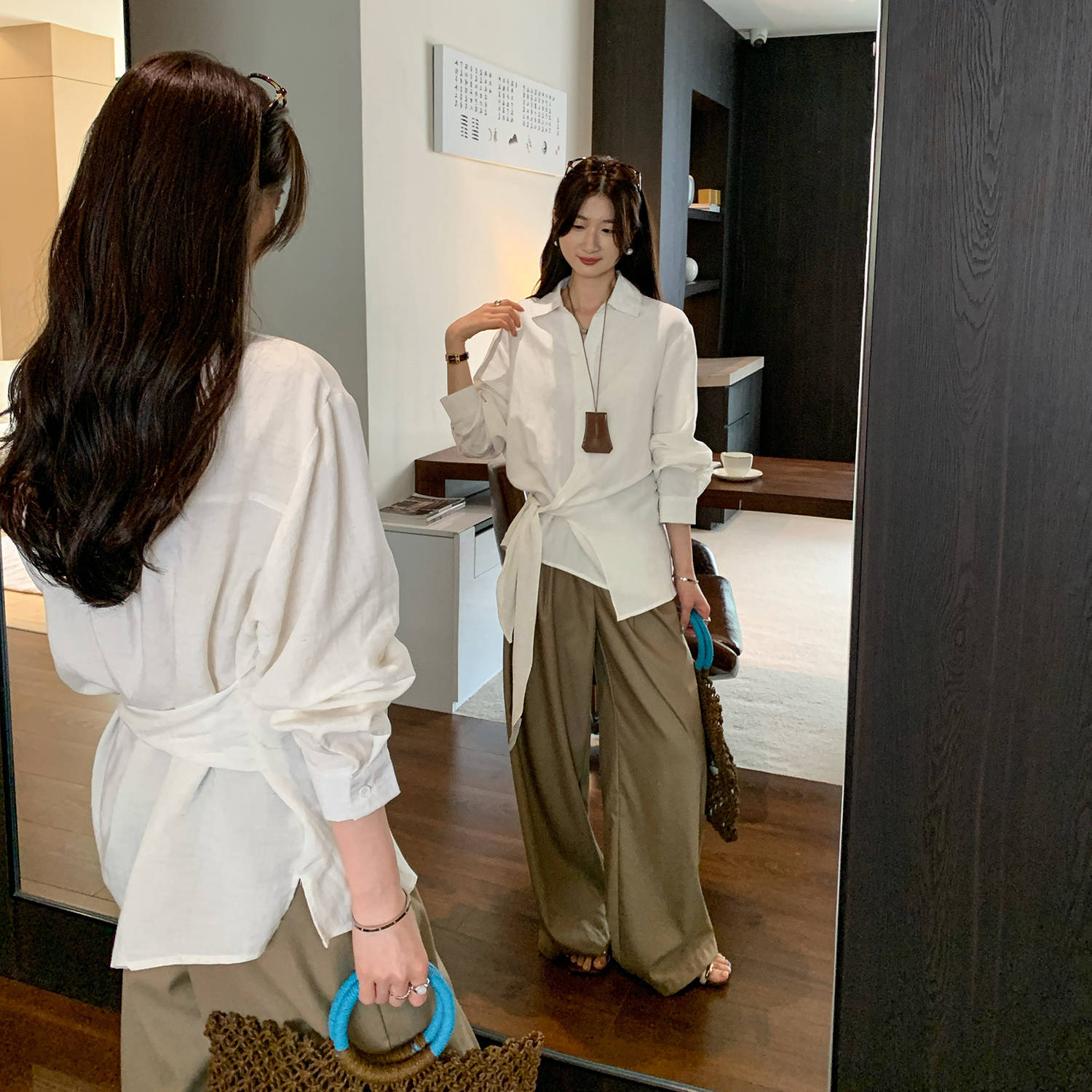 여성을 위한 프렌치 스타일의 게으르고 편안한 루즈한 긴팔 흰색 셔츠 2025 새로운 스타일의 매우 멋지고 독특하고 아름다운 핀치 웨이스트 셔츠