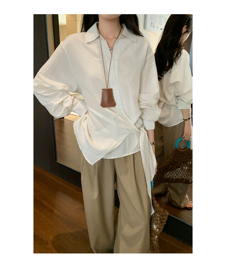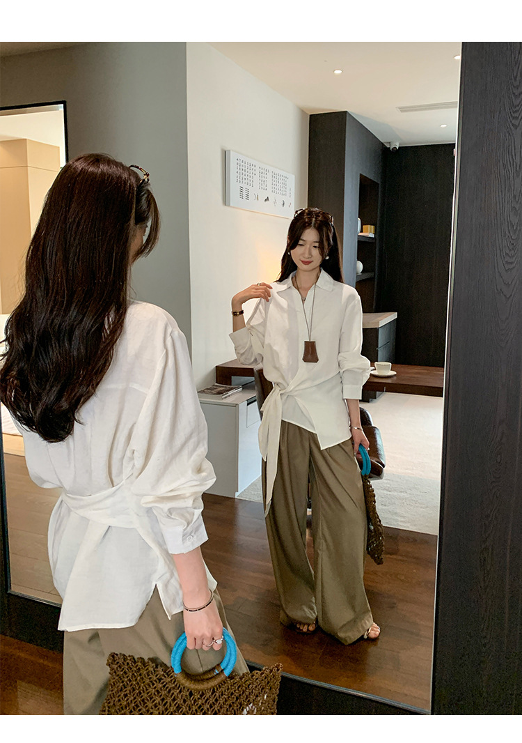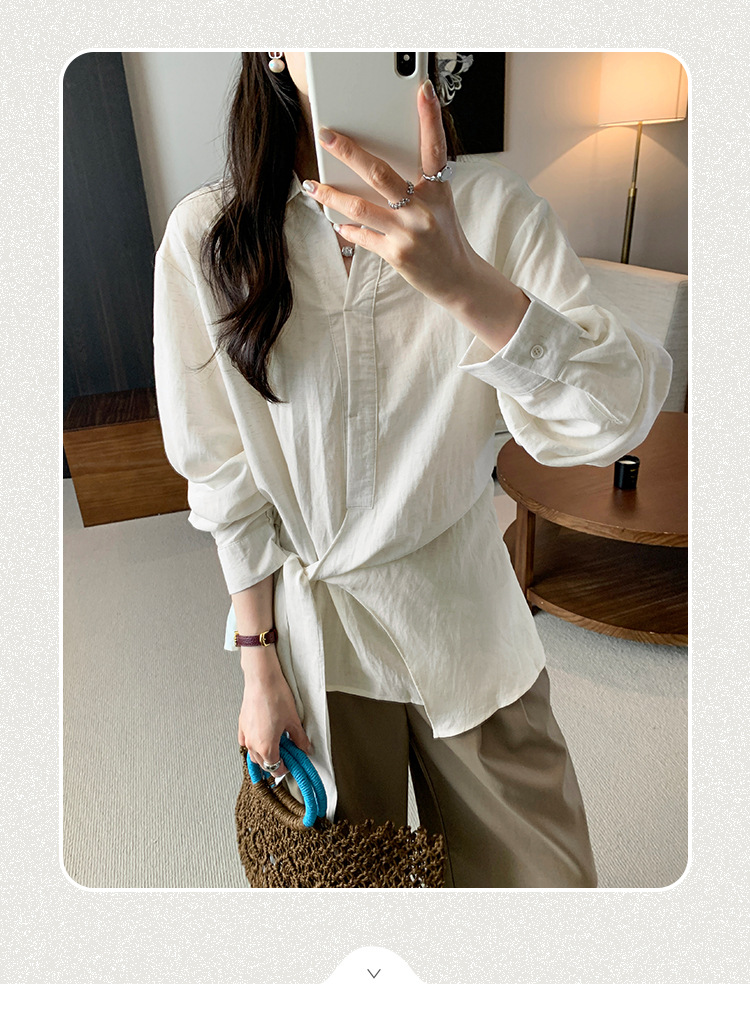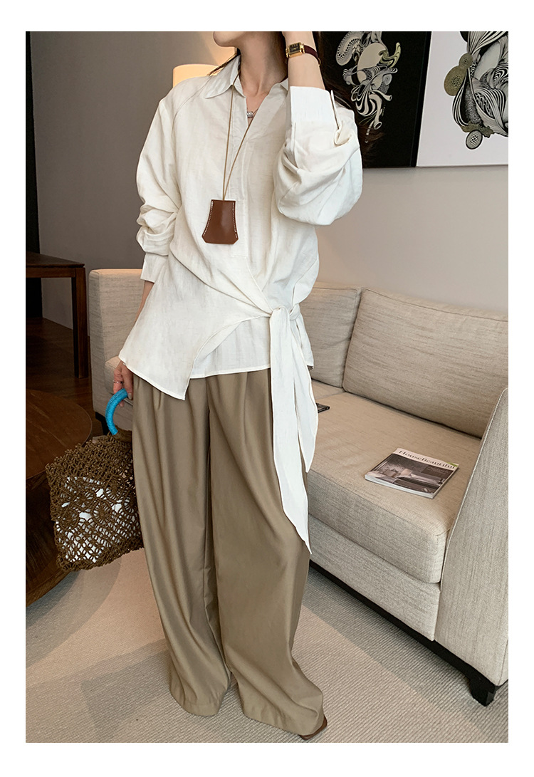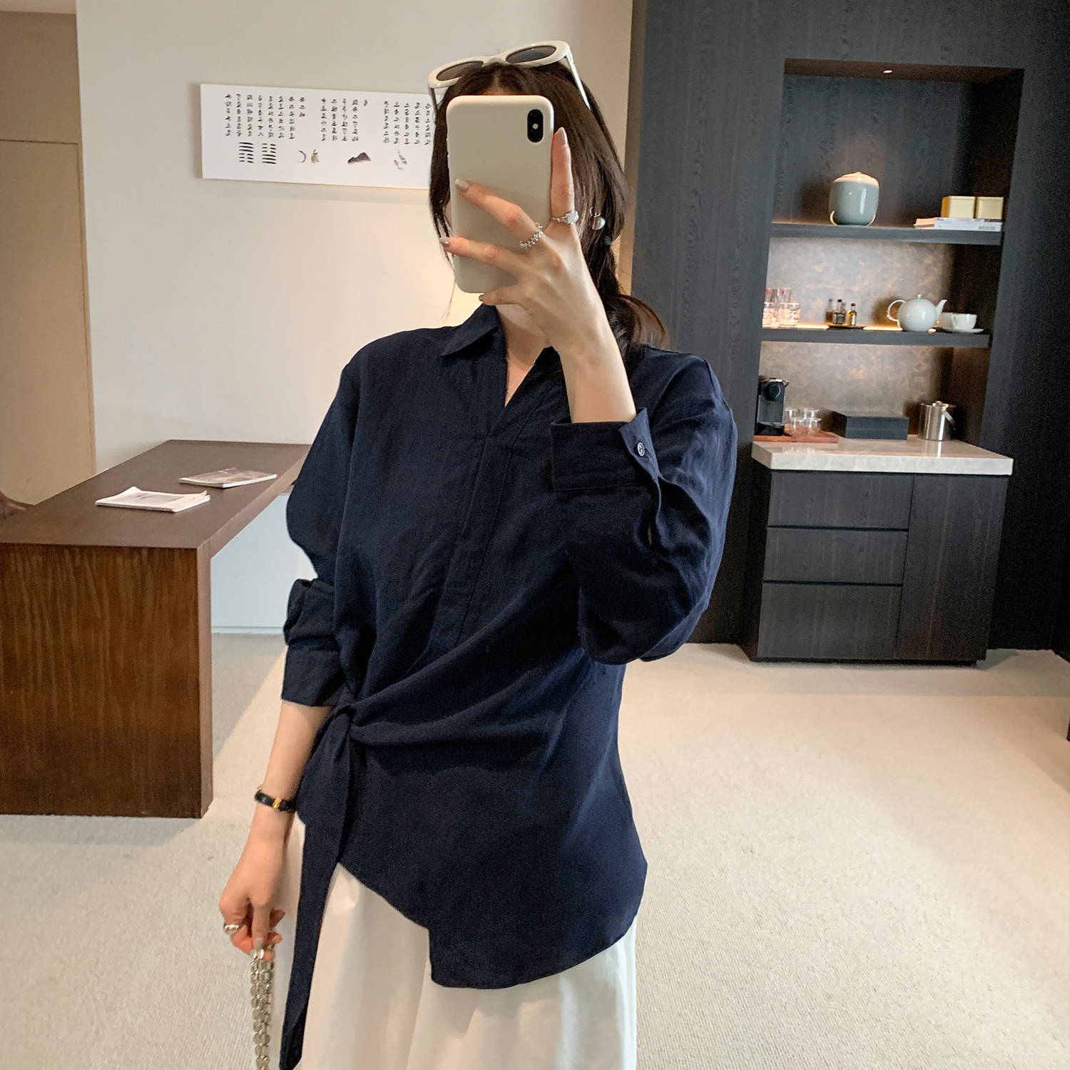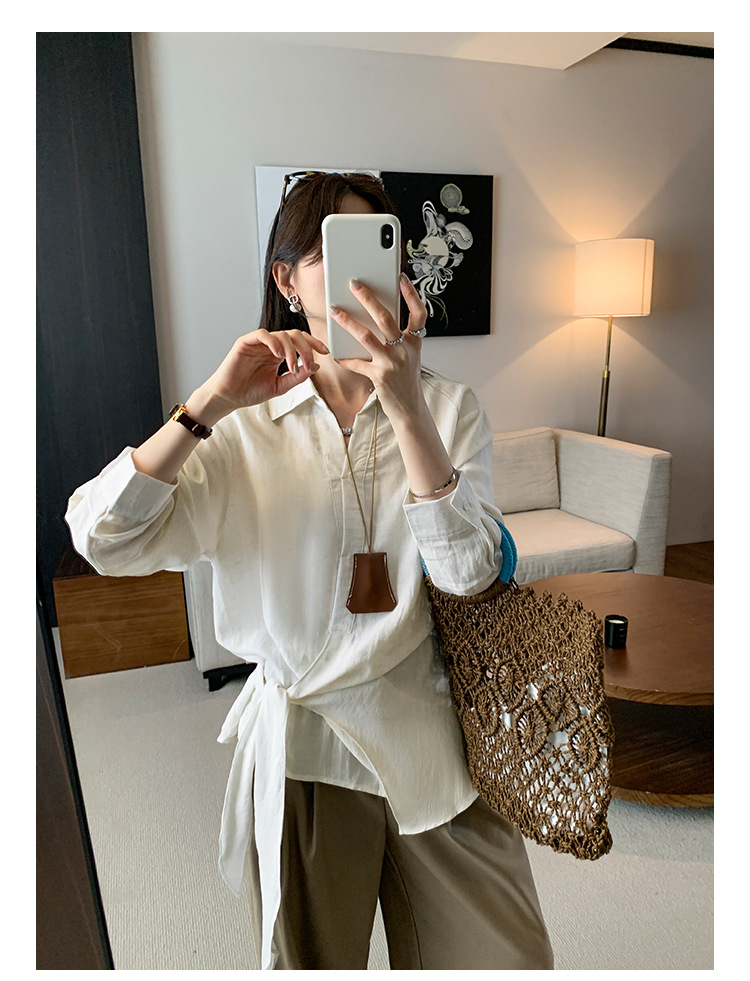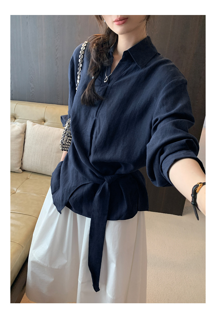 여성을 위한 프렌치 스타일의 게으르고 편안한 루즈한 긴팔 흰색 셔츠 2025 새로운 스타일의 매우 멋지고 독특하고 아름다운 핀치 웨이스트 셔츠