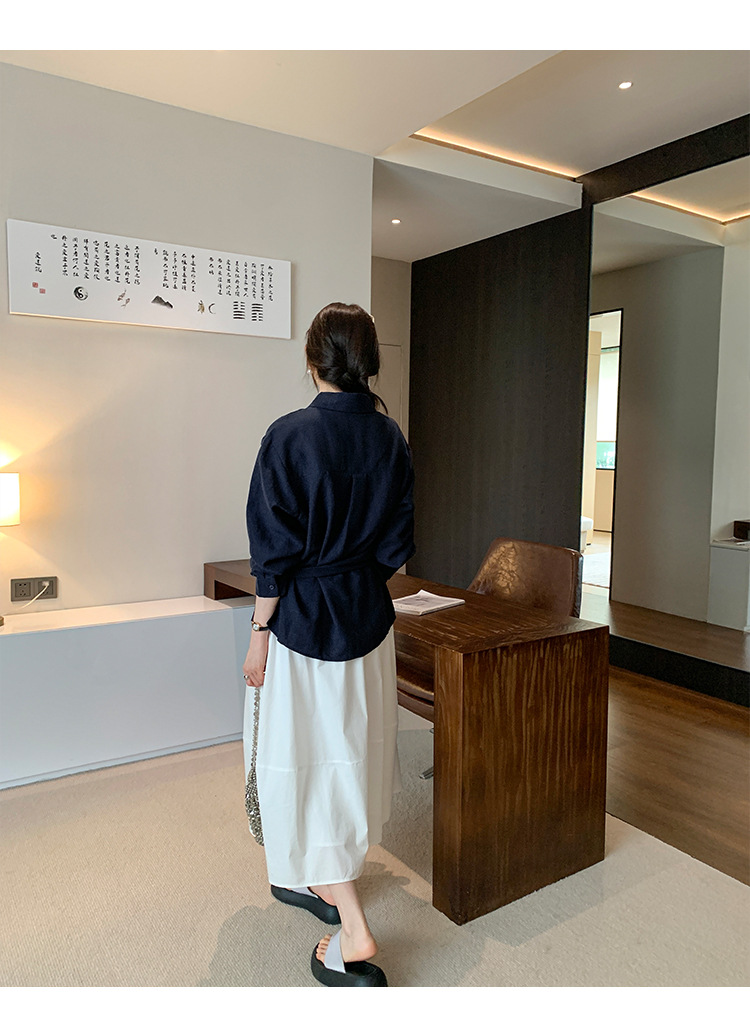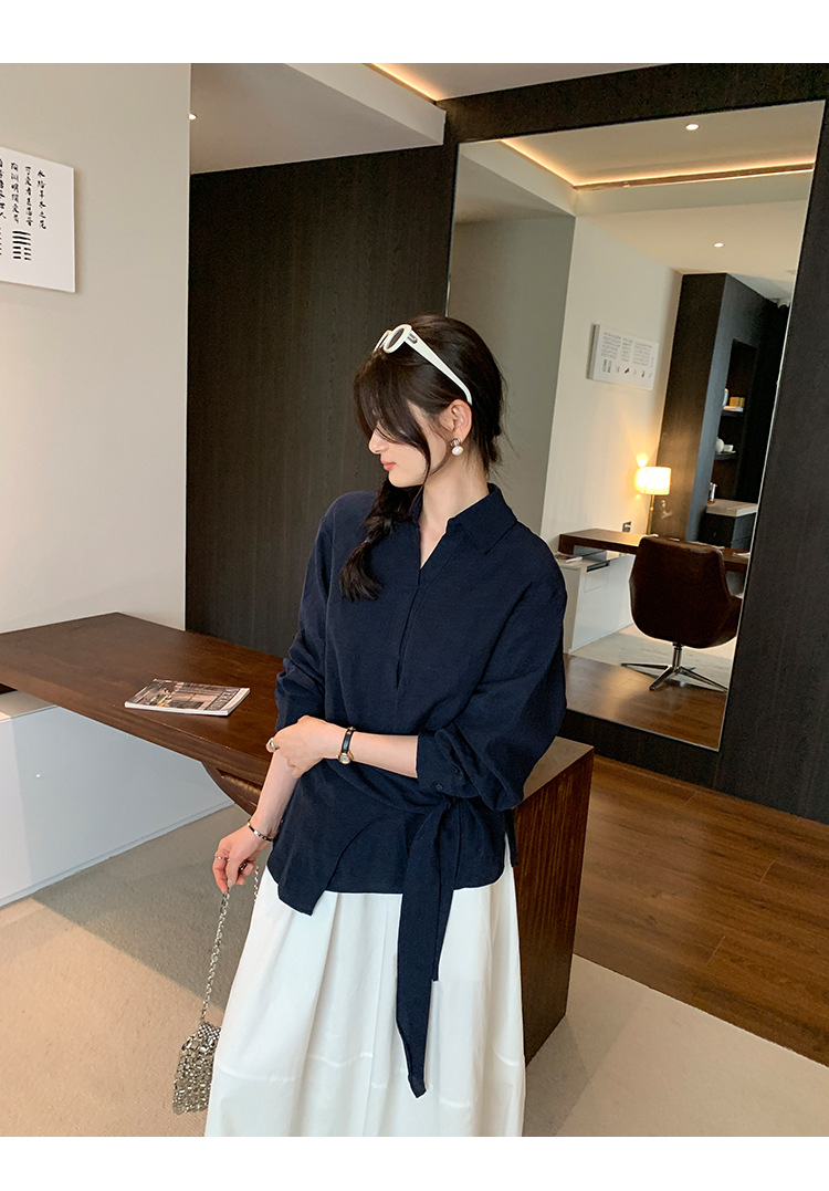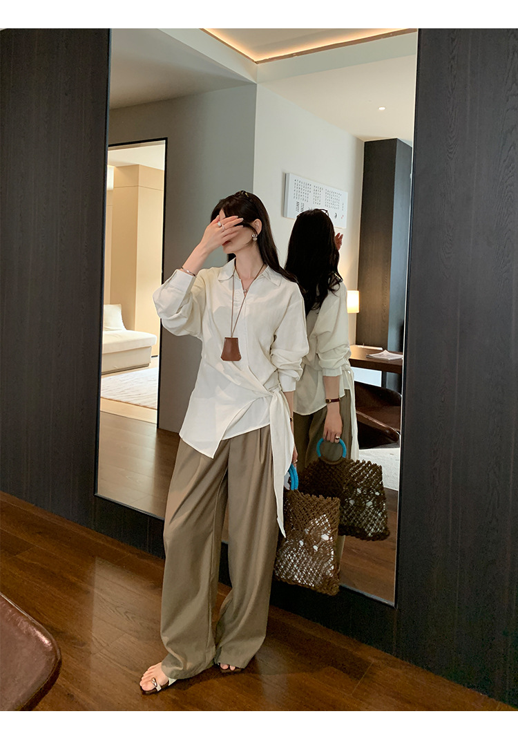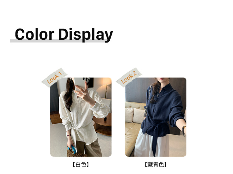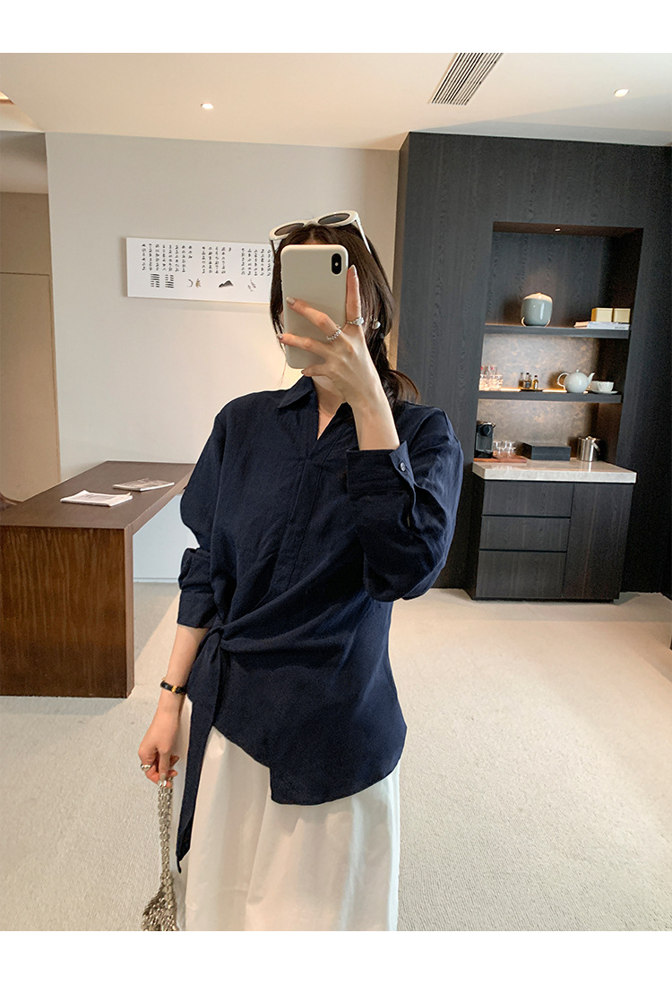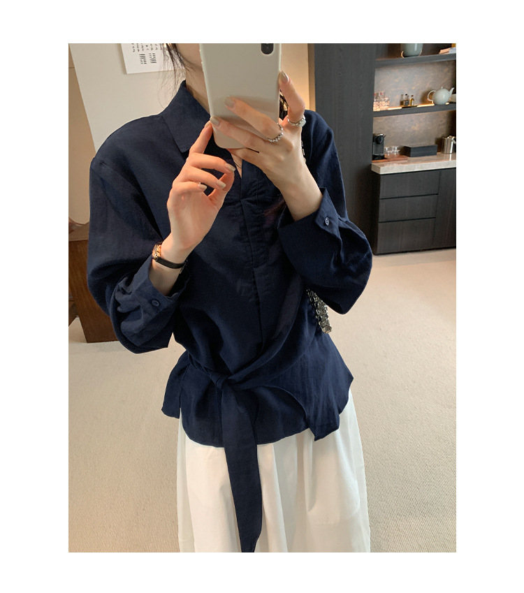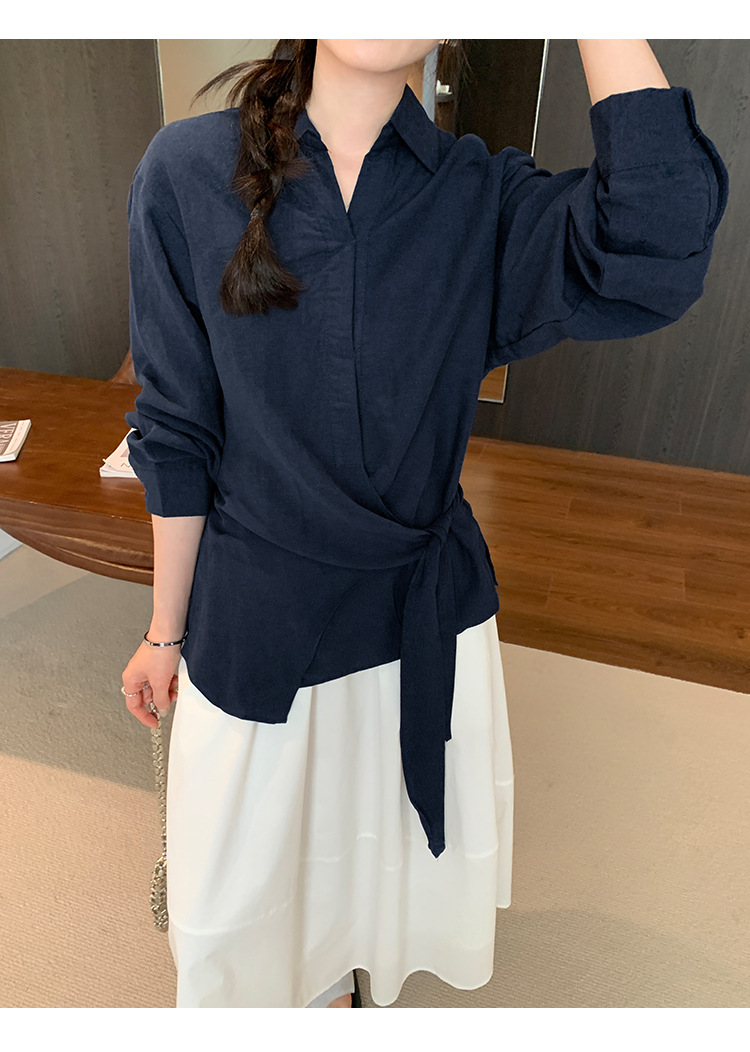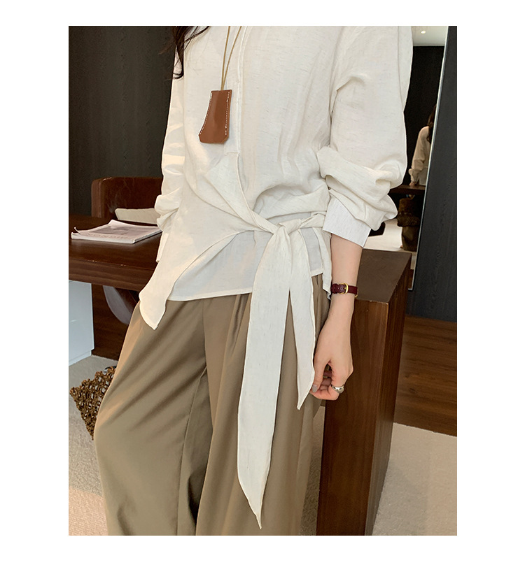 여성을 위한 프렌치 스타일의 게으르고 편안한 루즈한 긴팔 흰색 셔츠 2025 새로운 스타일의 매우 멋지고 독특하고 아름다운 핀치 웨이스트 셔츠