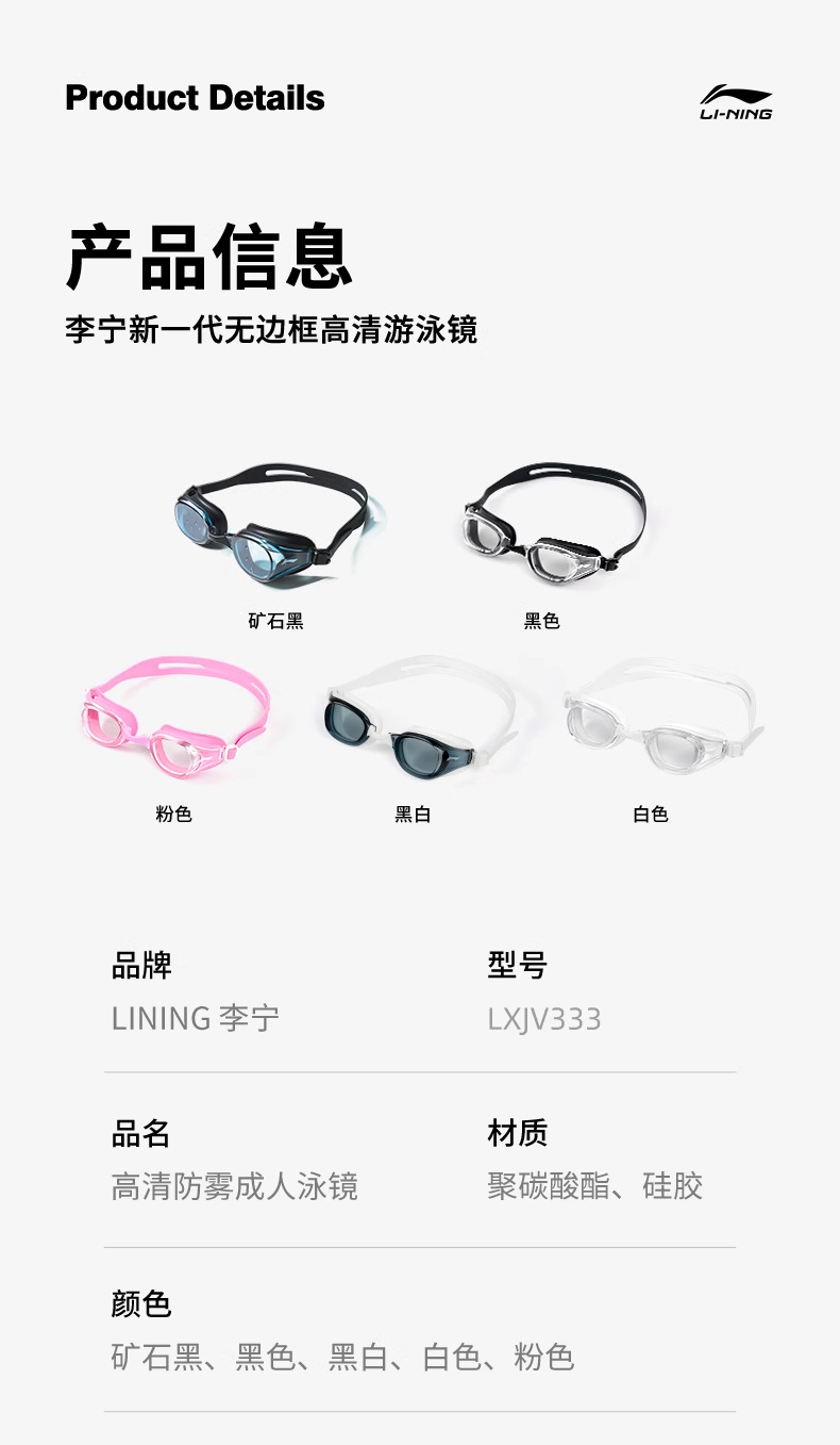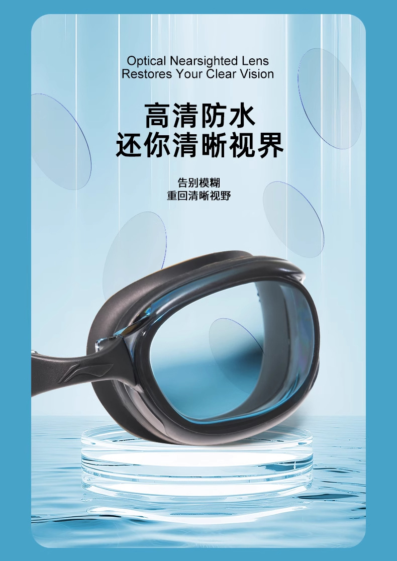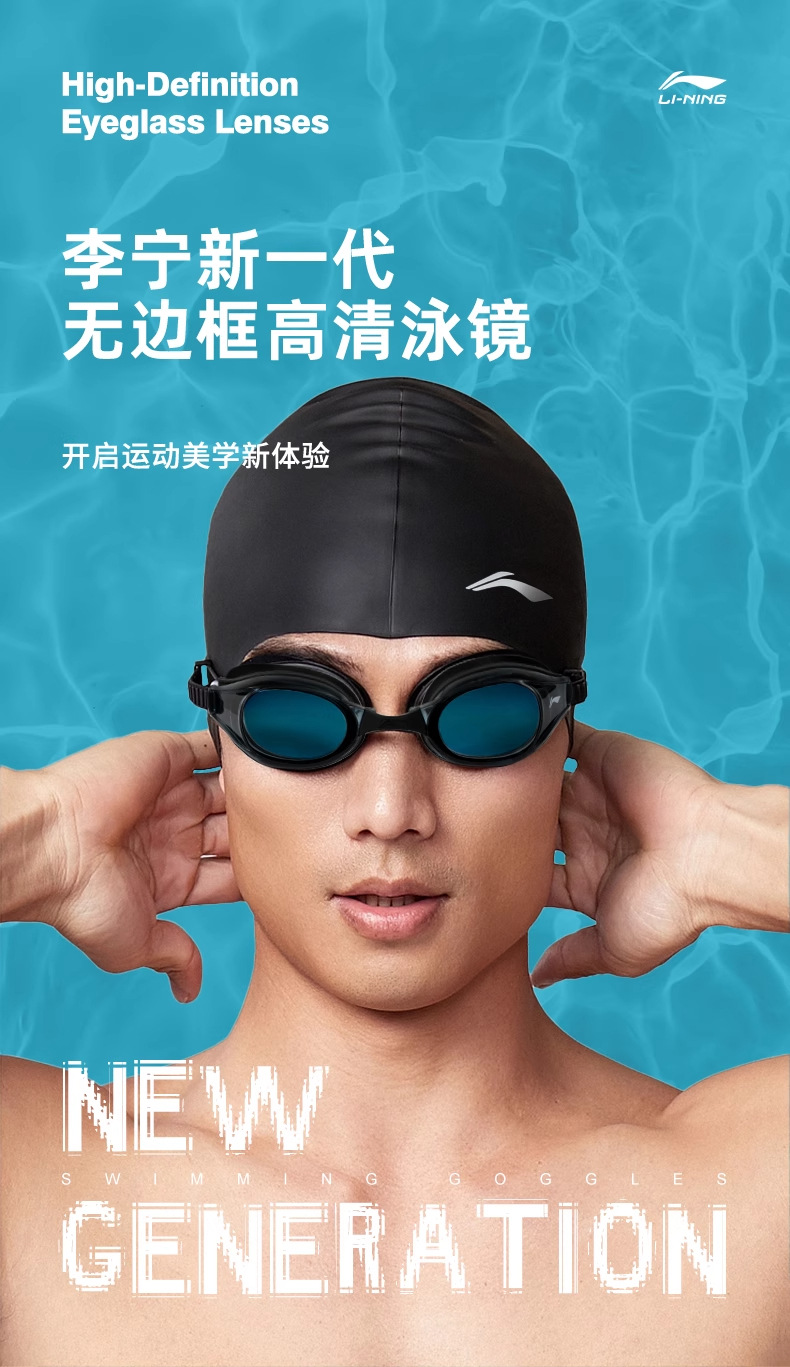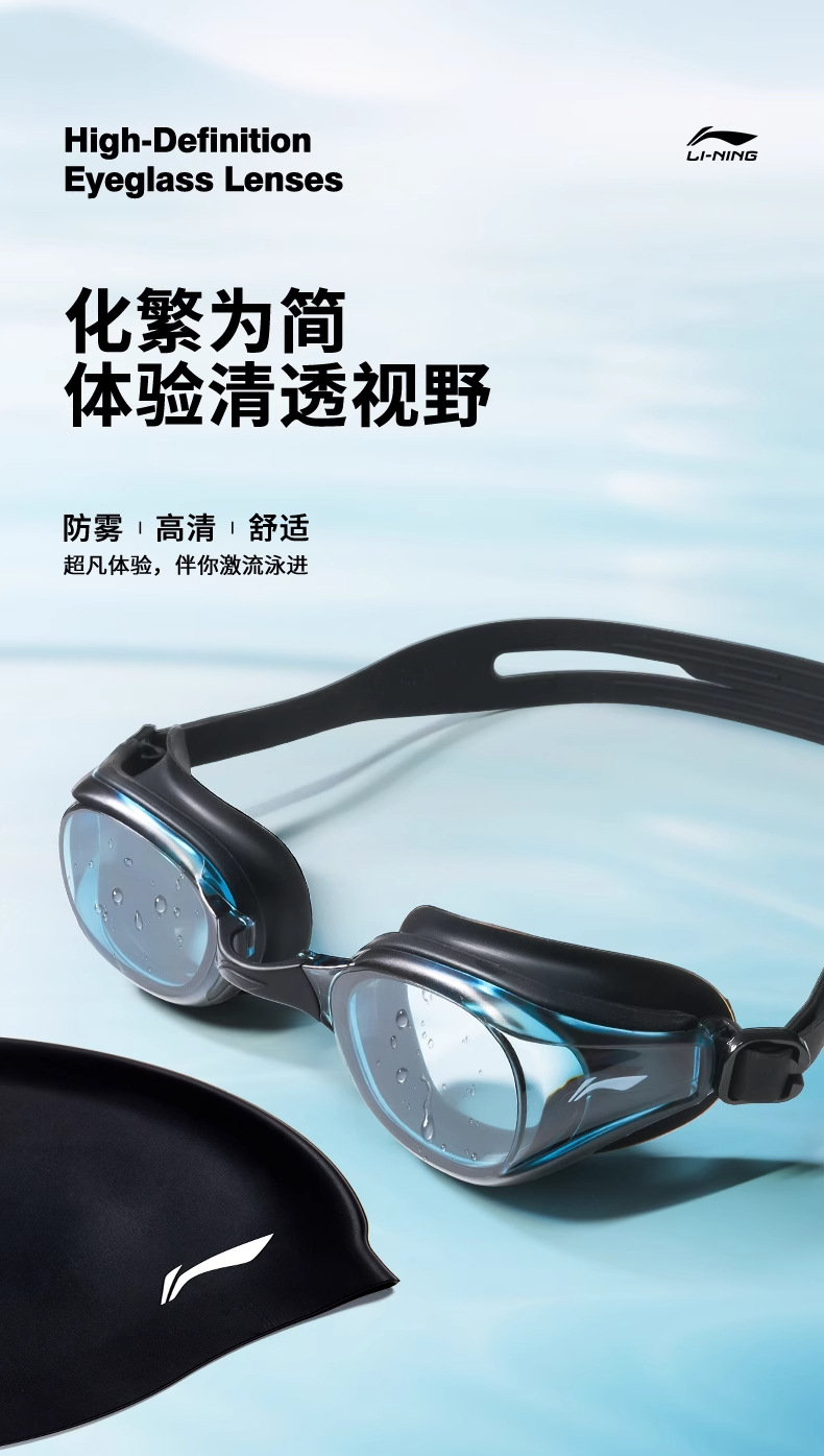 Li Ning 정품 수영 고글 HD 안개 방지 및 방수 남성 및 여성 전문 수영 고글 다이빙 장비 경쟁 패션