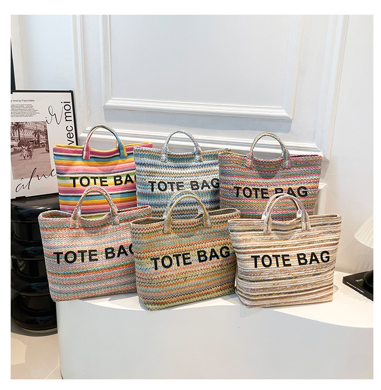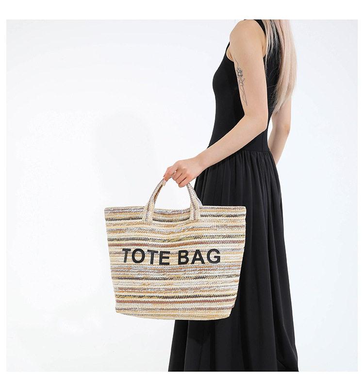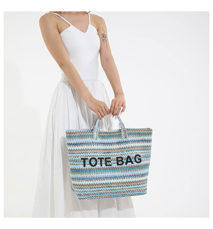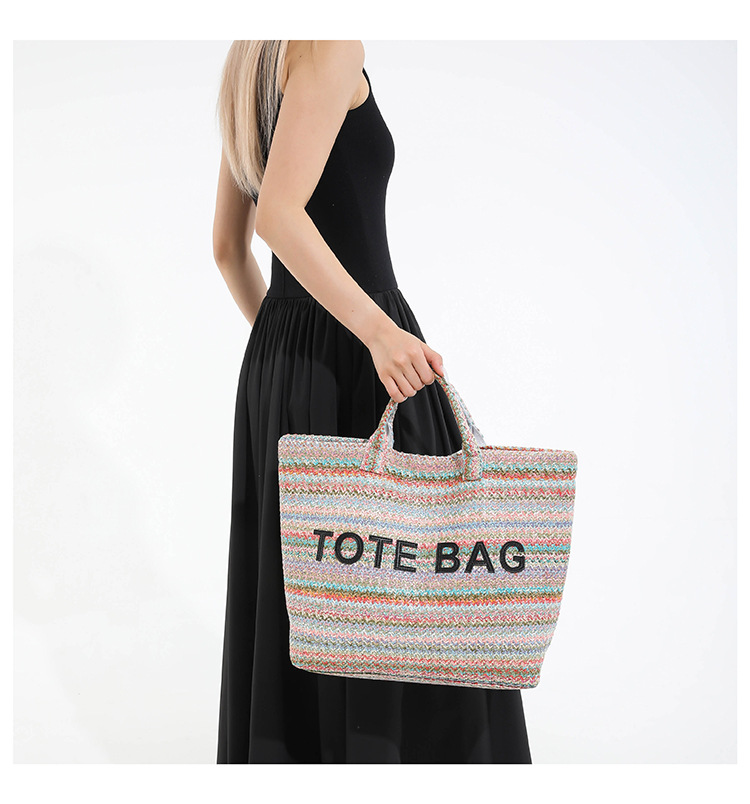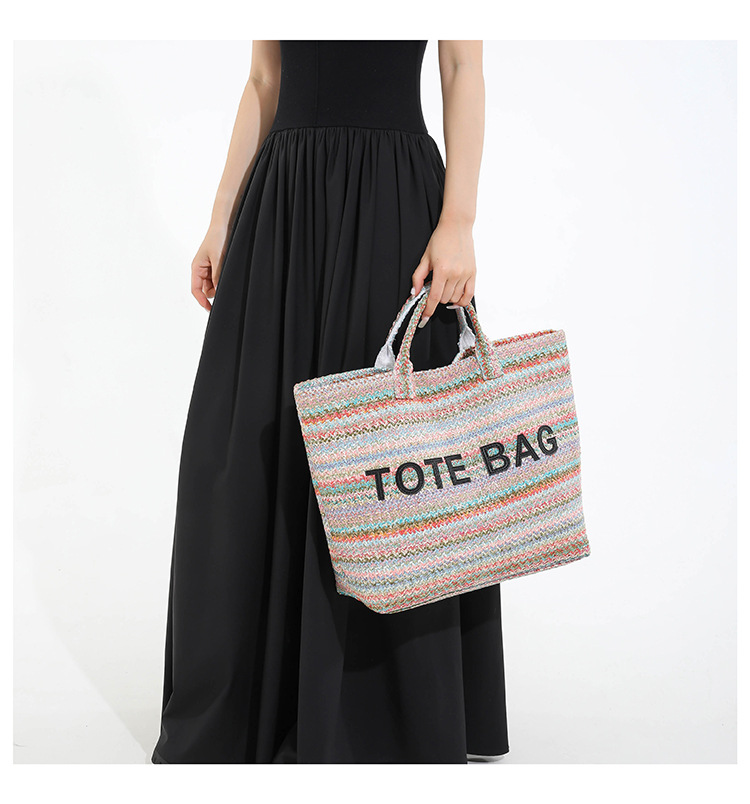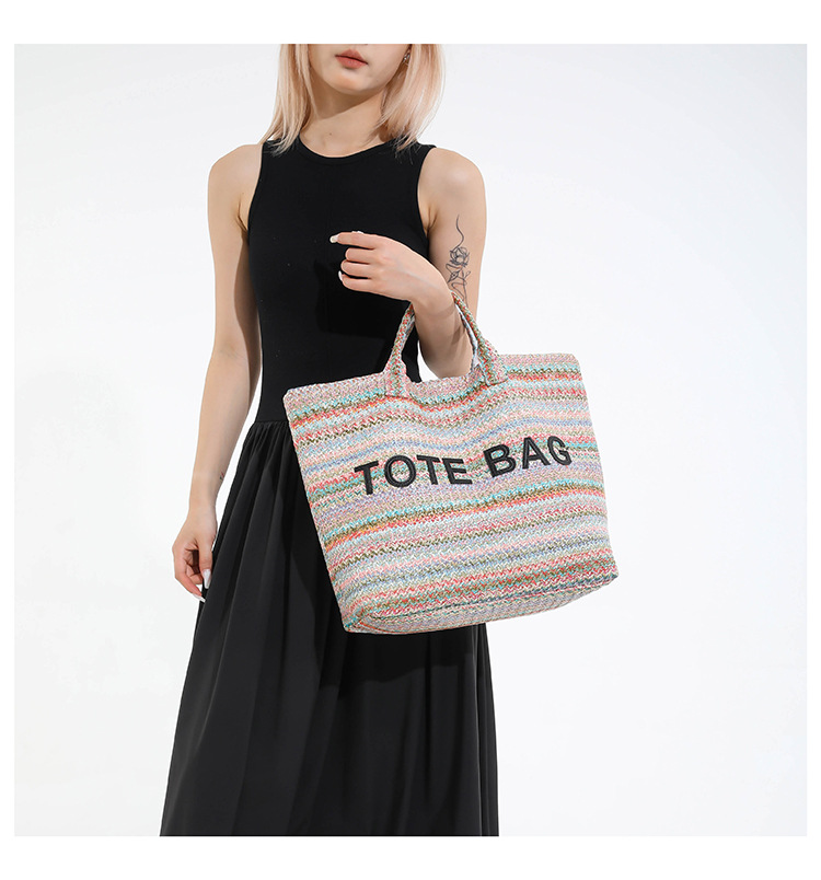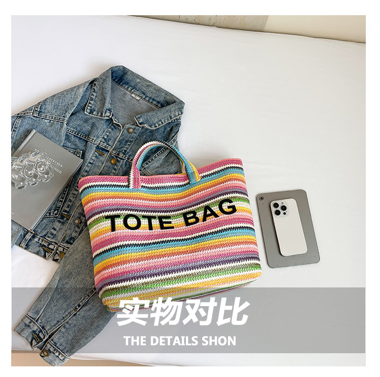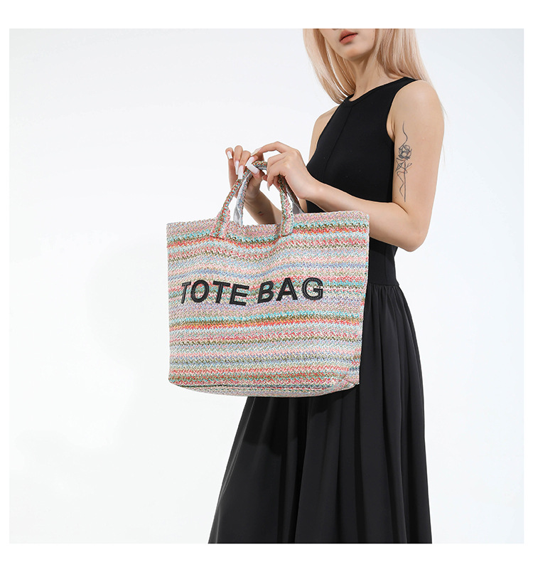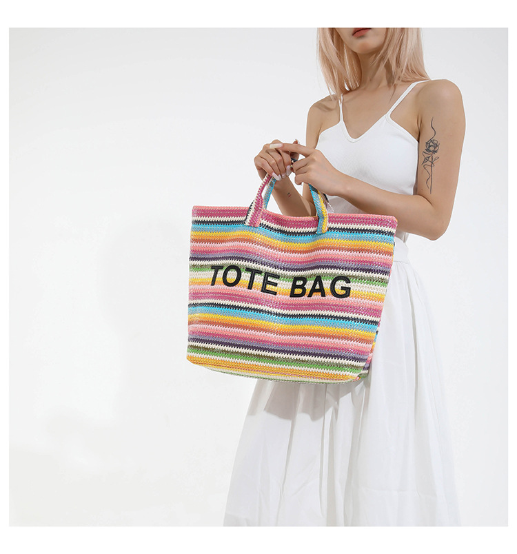 새로운 대용량 밀짚 휴대용 비치 토트 여성용 가방 대비 색상 숄더 백 대용량 줄무늬 짠 가방 다용도