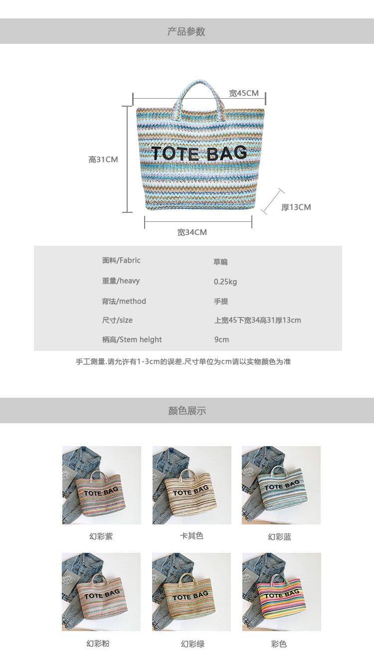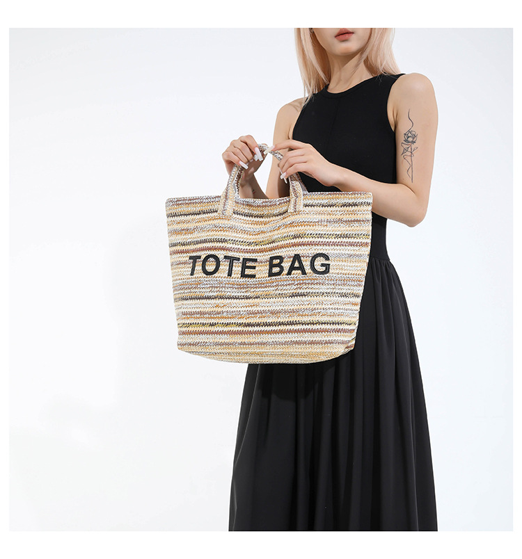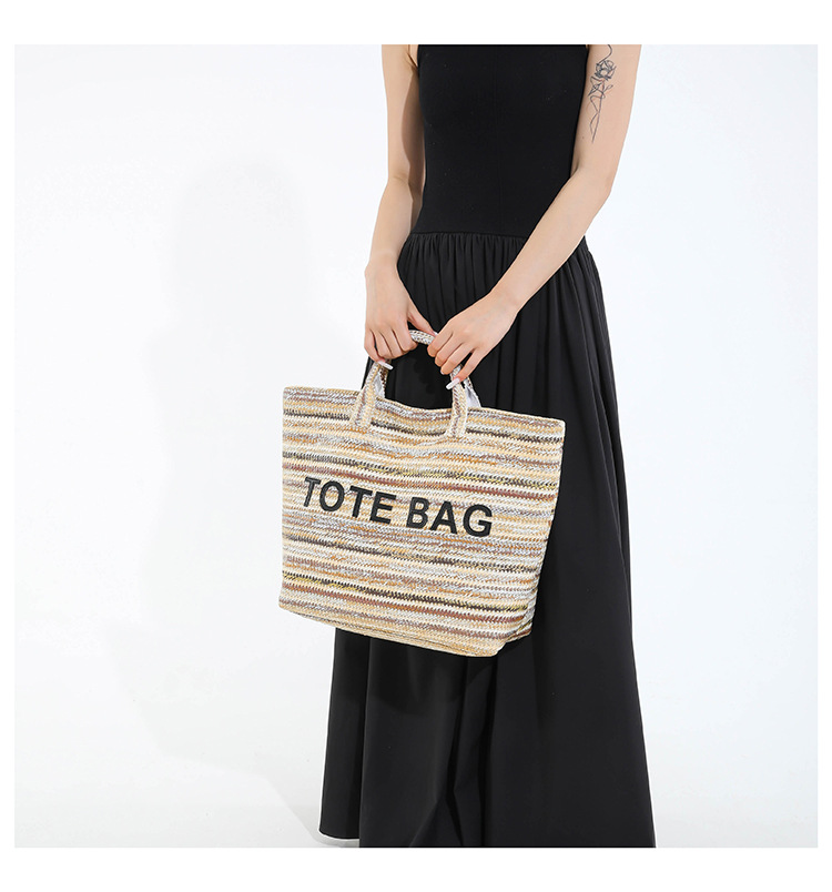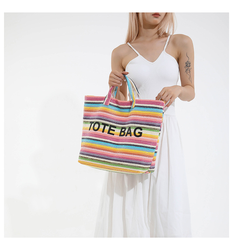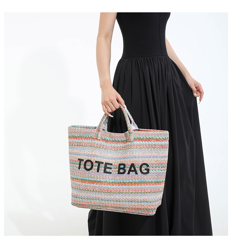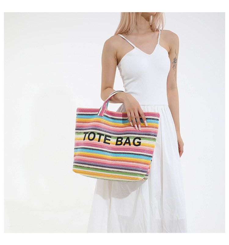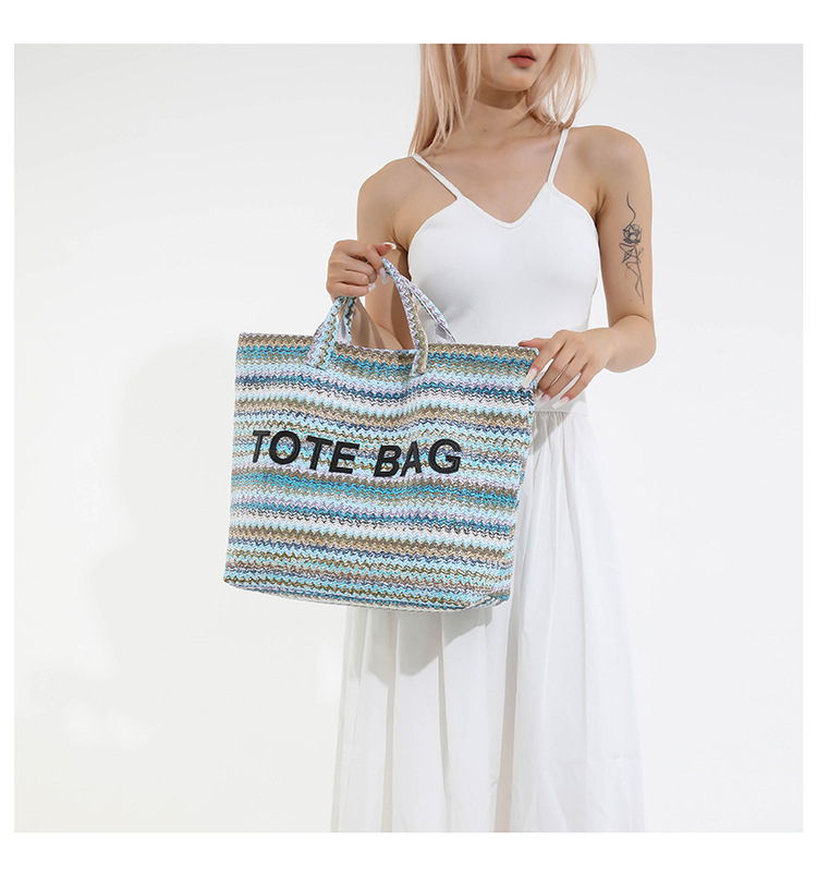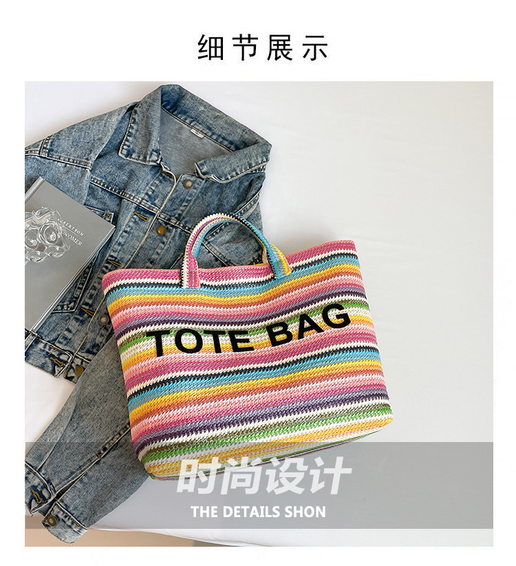 새로운 대용량 밀짚 휴대용 비치 토트 여성용 가방 대비 색상 숄더 백 대용량 줄무늬 짠 가방 다용도