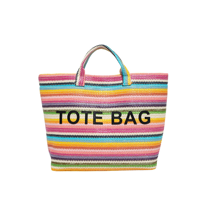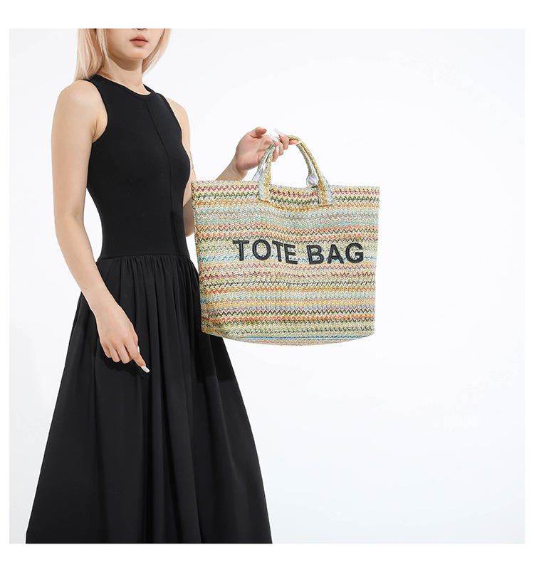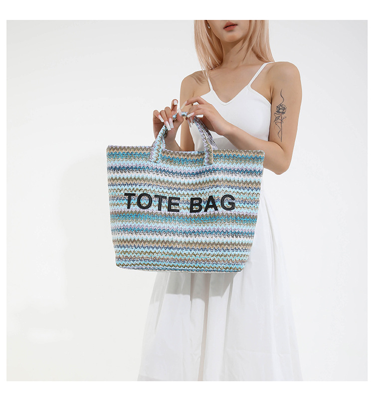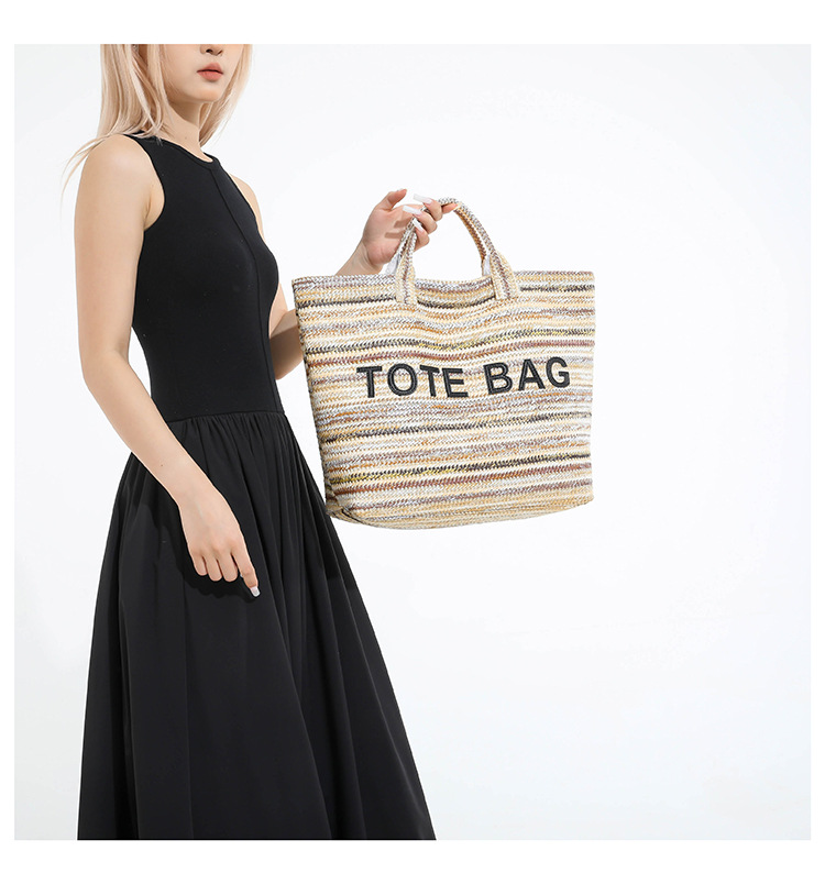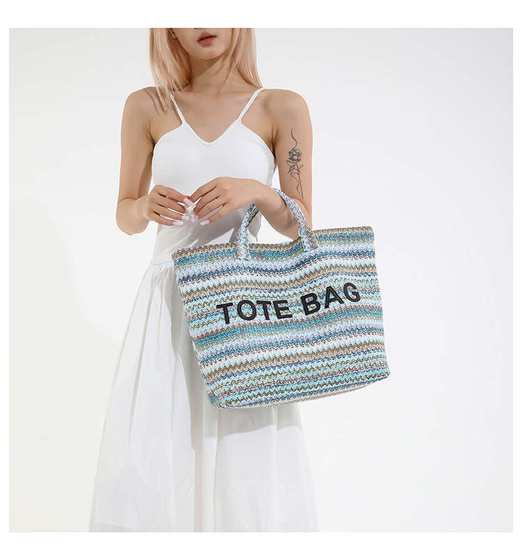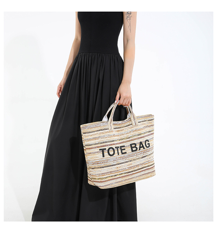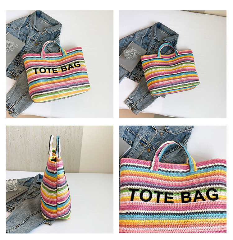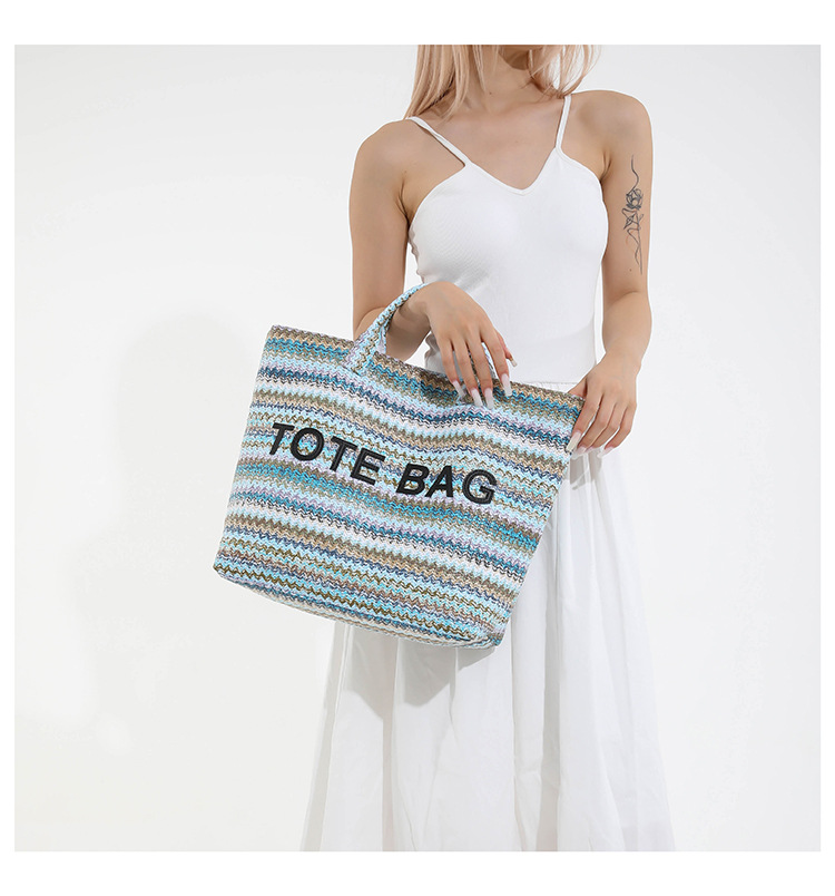 새로운 대용량 밀짚 휴대용 비치 토트 여성용 가방 대비 색상 숄더 백 대용량 줄무늬 짠 가방 다용도