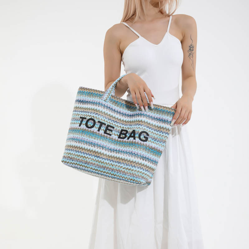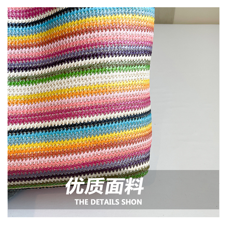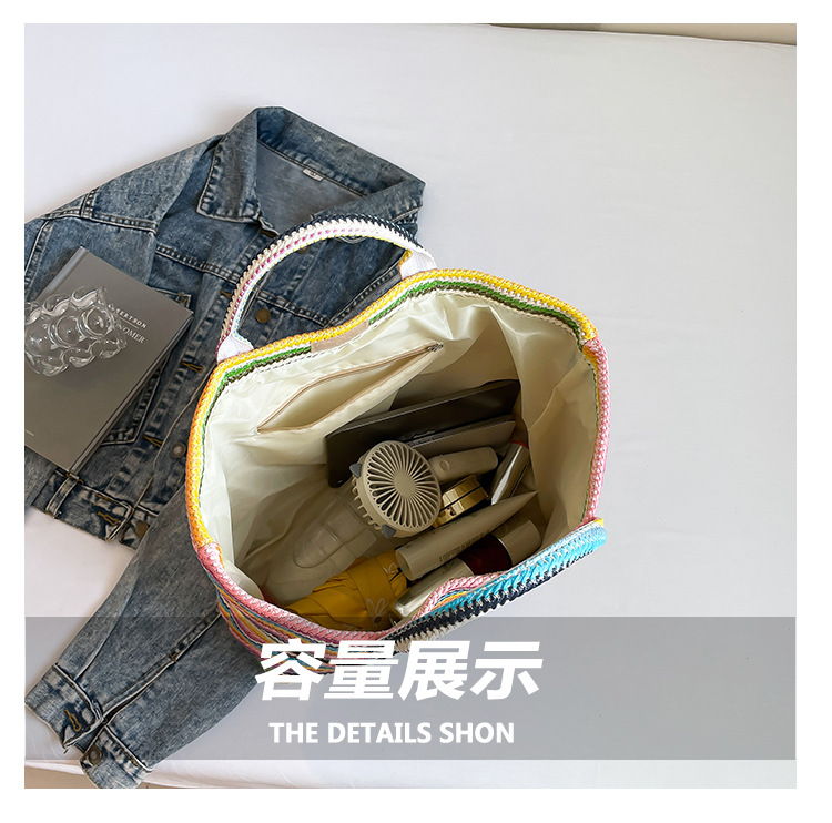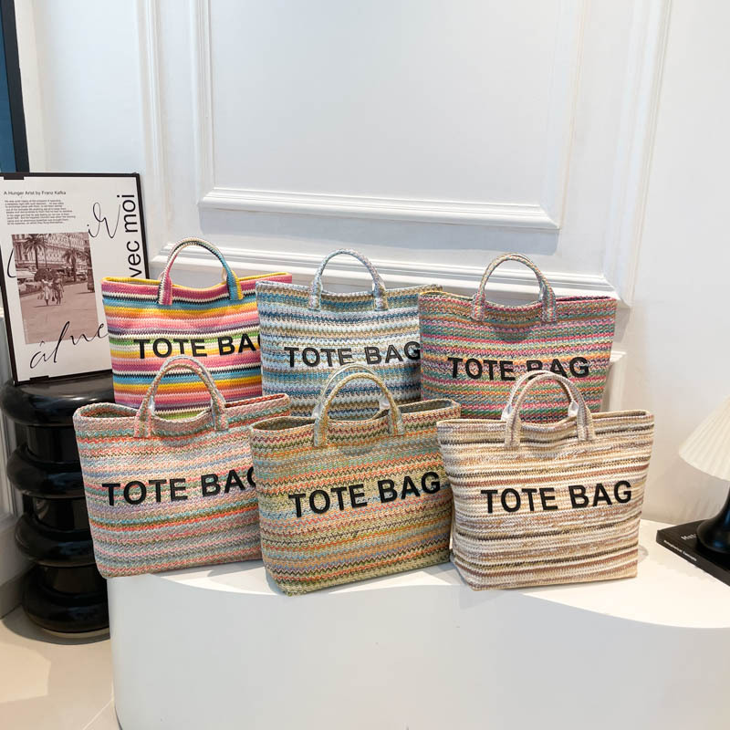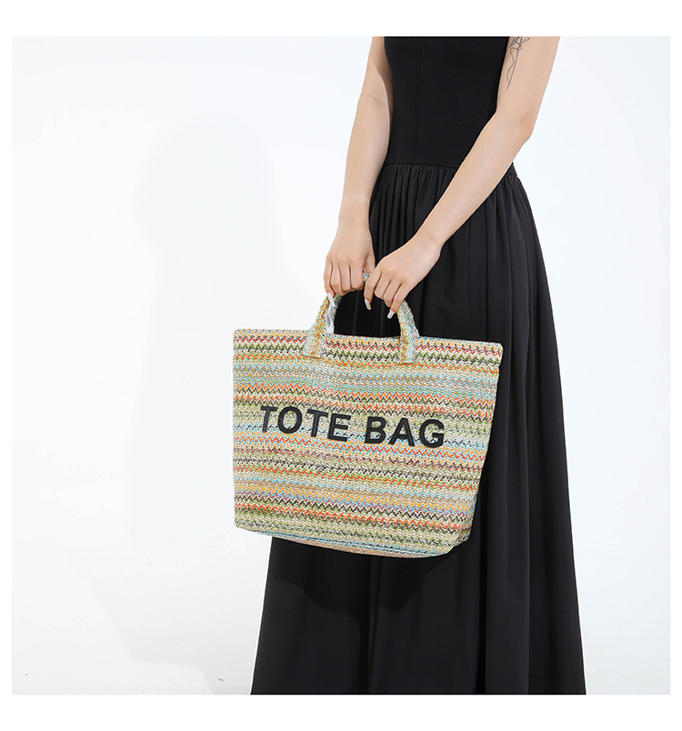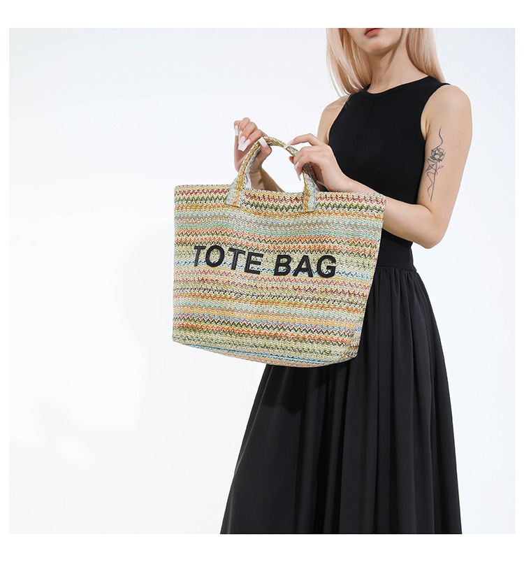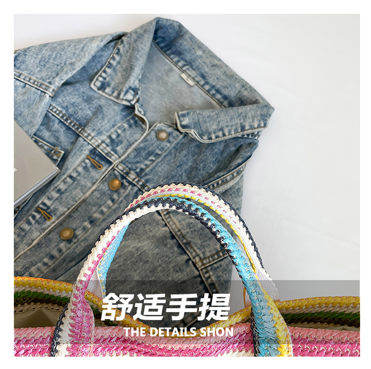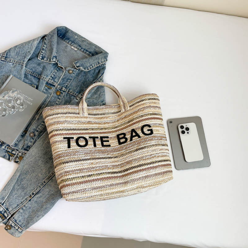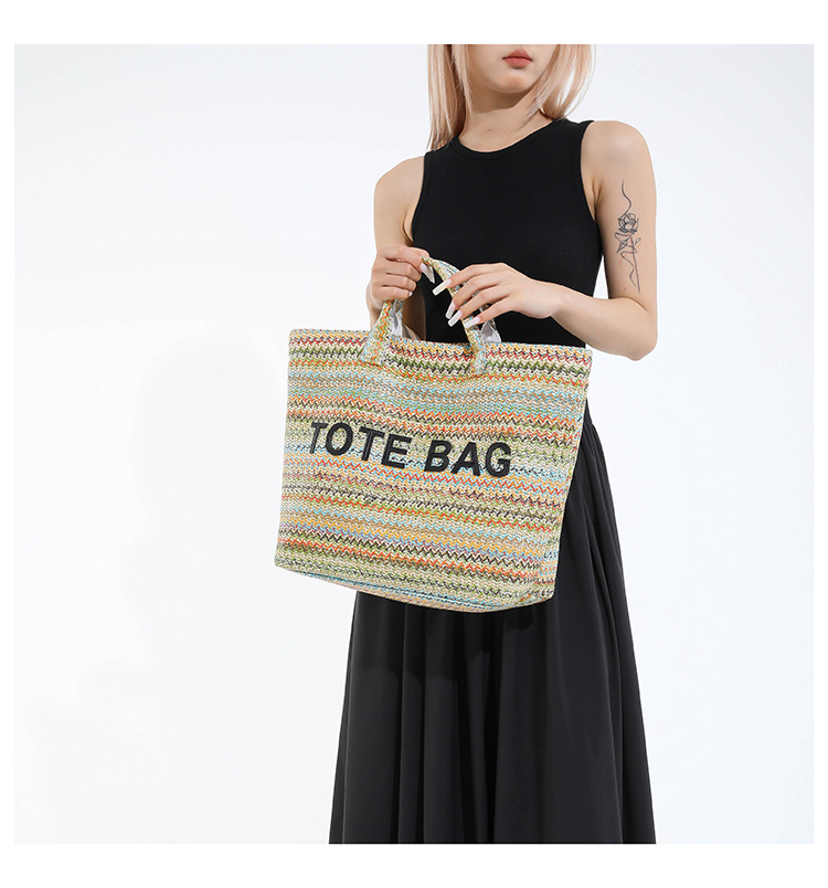 새로운 대용량 밀짚 휴대용 비치 토트 여성용 가방 대비 색상 숄더 백 대용량 줄무늬 짠 가방 다용도
