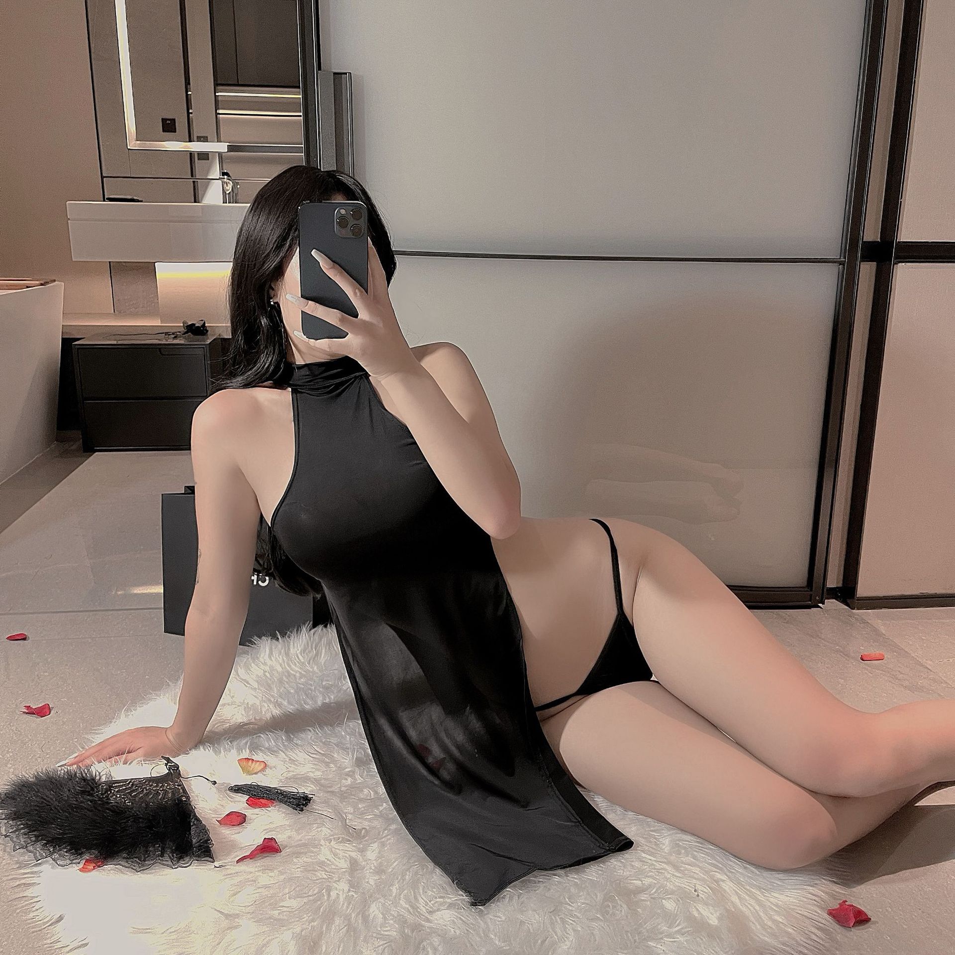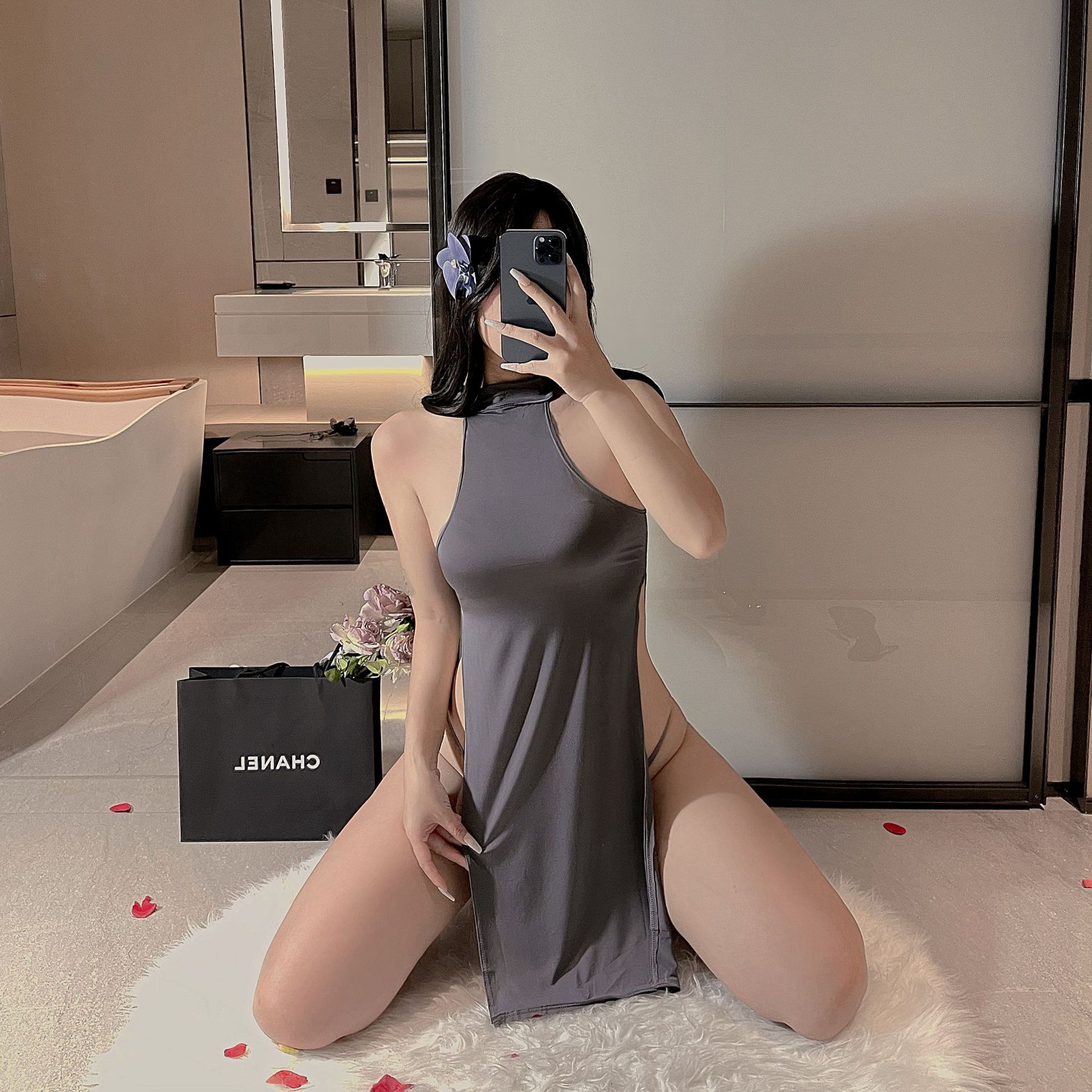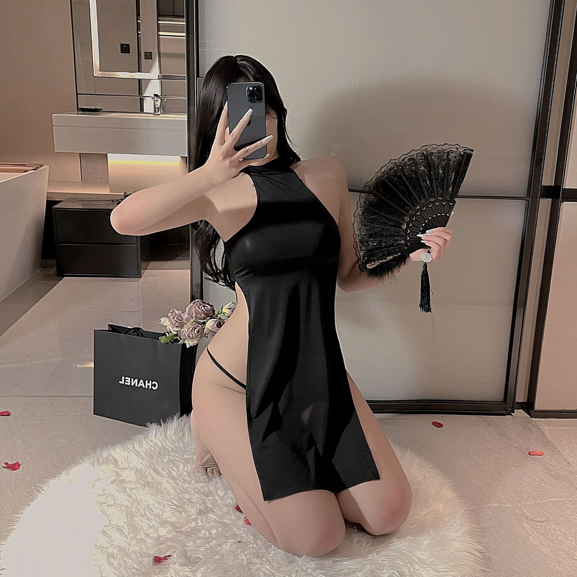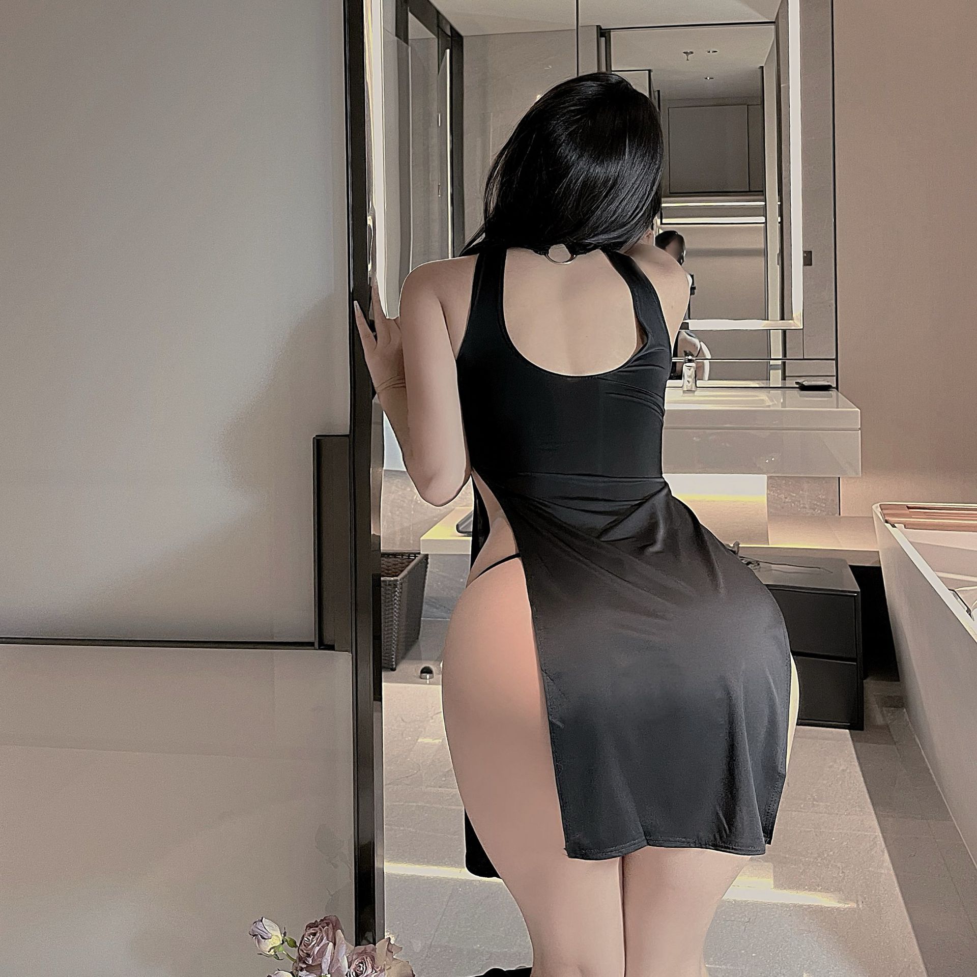 섹시한 속옷, 섹시한 슬릿 롱 스커트, 치파오, 순수한 욕망, 유혹적인 잠옷, 여성을 위한 뜨겁고 열정적인 유혹적인 유니폼 유혹