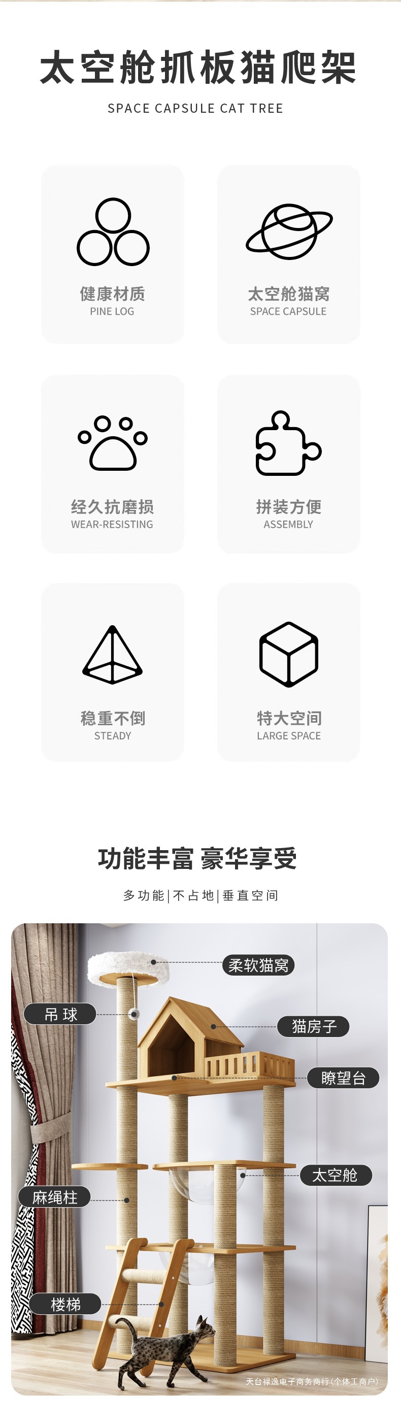 고양이 클라이밍 프레임, 고양이 둥지, 고양이 트리 일체형 대형 고양이 프레임, 우주 캡슐 고양이 스크래치 보드, 소형 면적, 스카이 컬럼 고양이 클라이밍 프레임
