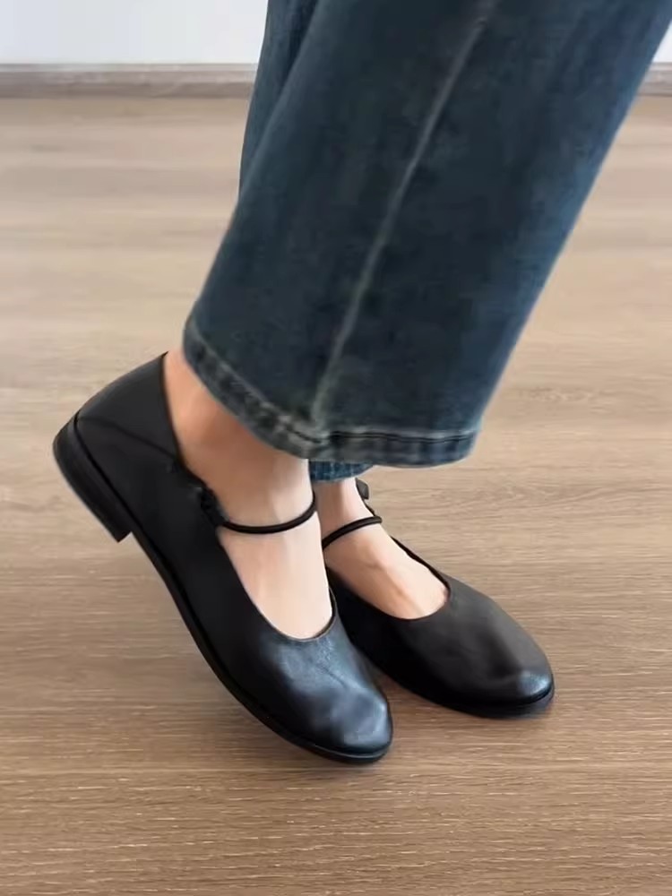 양가죽 버전 ~ 여성용 정품 가죽 슈퍼 소프트 펌프스 2025 새로운 다용도 통근 플랫 메리 제인 슈즈
