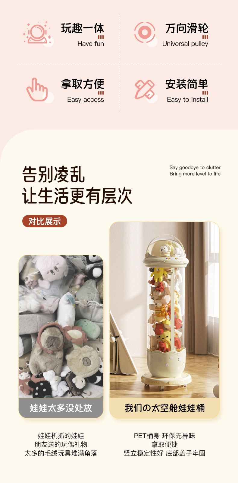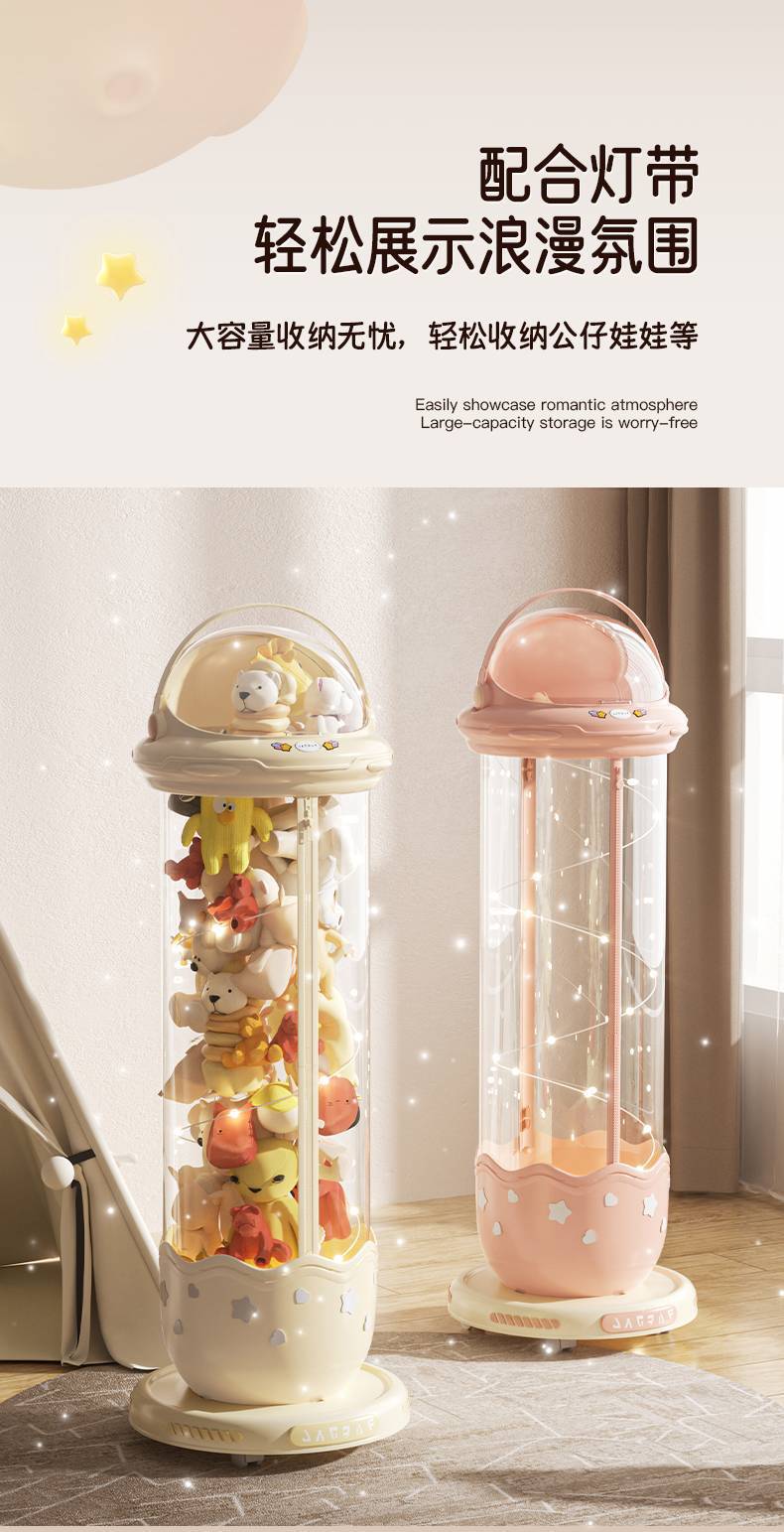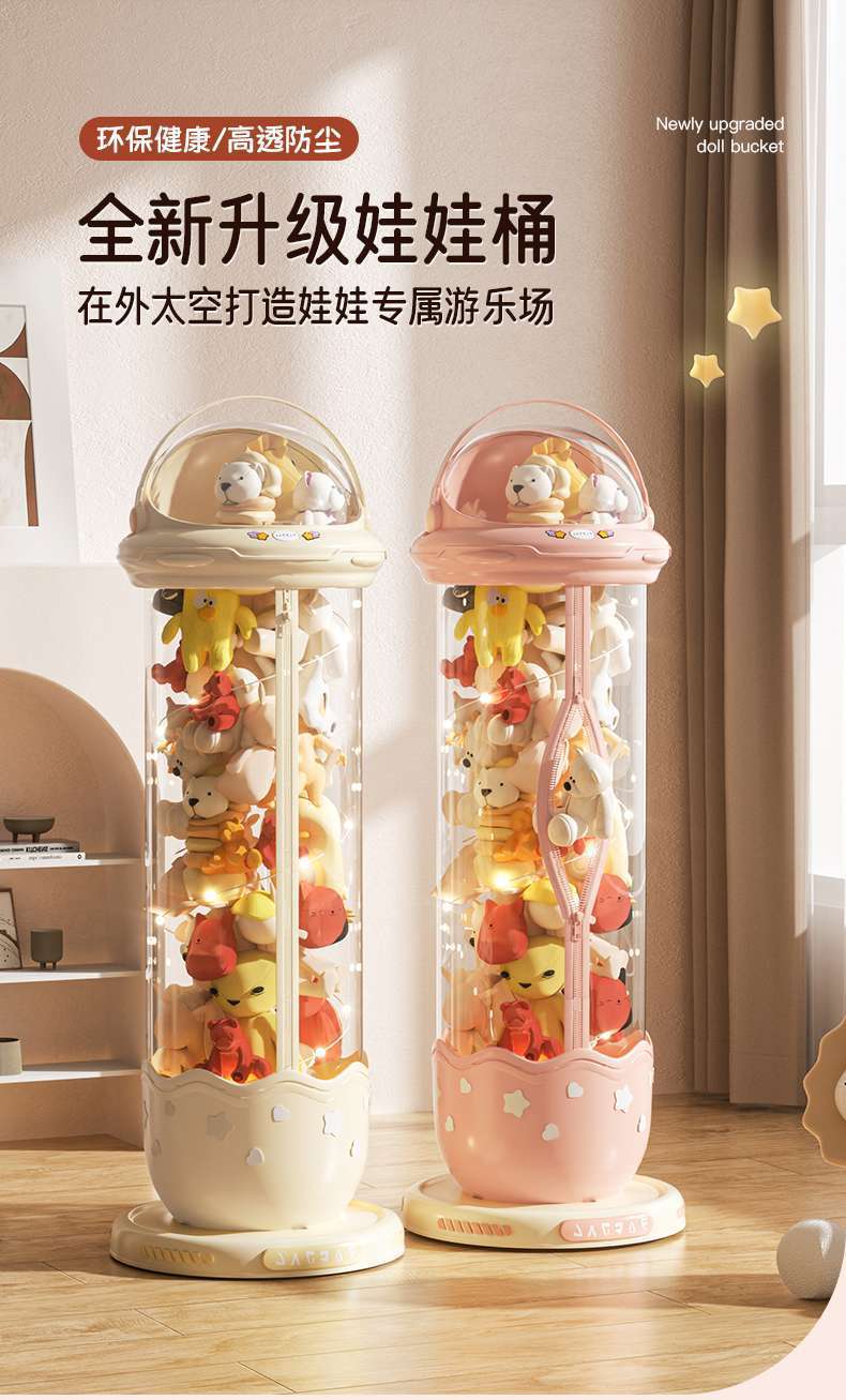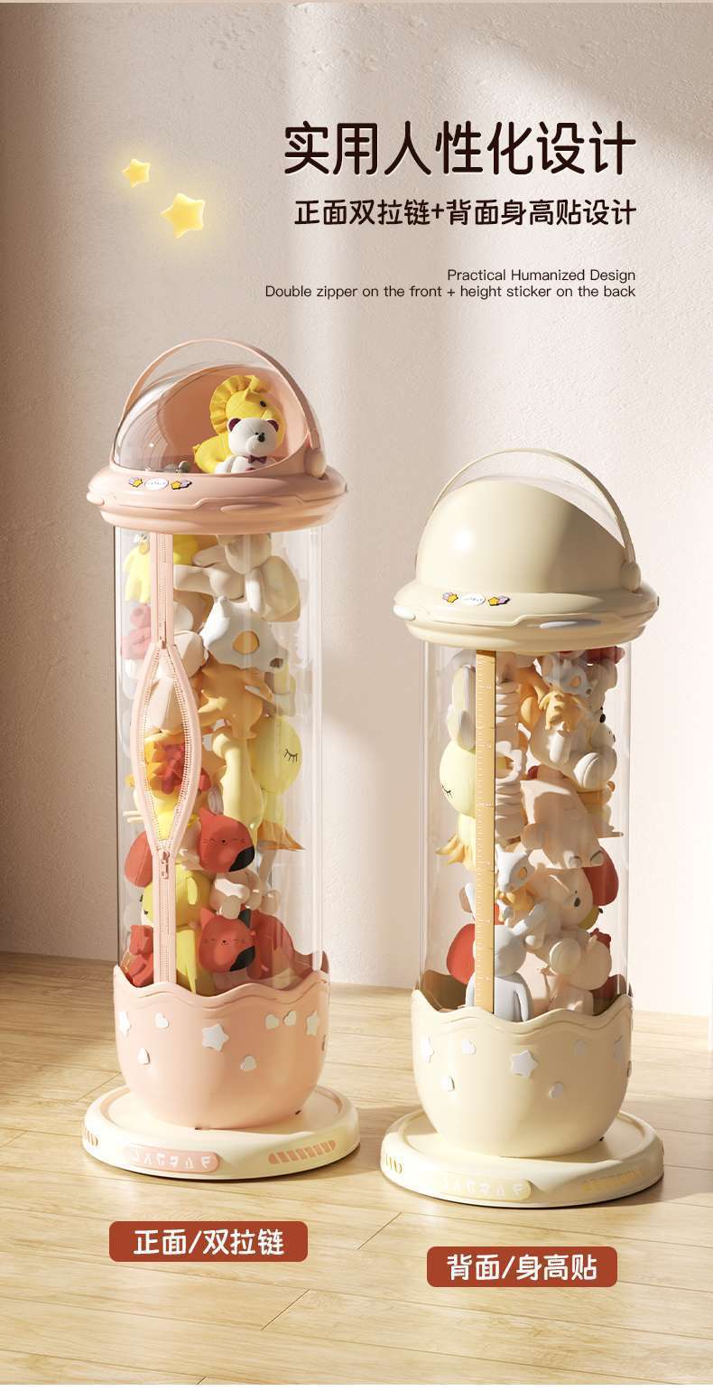 가정용 플러시 장난감 인형 보관통 지퍼 보관 유물 인형 투명 대용량 보관통
