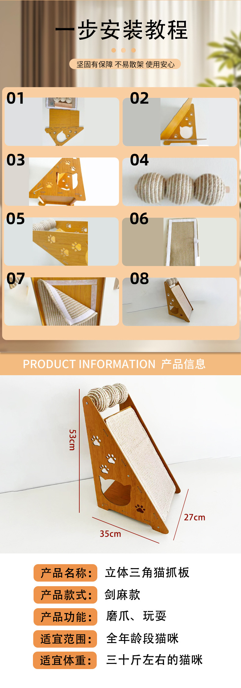 초대형 수직 삼각형 + 사이잘삼 매트 + 고양이 놀리는 공 3개