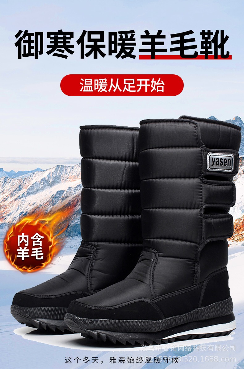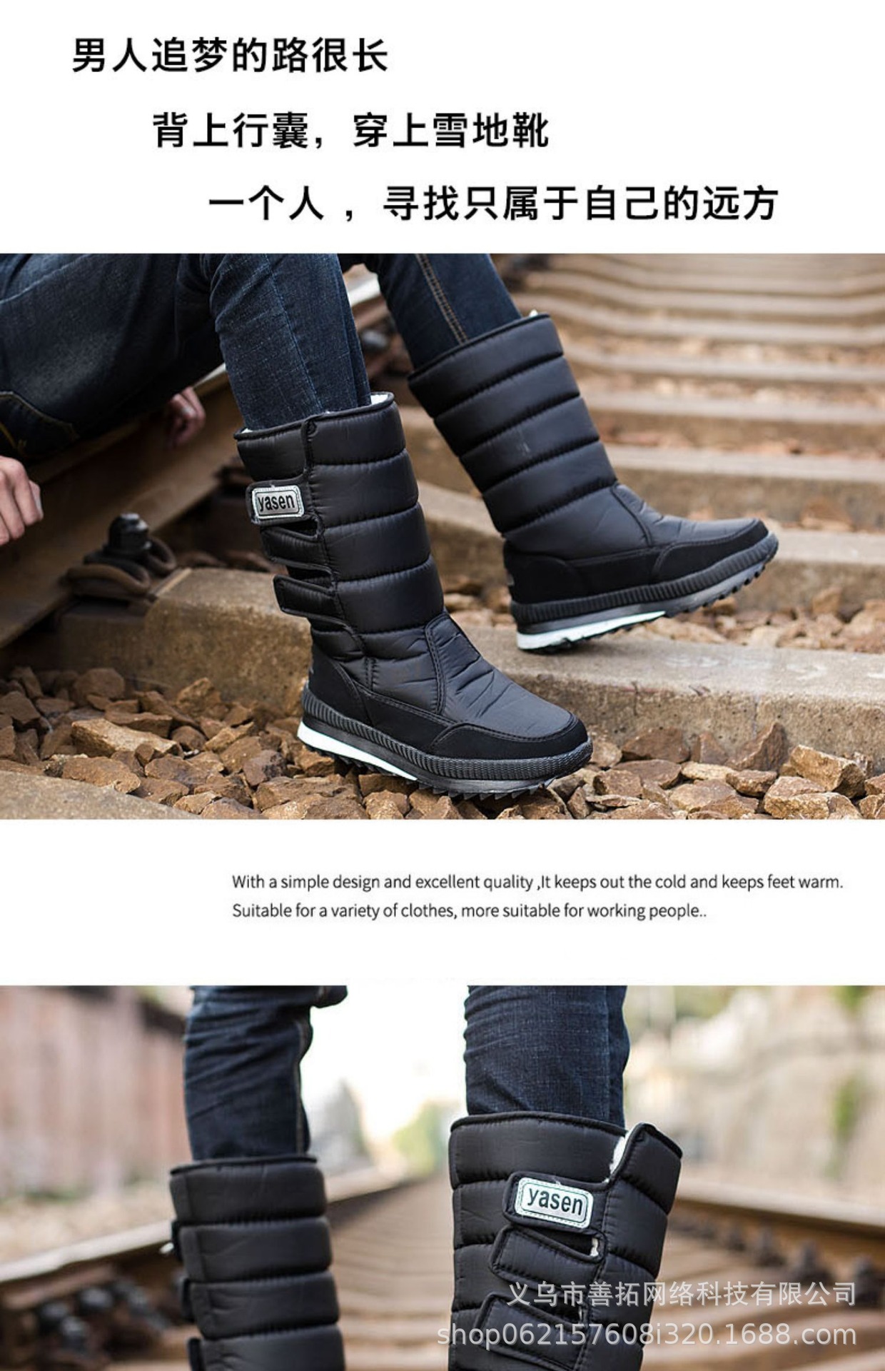 남성용 겨울 벨벳 스노우 부츠, 노인을 위한 따뜻한 면화, 하이탑, 중년 두꺼운 방수 및 미끄럼 방지 롱부츠