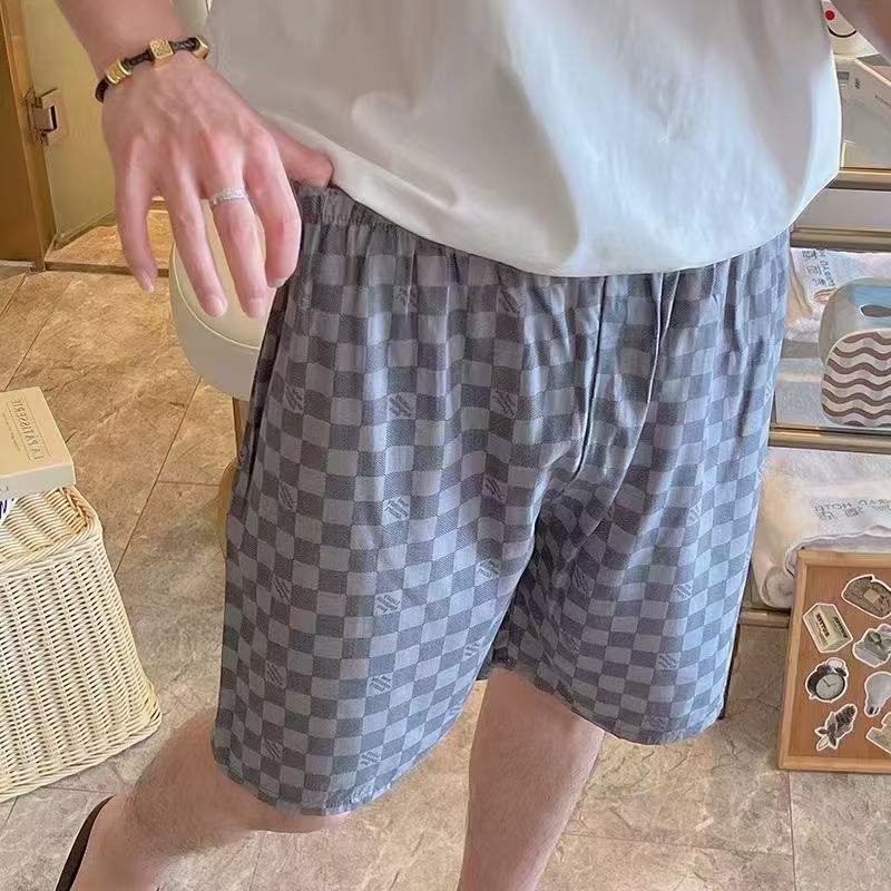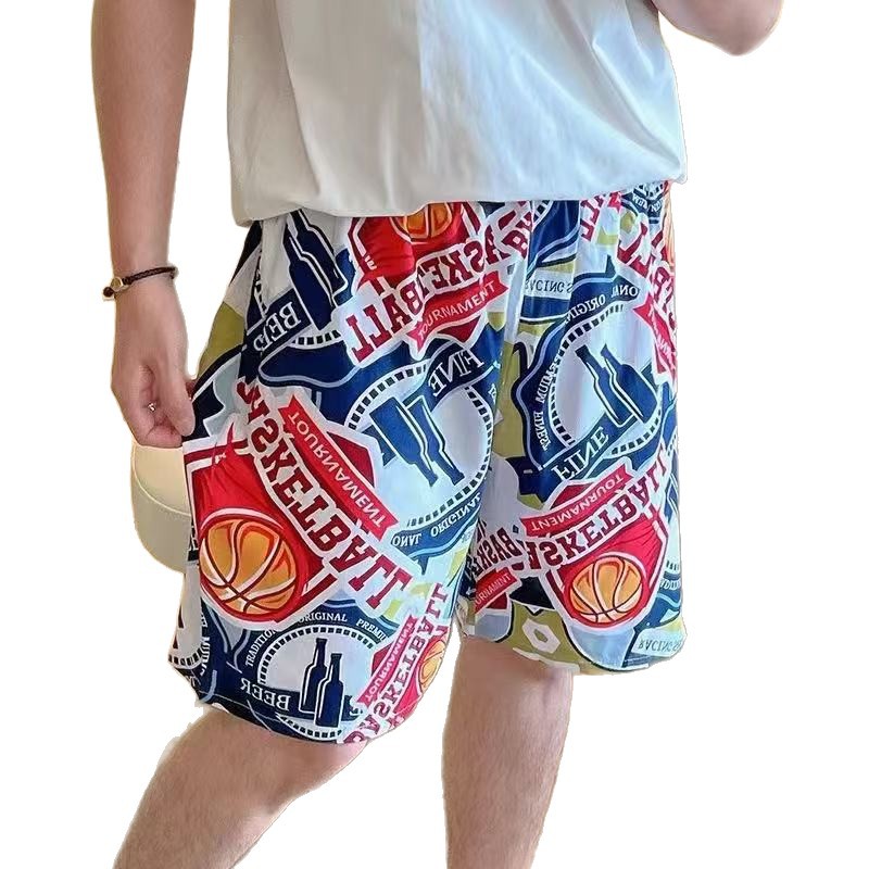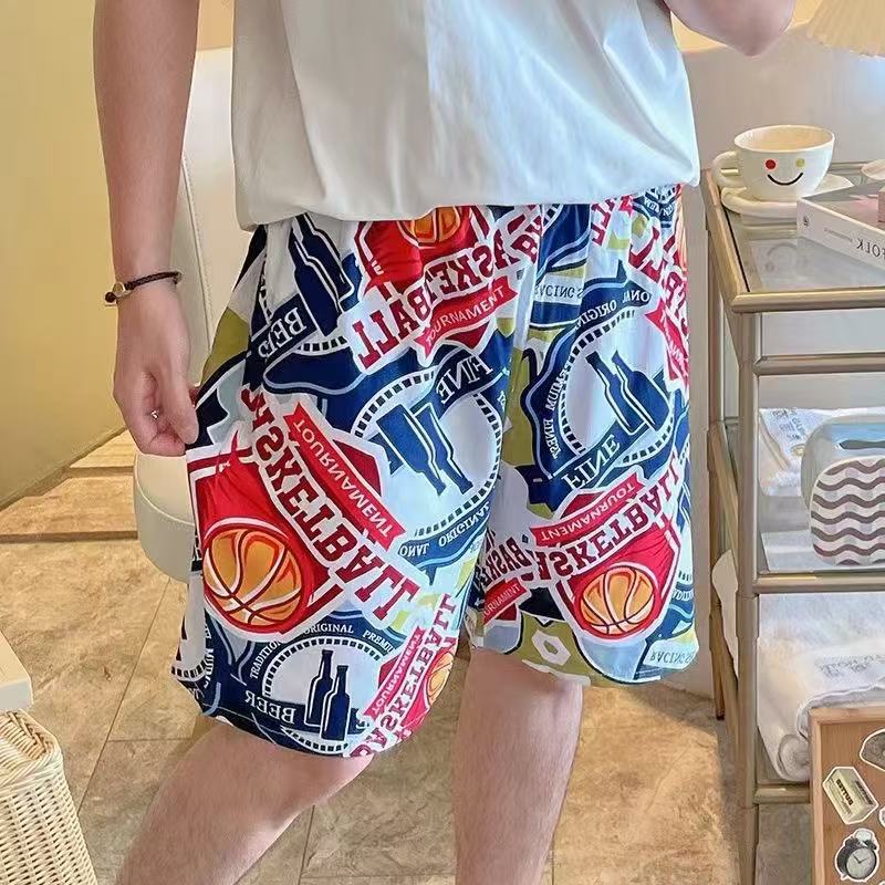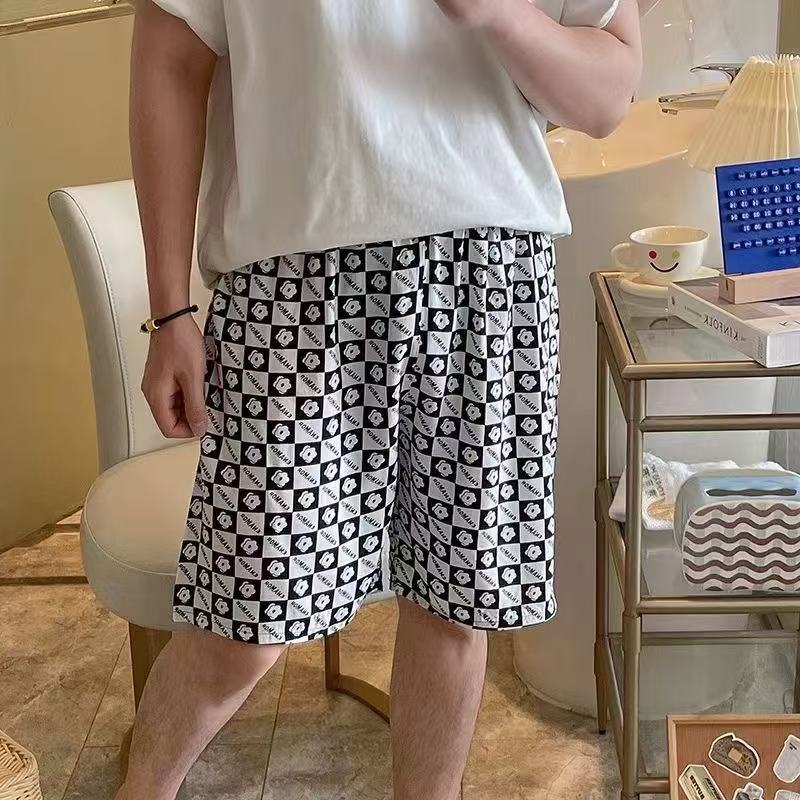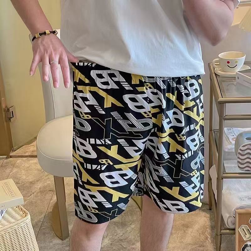 남성용 파자마 팬츠, 면 실크 여름 얇은 반바지, 레터 루즈 홈 팬츠, 외부에서 착용 가능한 대형 팬츠, 인조 면 비치 반바지