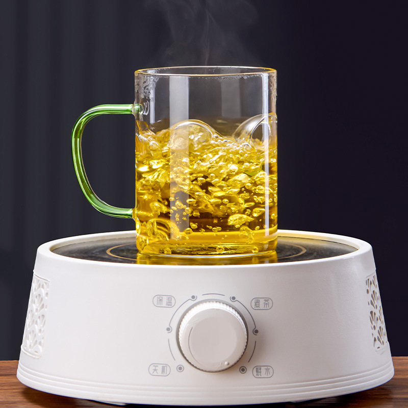 컬러 유리 컵은 전기 세라믹 스토브로 가열 가능, 내열성 밀크티 음료 컵, 6색 고붕규산 유리 단층 컵