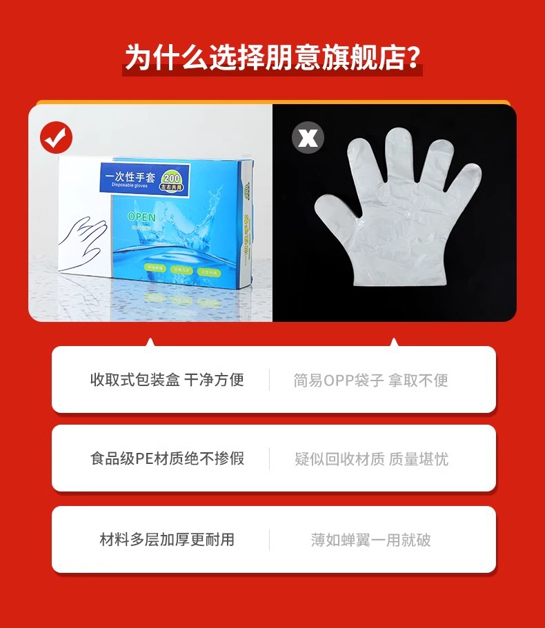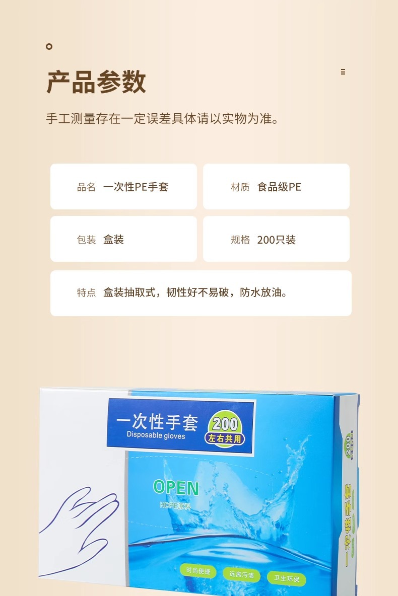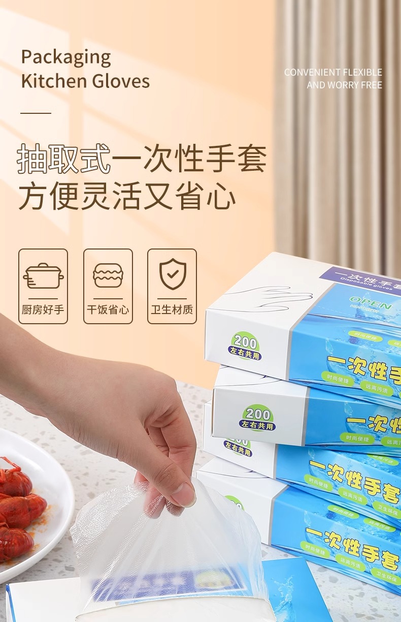 일회용 장갑 식품 등급 특수 플라스틱 PE 상업용 두꺼운 케이터링 투명 주방 가정용 내마모성 상자