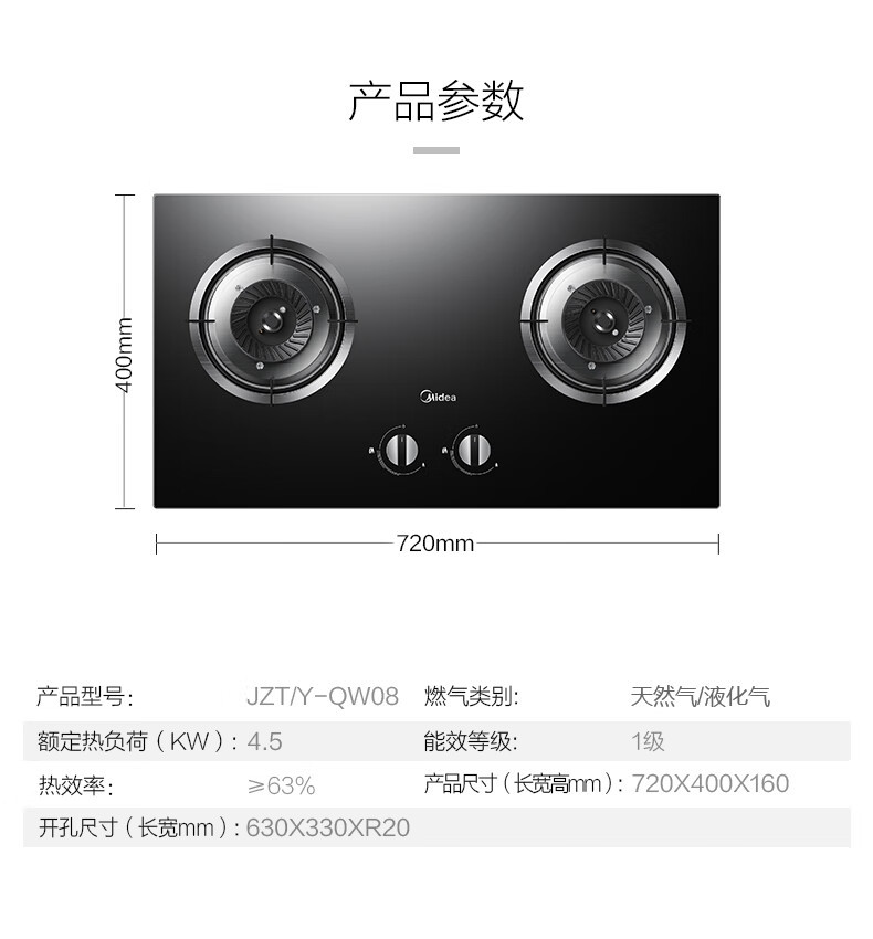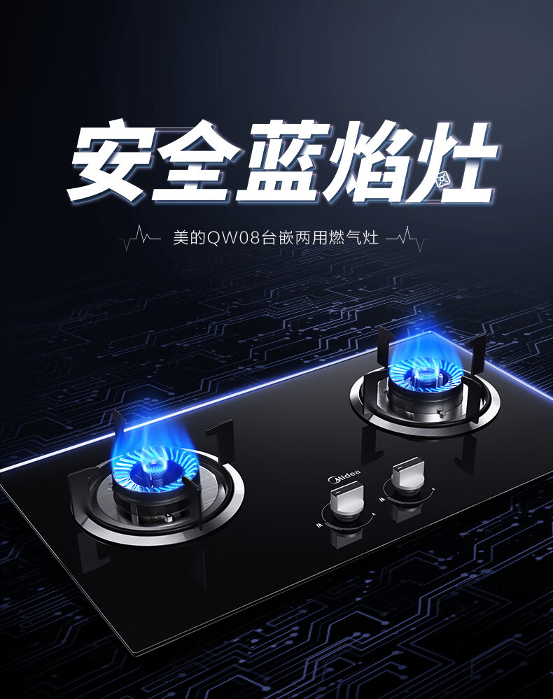 Midea QW08 가스 스토브 가스 스토브 더블 스토브 가정용 내장 천연 가스 액화 가스 고화력 스토브 더블 스토브