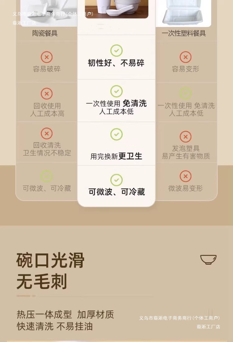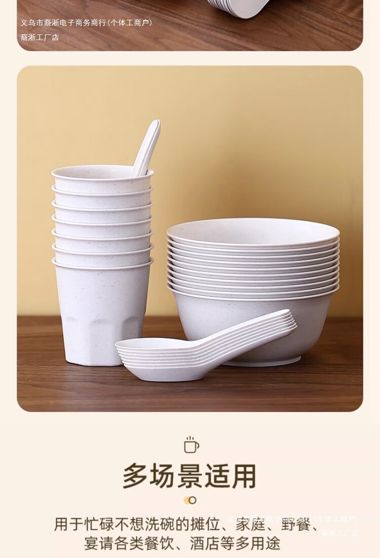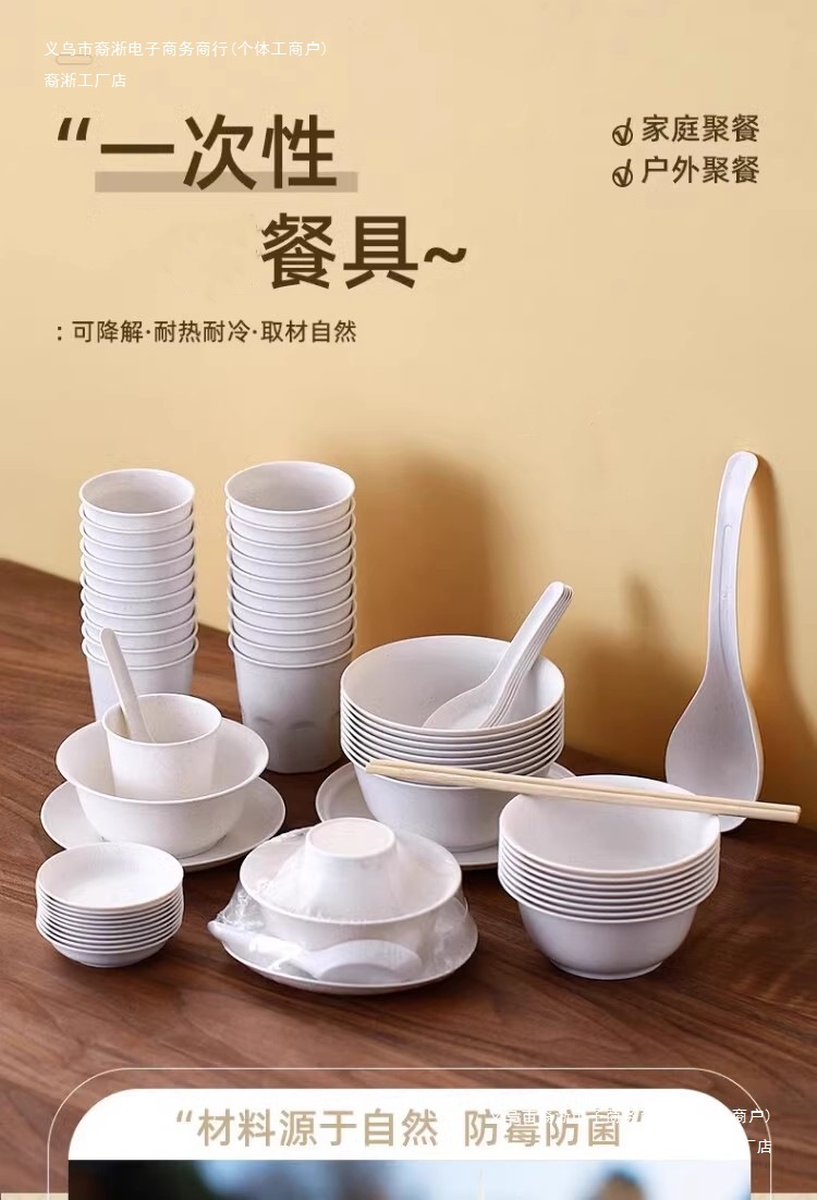 일회용 두꺼운 그릇, 젓가락 및 숟가락 세트, 고온 방지 가정용 및 상업용 도매 제조업체 직접 판매 독립적으로 포장된 크고 작은 그릇