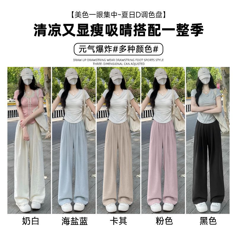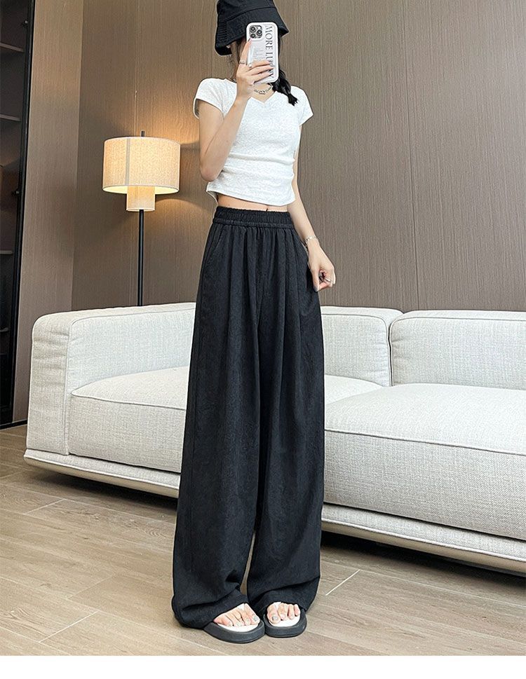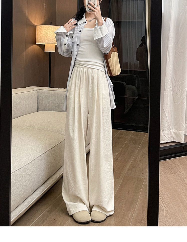 야마모토 화이트 레이지 2025 얇은 신작 캐주얼 하이 웨이스트 슬림 루즈 대형 스트레이트 팬츠 여성 바지