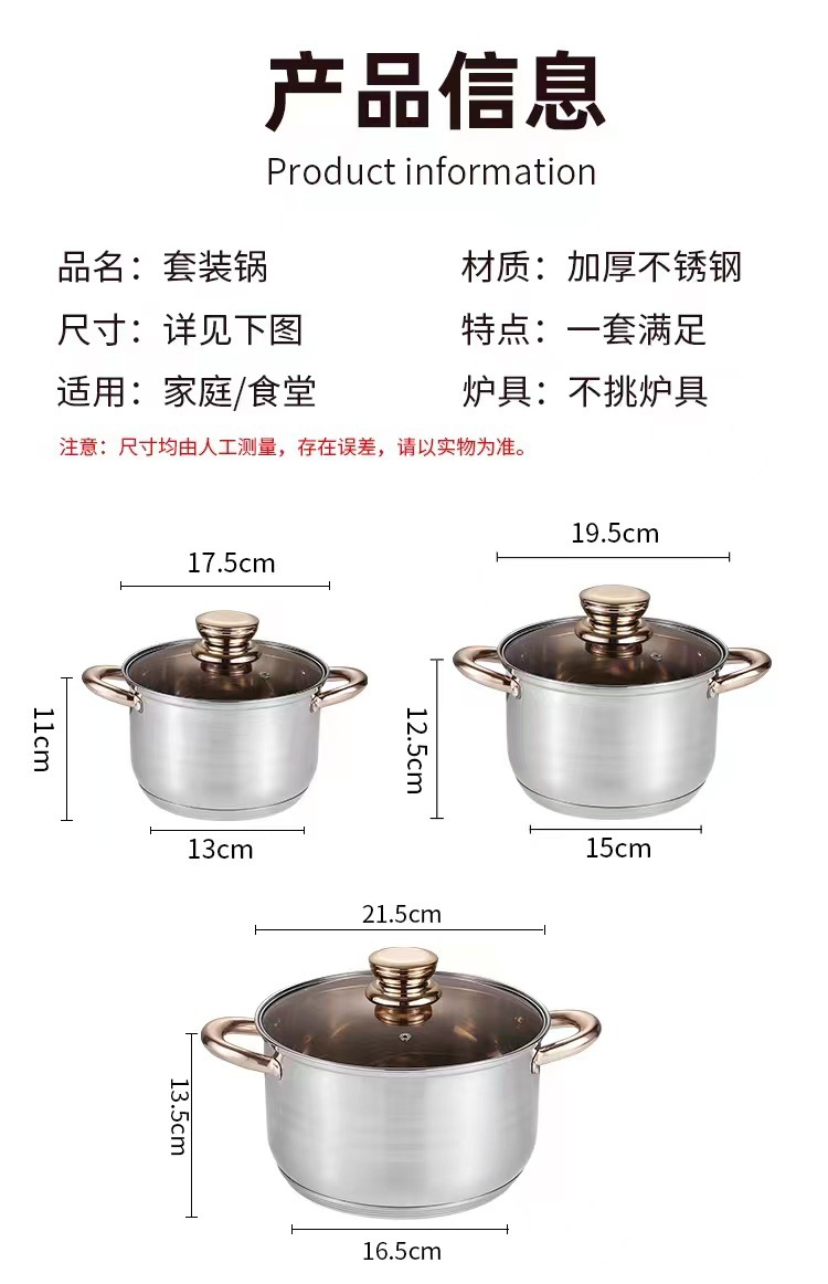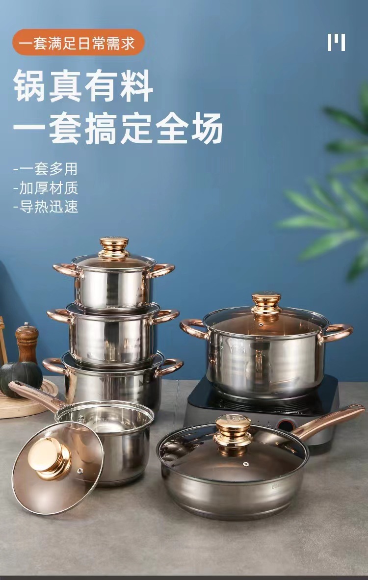 식품 등급 스테인리스 냄비 세트, 두꺼운 주방용 가정용 및 상업용 조리기구, 깊은 냄비, 논스틱 냄비, 해외배송