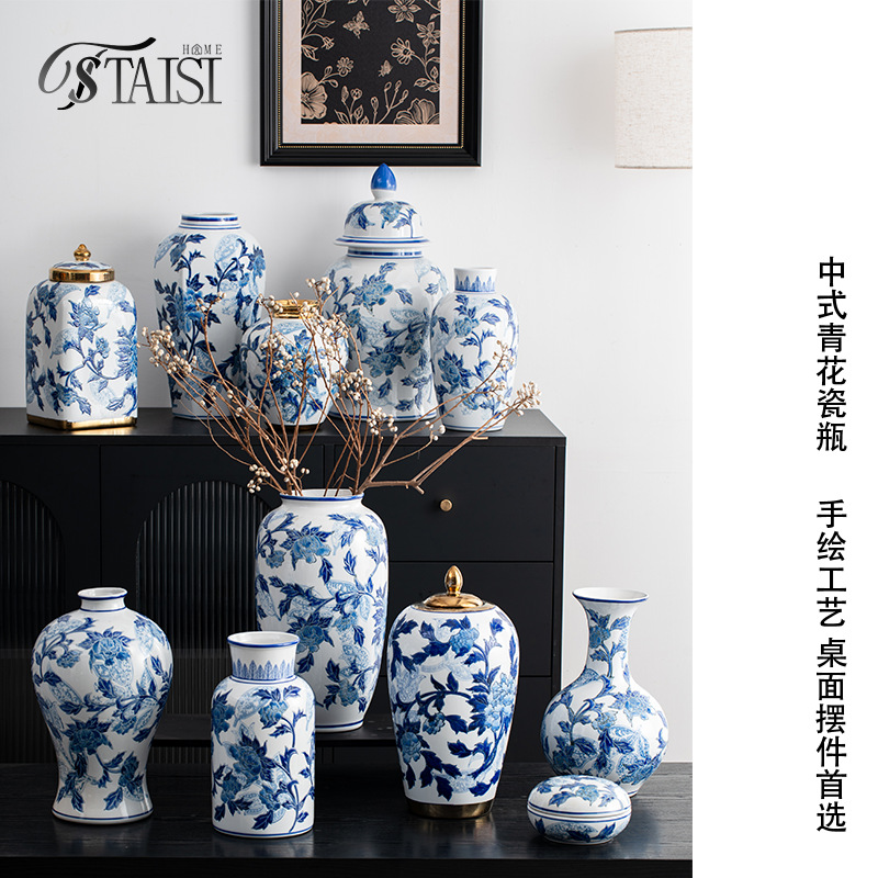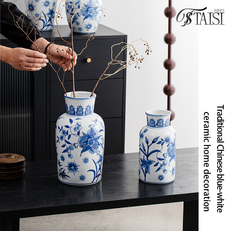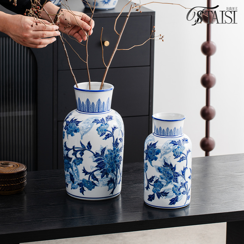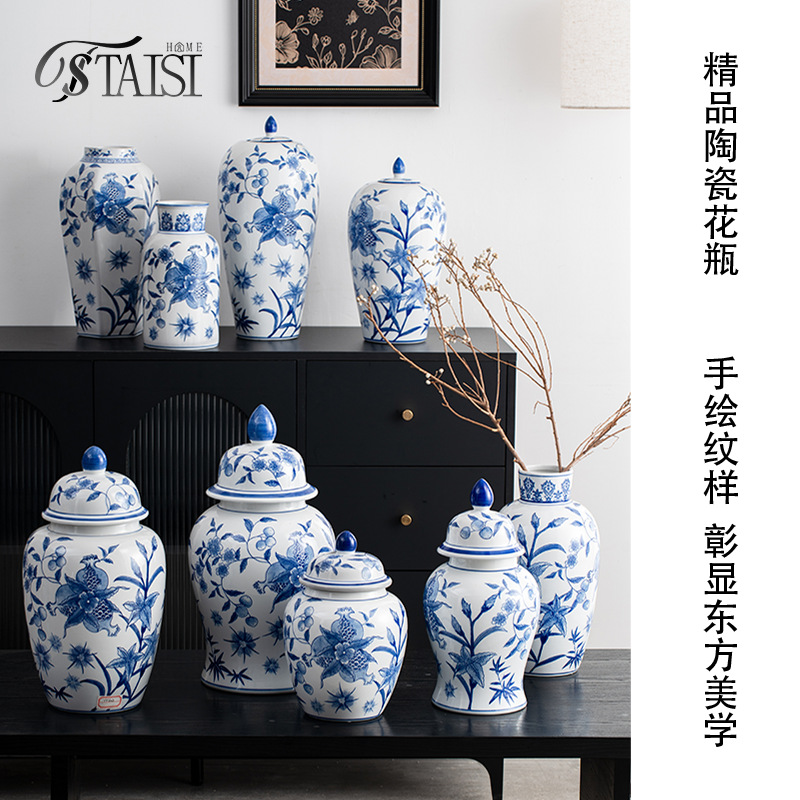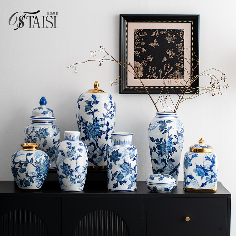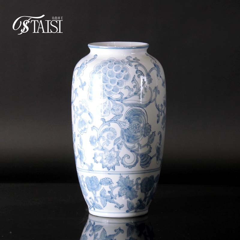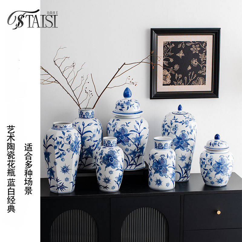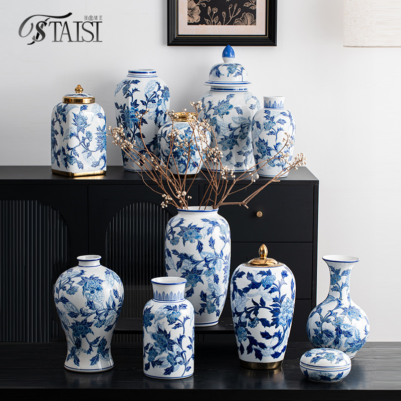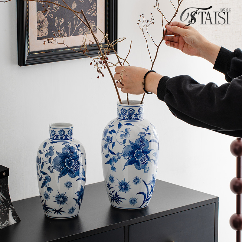 파란색과 흰색 도자기 세라믹 꽃병, 고급 가정 꽃꽂이, 작은 장식품, 거실 장식 공예품, 꽃 그릇, 일반 항아리