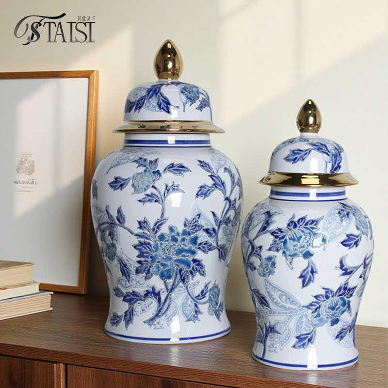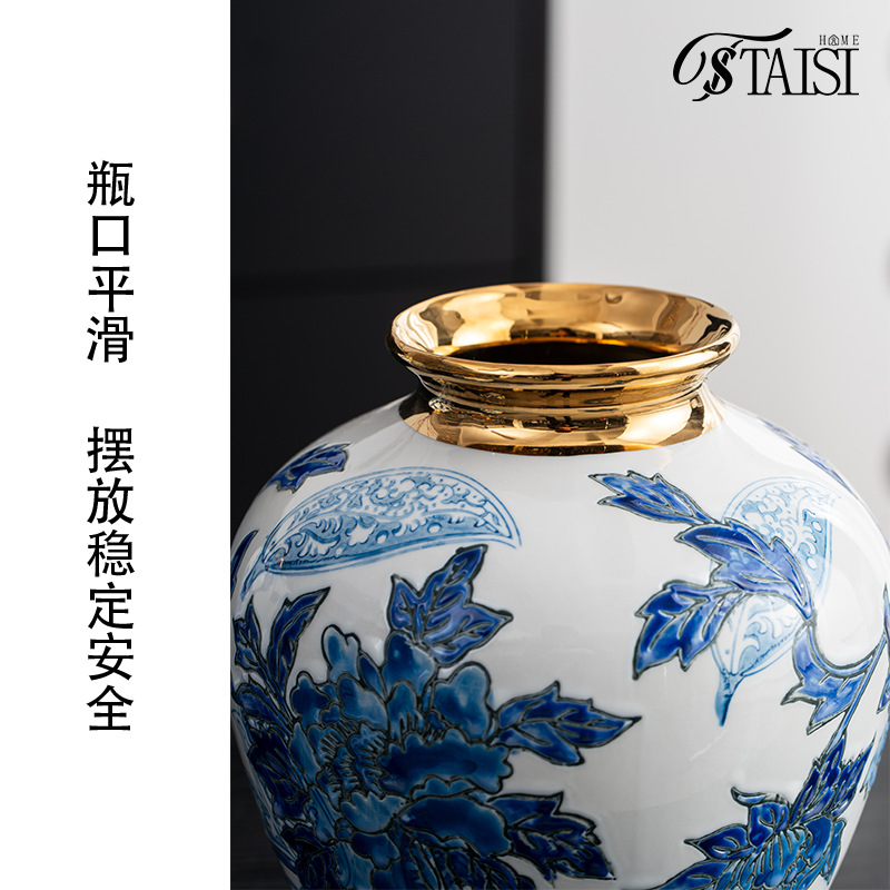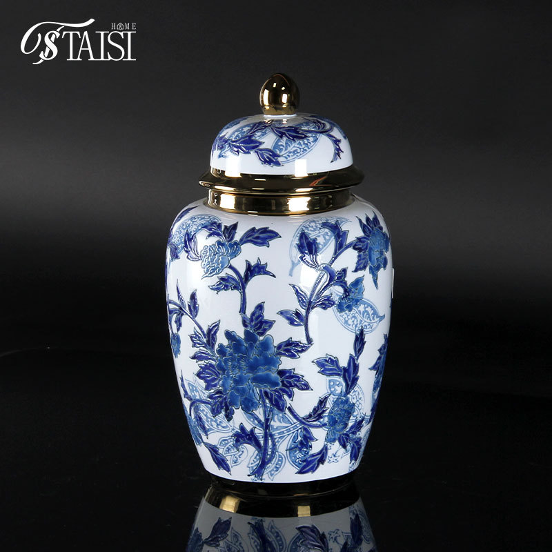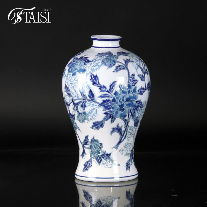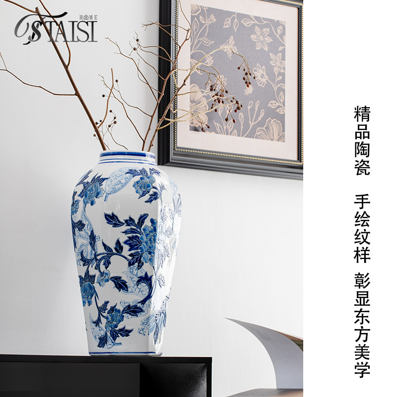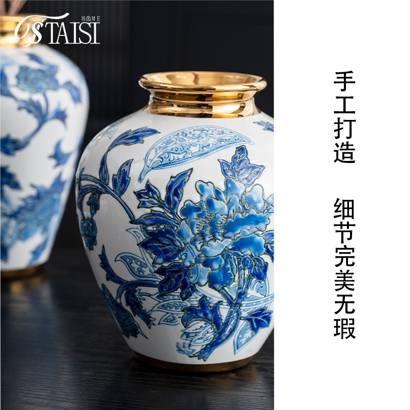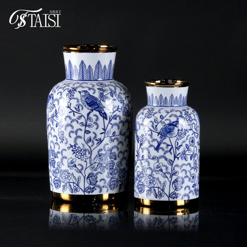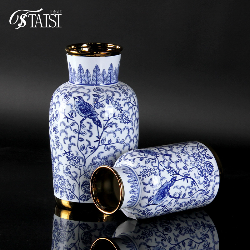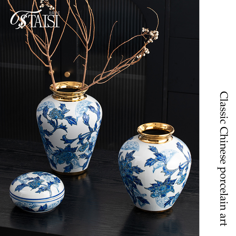파란색과 흰색 도자기 세라믹 꽃병, 고급 가정 꽃꽂이, 작은 장식품, 거실 장식 공예품, 꽃 그릇, 일반 항아리