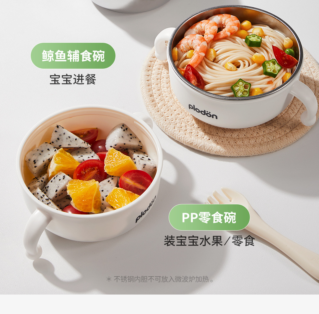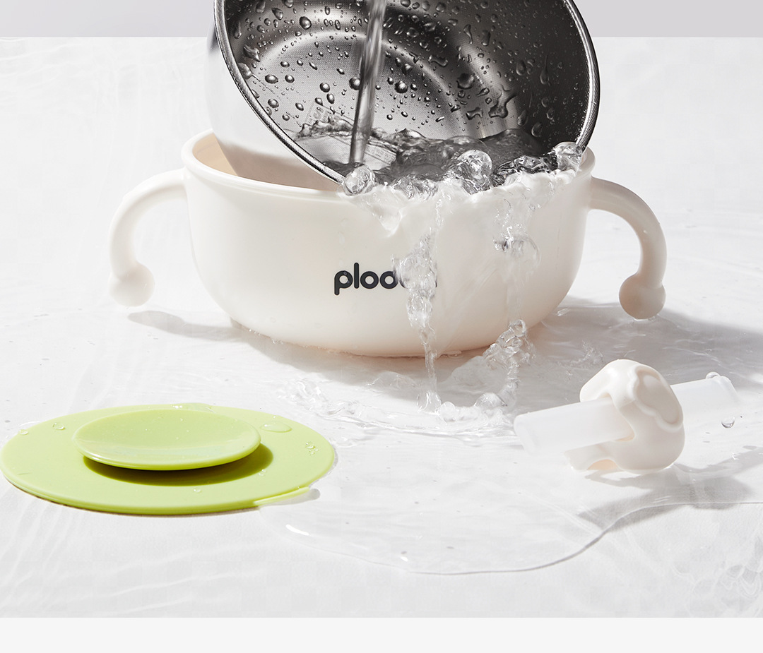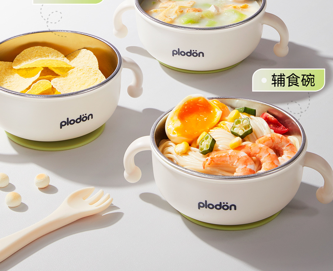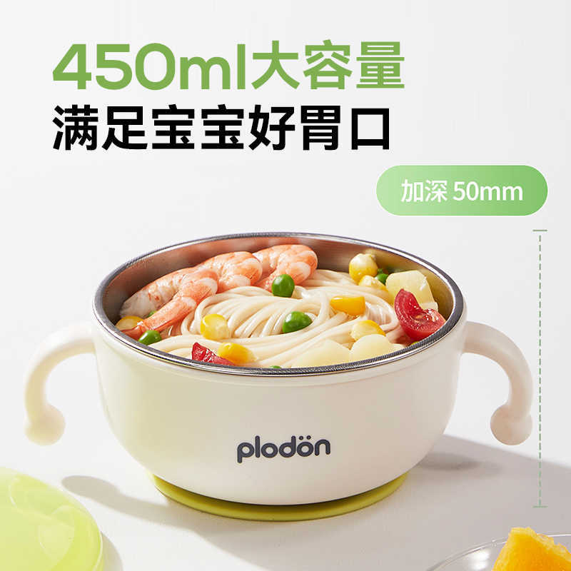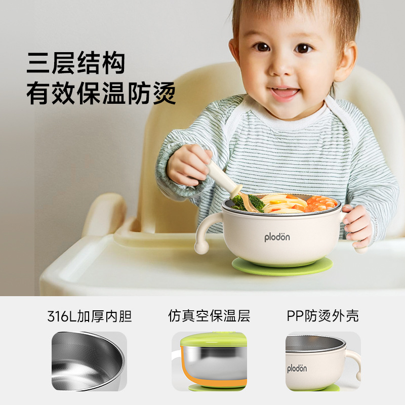 풀리튼 이유식 보충 그릇, 어린이용 특수 흡입 컵 스테인레스 스틸 밥 그릇, 신생아 식사 훈련 식기