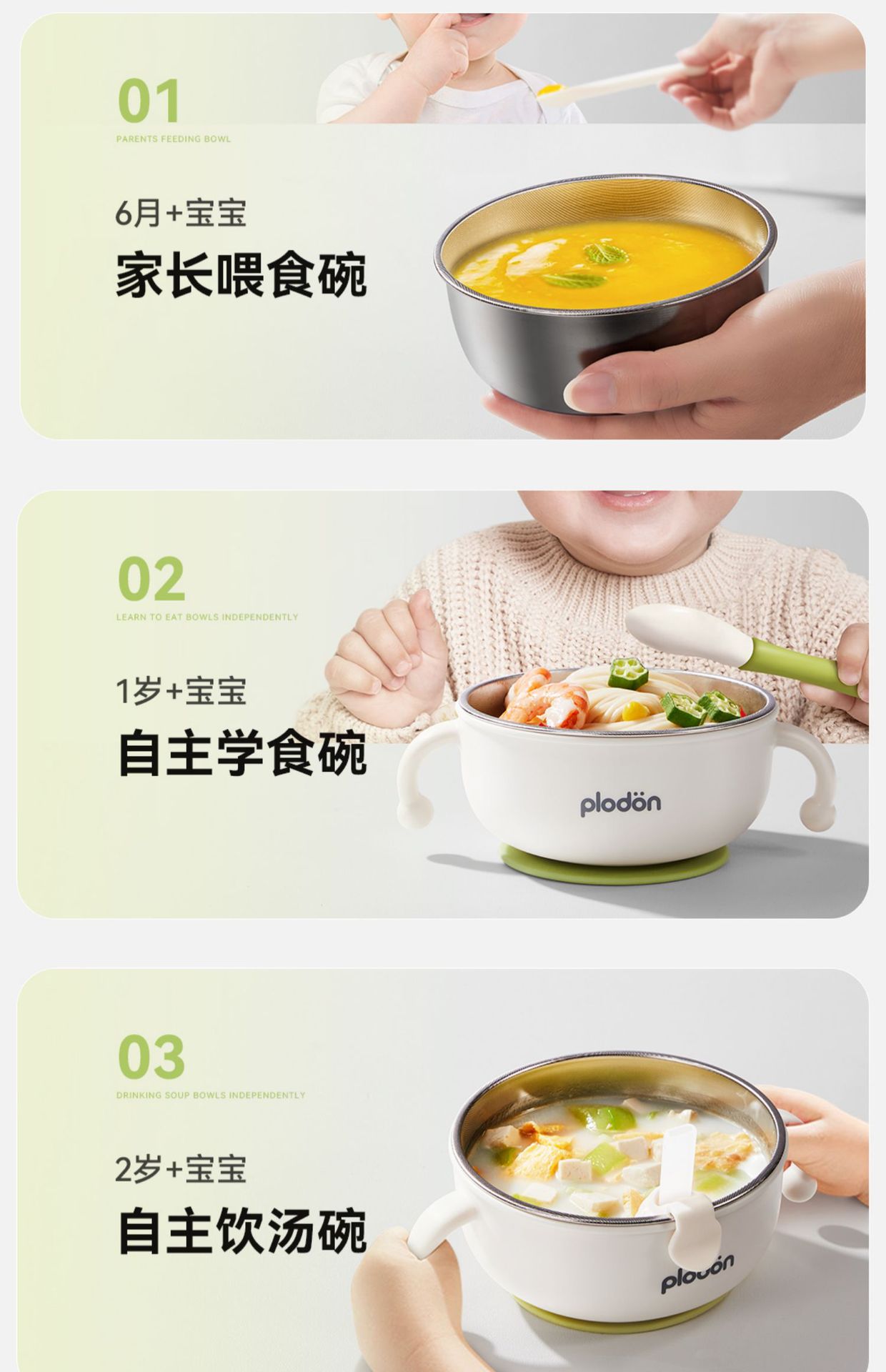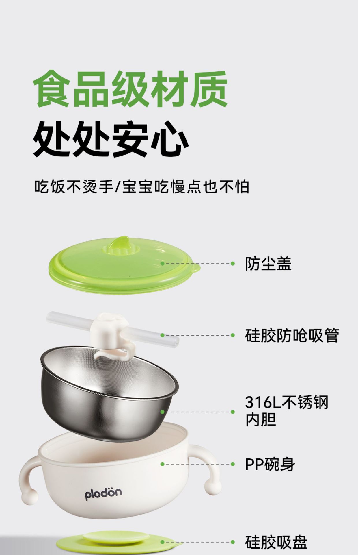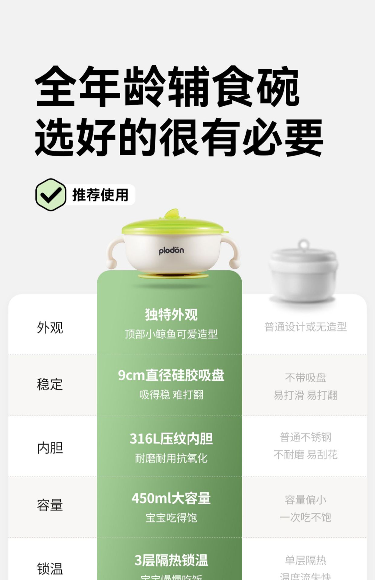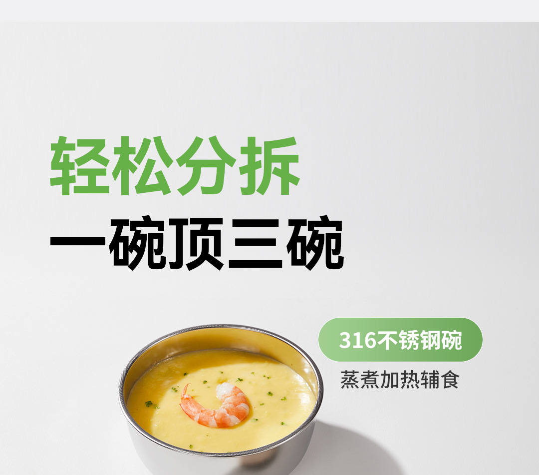 풀리튼 이유식 보충 그릇, 어린이용 특수 흡입 컵 스테인레스 스틸 밥 그릇, 신생아 식사 훈련 식기