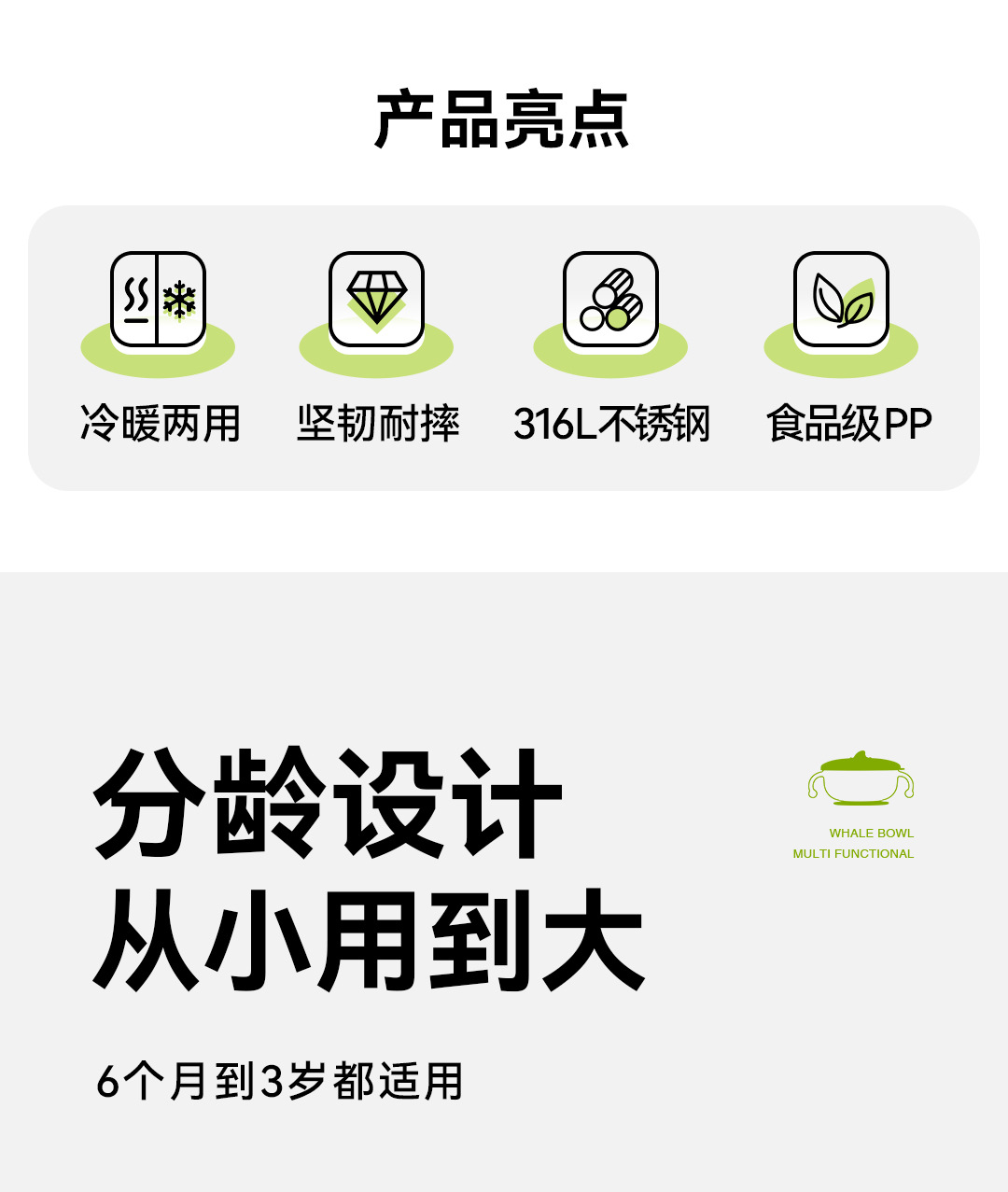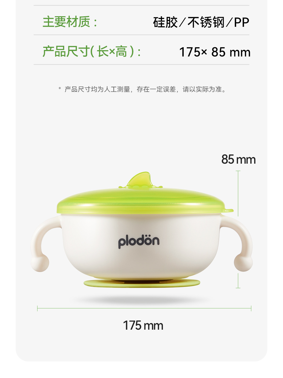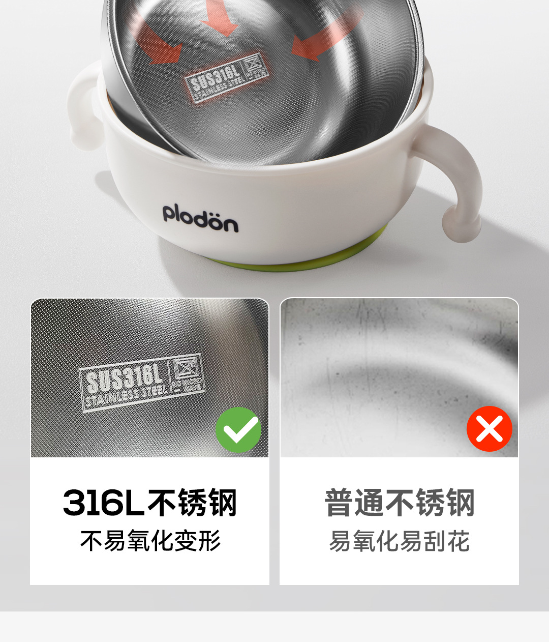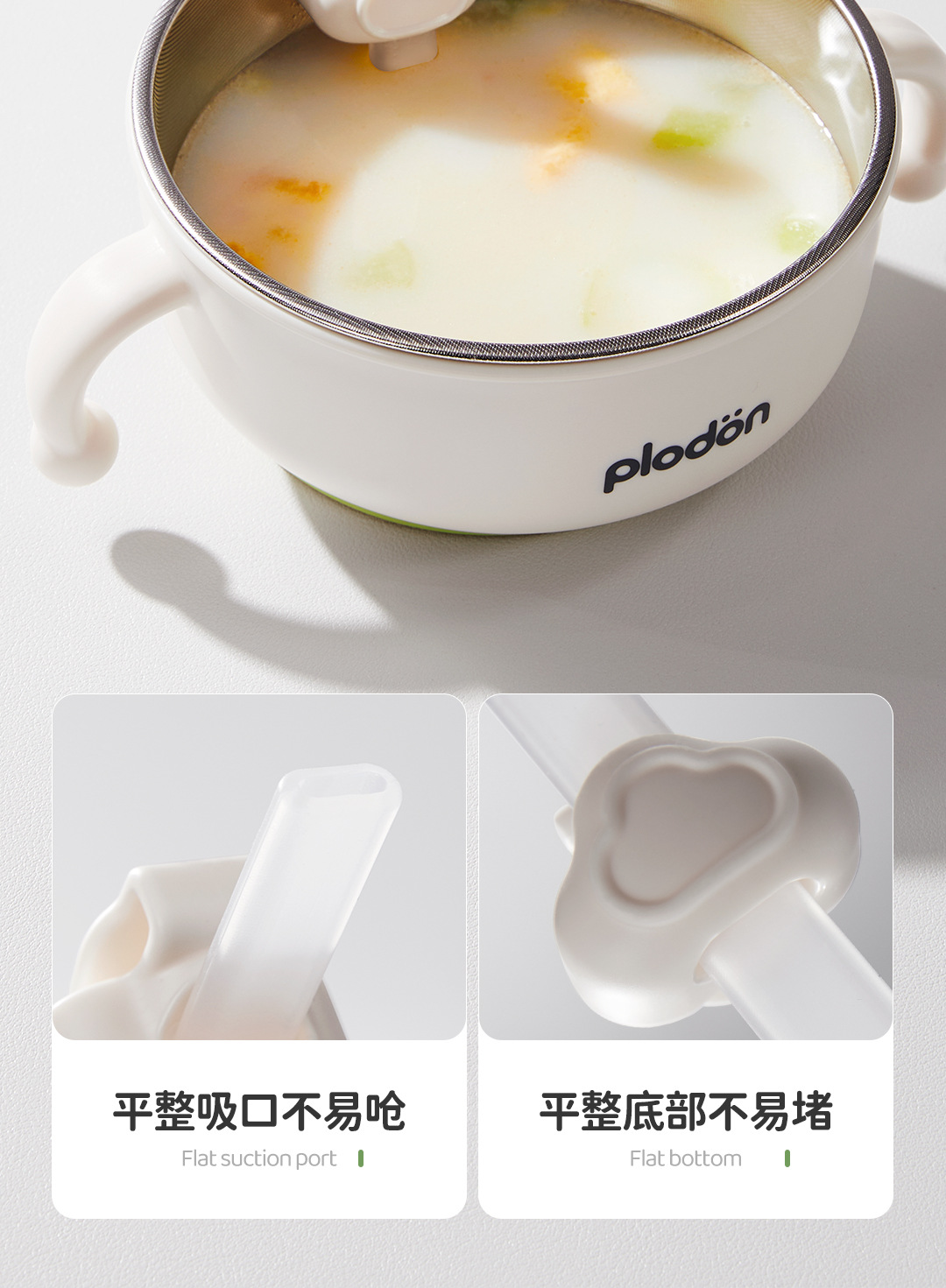 풀리튼 이유식 보충 그릇, 어린이용 특수 흡입 컵 스테인레스 스틸 밥 그릇, 신생아 식사 훈련 식기