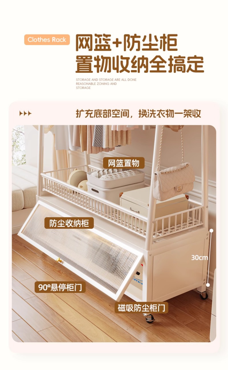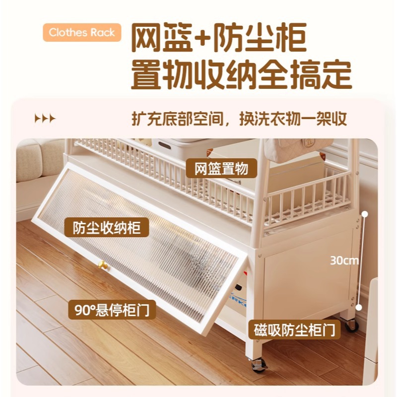 80CM-밀크화이트 [수납망바구니+방진사물함] 후크+바퀴 포함