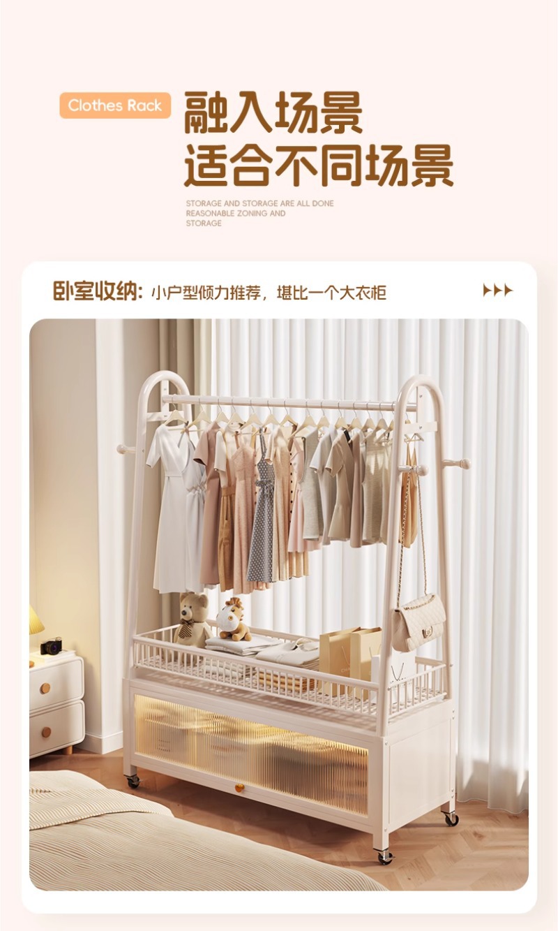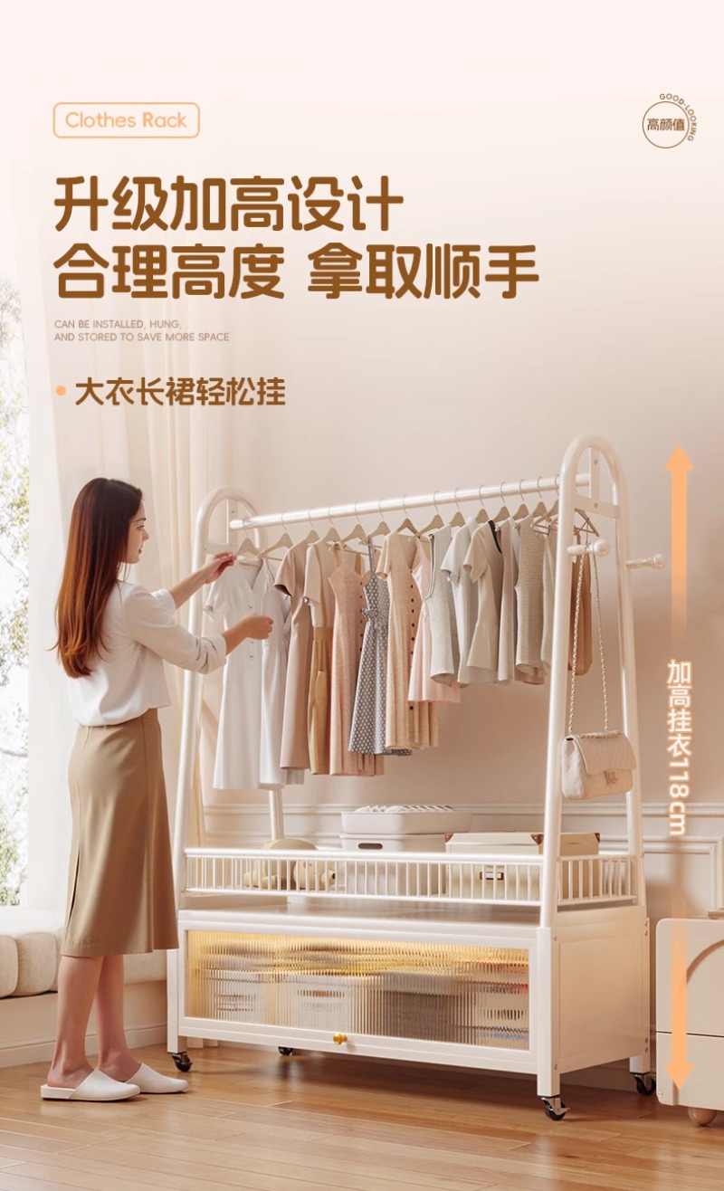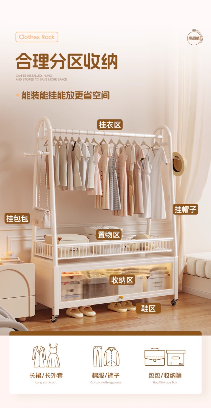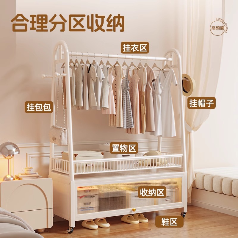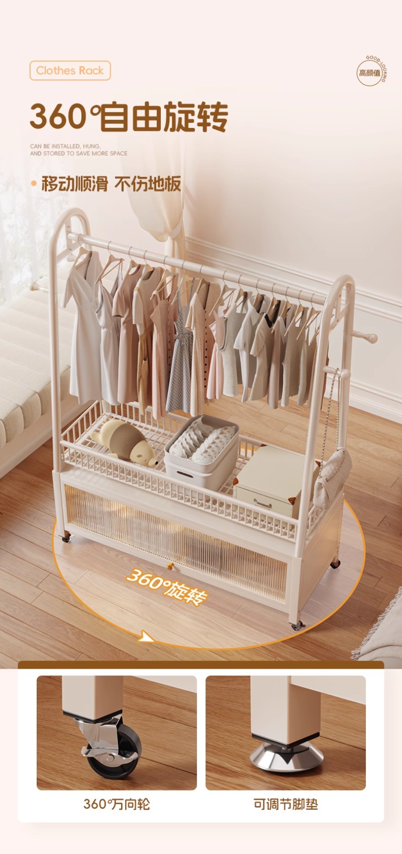 침실 바닥에 걸 수 있는 옷걸이, 가정용 간단한 옷걸이, 가벼운 고급형 이동식 거실 발코니 옷 건조대