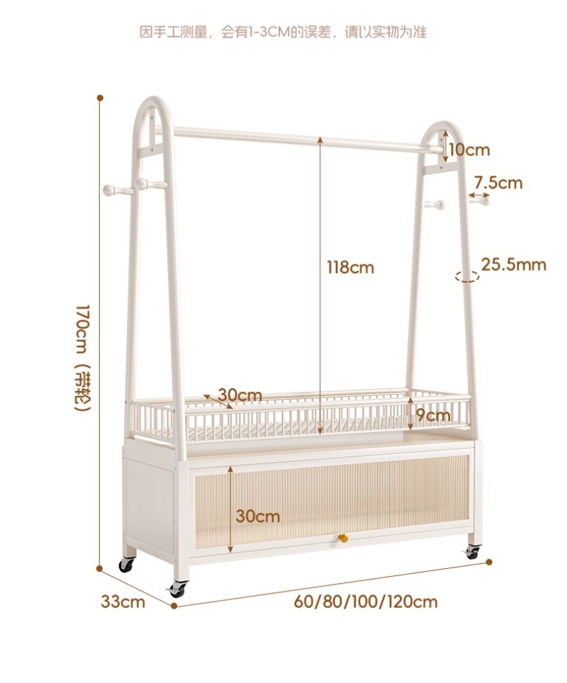 120CM-밀크화이트 [수납망바구니+방진사물함] 후크+바퀴 포함