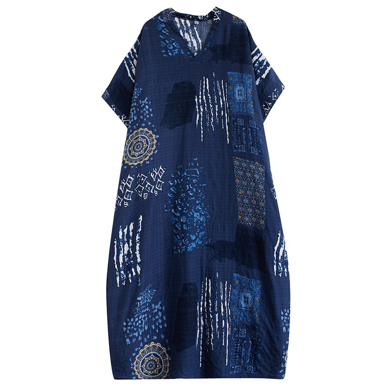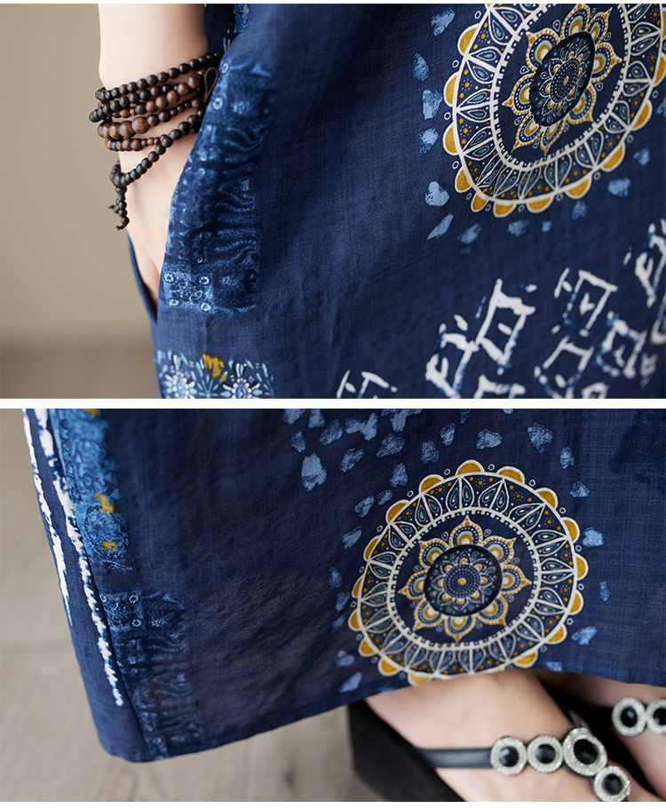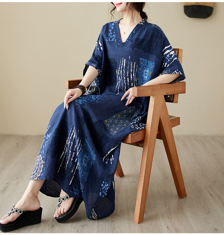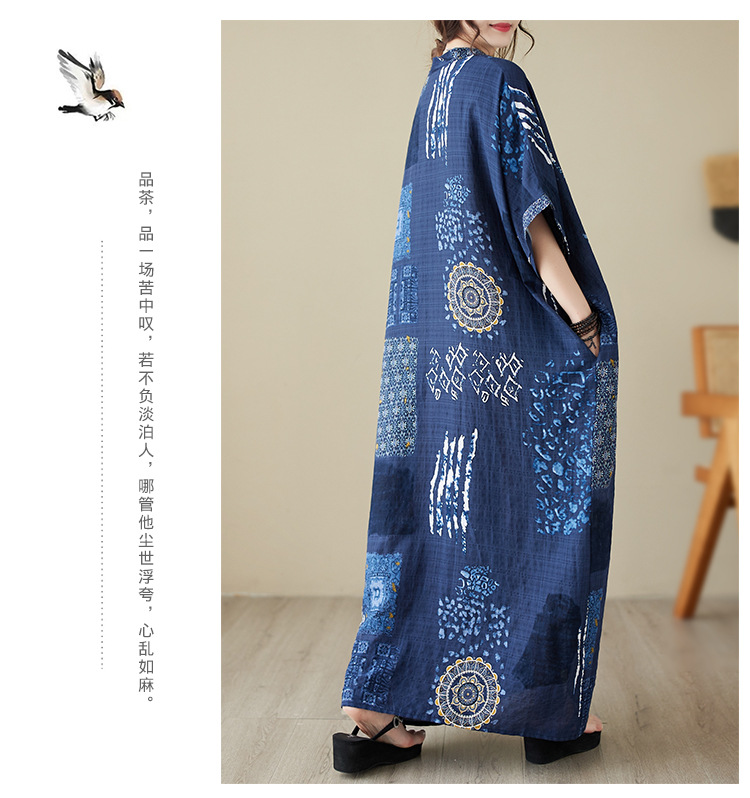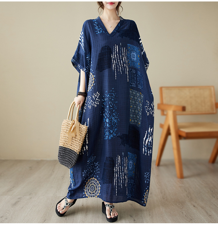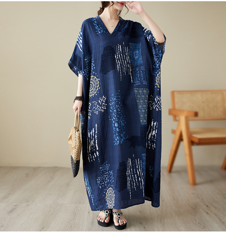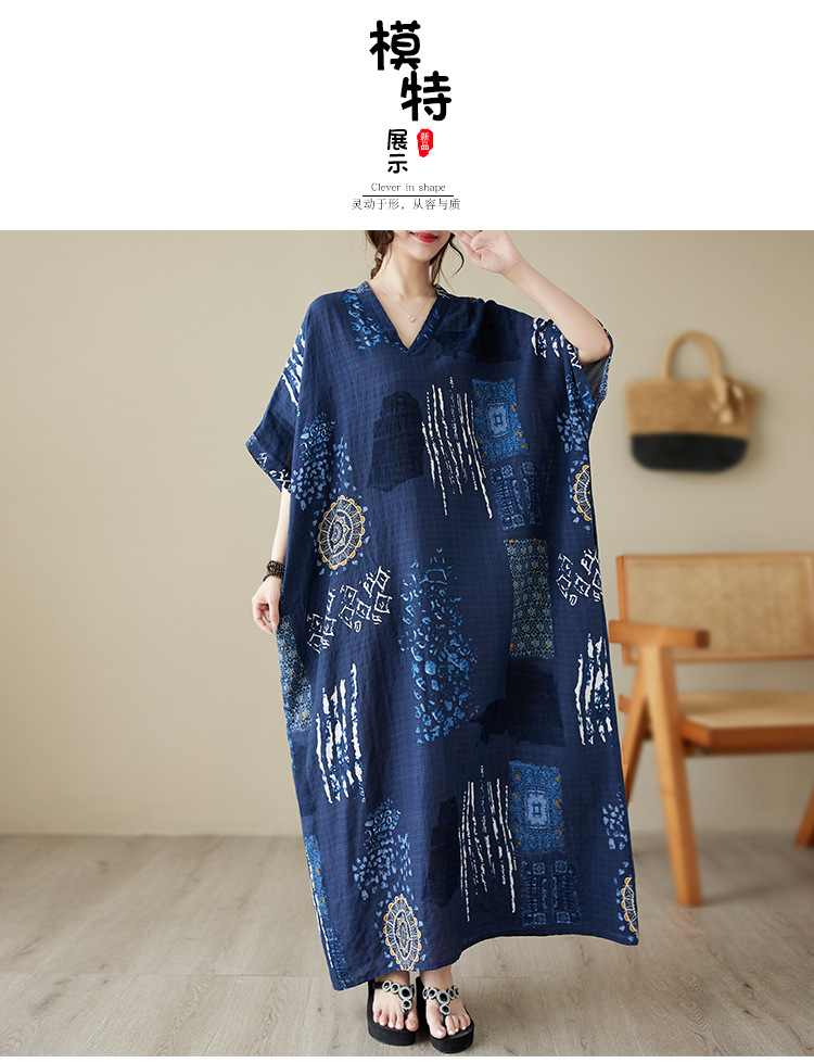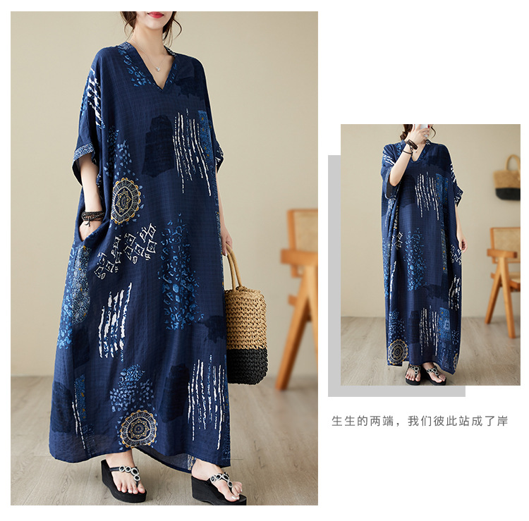 2025 새로운 여름 스타일 예술적 대형 느슨한 휴가 스타일 칼라 반팔 드레스 여성 비치 스커트 롱 스커트