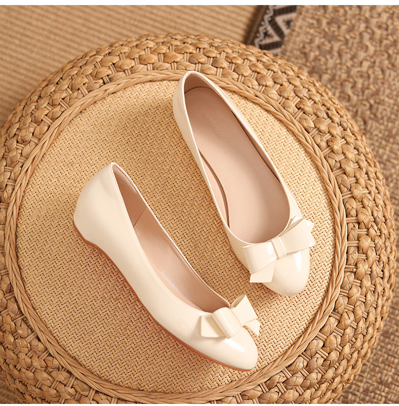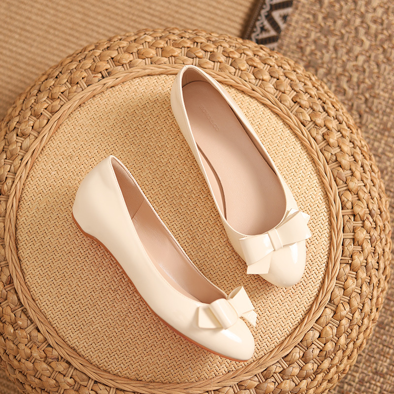 2025년 신형 프렌치 스타일 키높이 라운드 토 플랫슈즈, 얕은 입구, 발이 피곤하지 않은, 다재다능한 통근용 여성용 소프트솔 슈즈