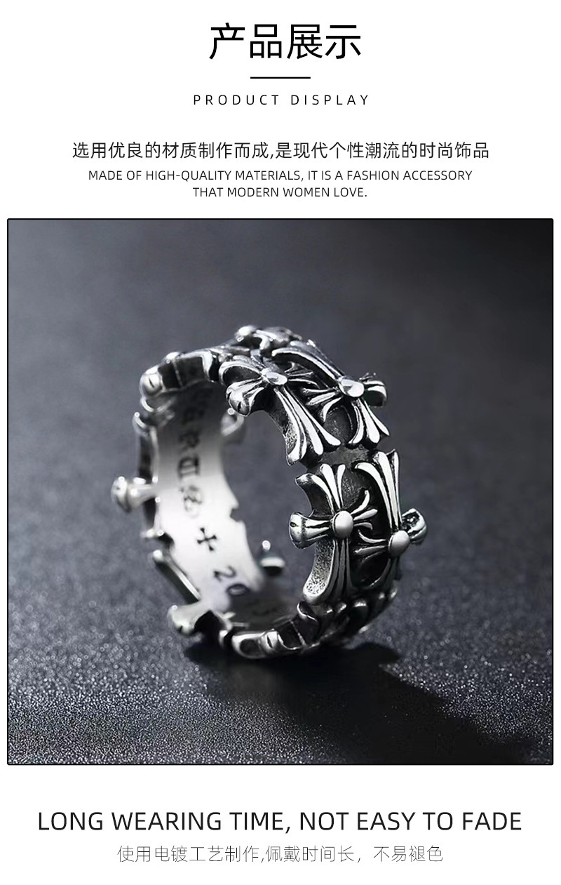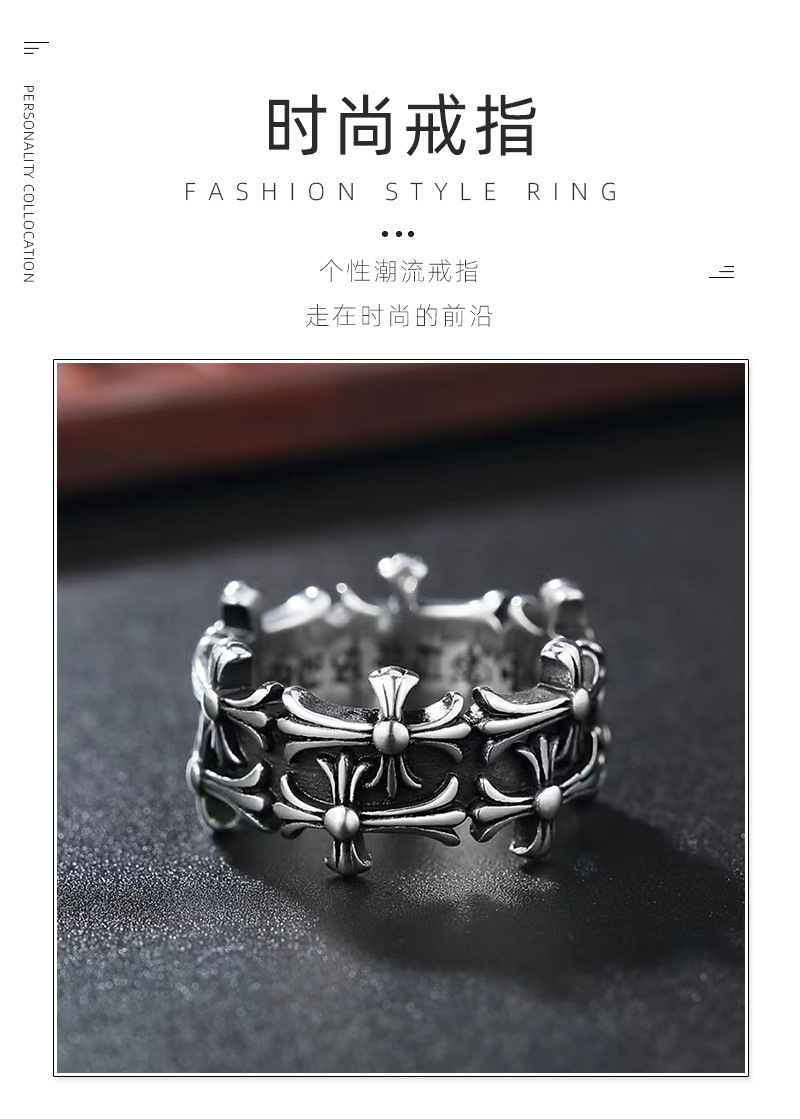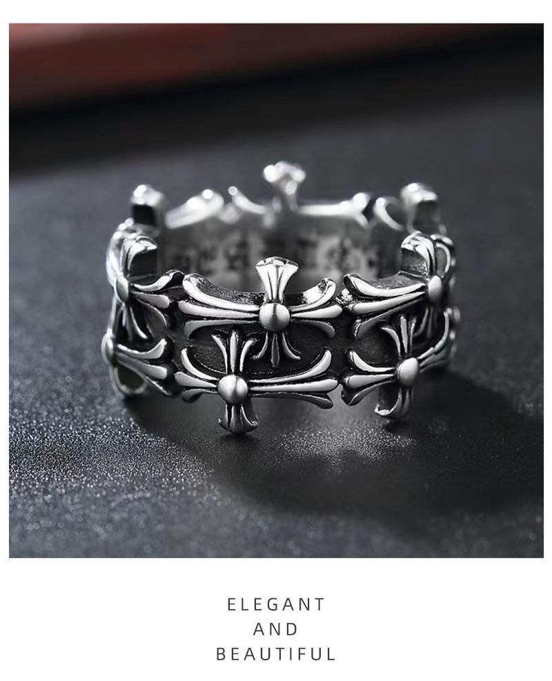 유럽과 미국의 크로스 더블 레이어 크로스 반지, 맞춤형 트렌디 커플 반지, 복고풍 다용도 오픈 인덱스 핑거 반지