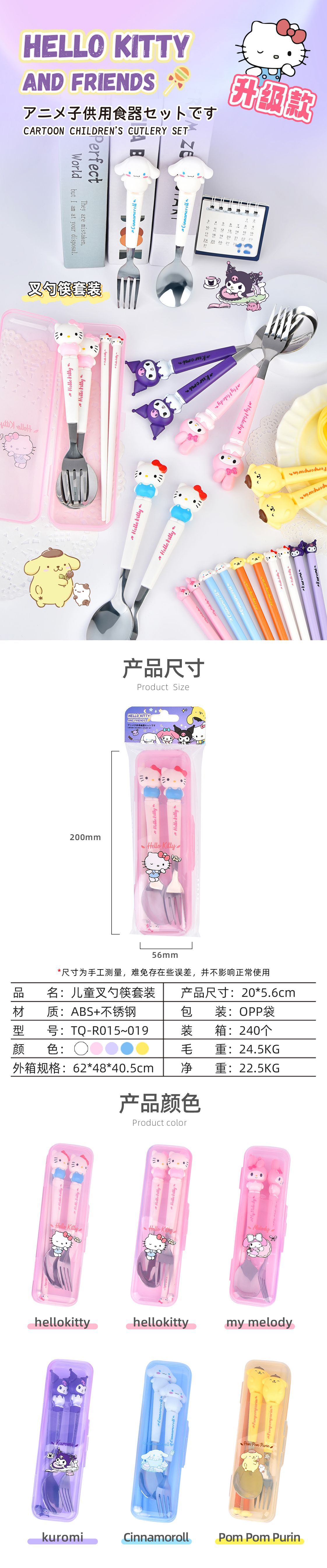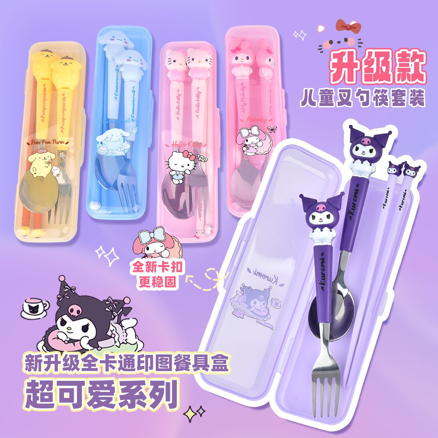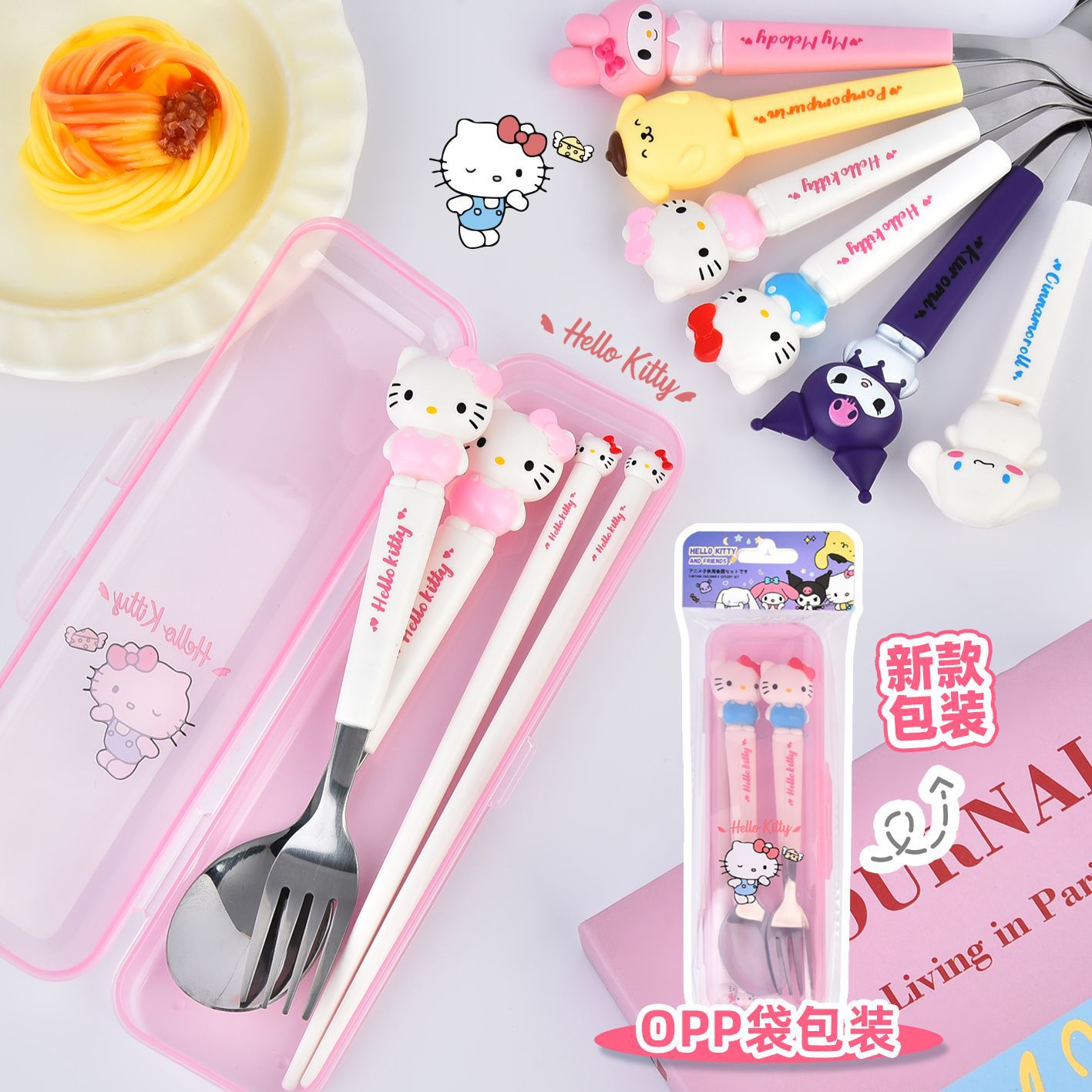 三丽鸥可爱便携三件套装筷子不锈钢叉子