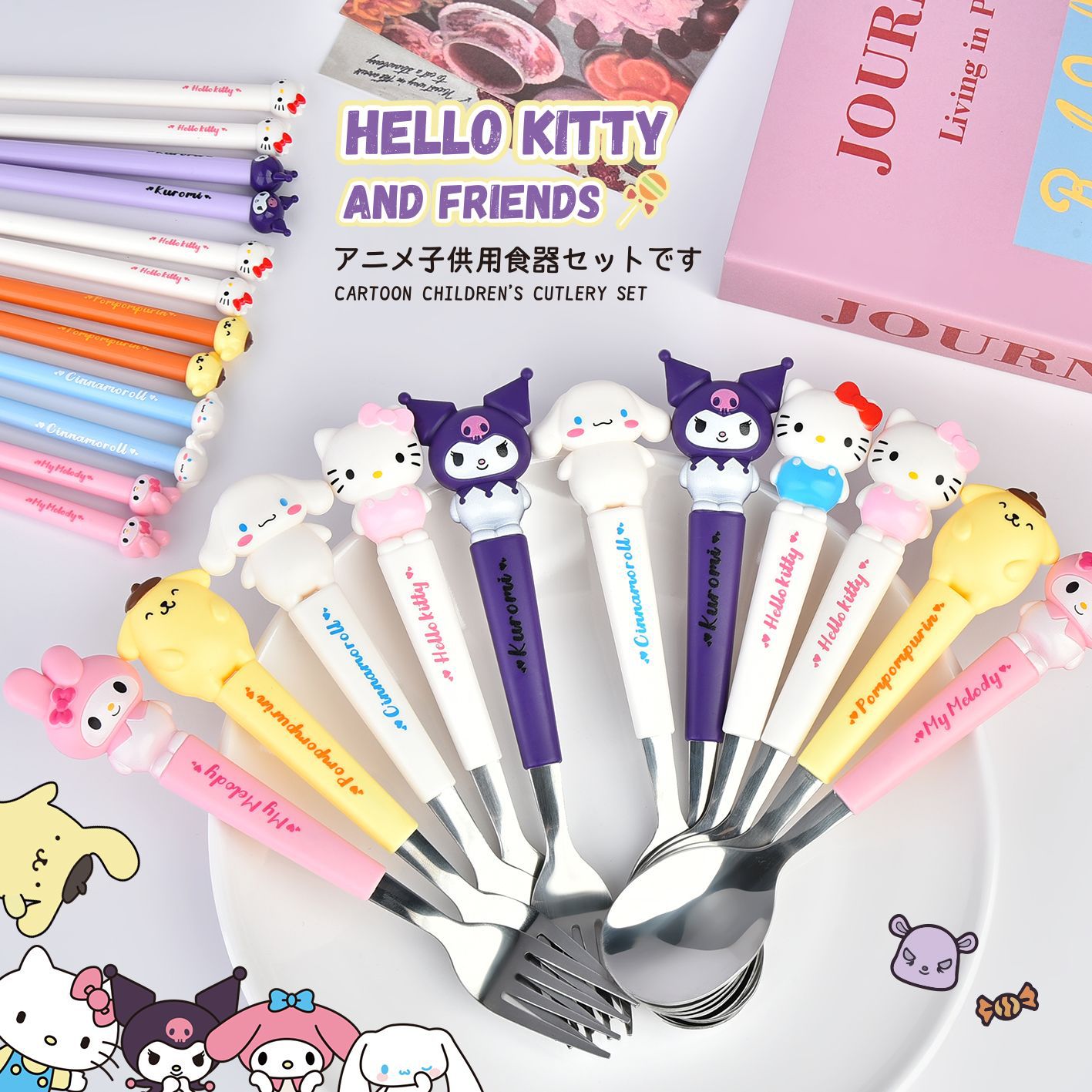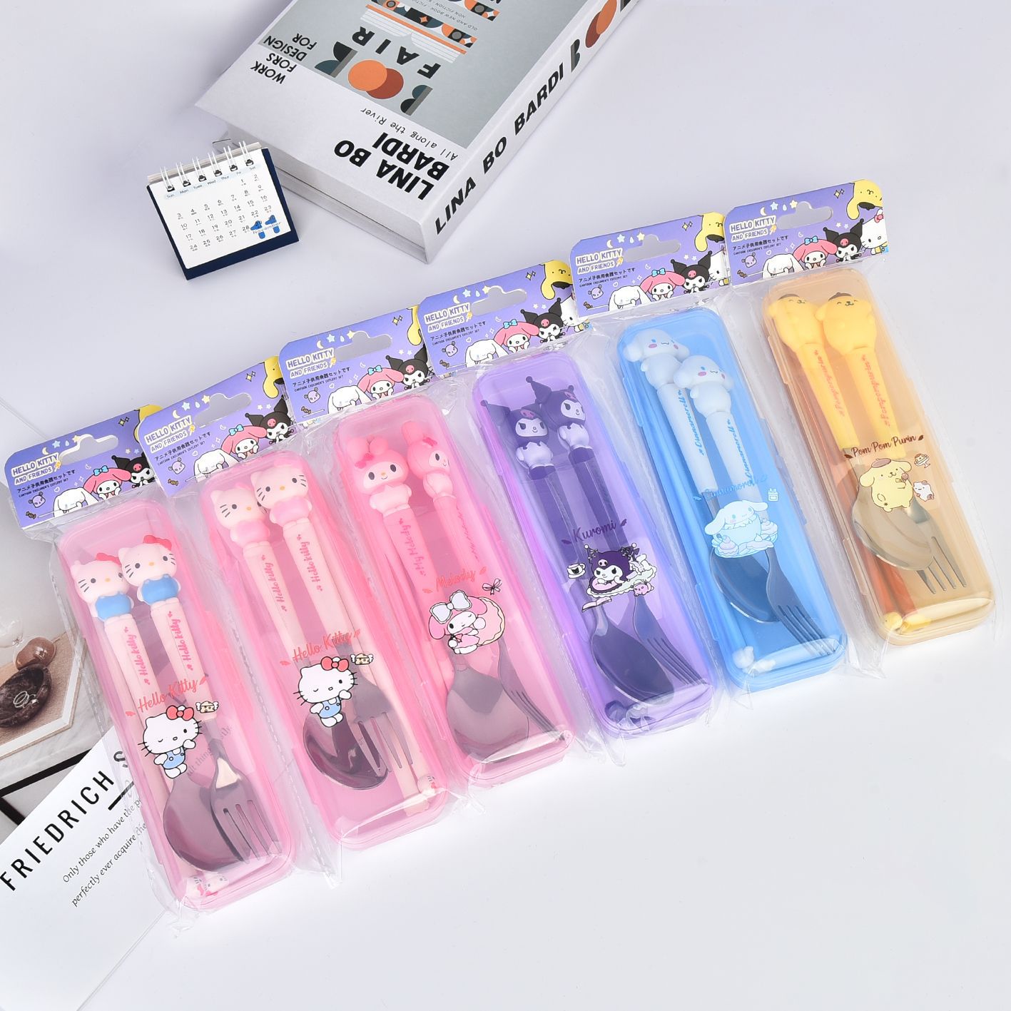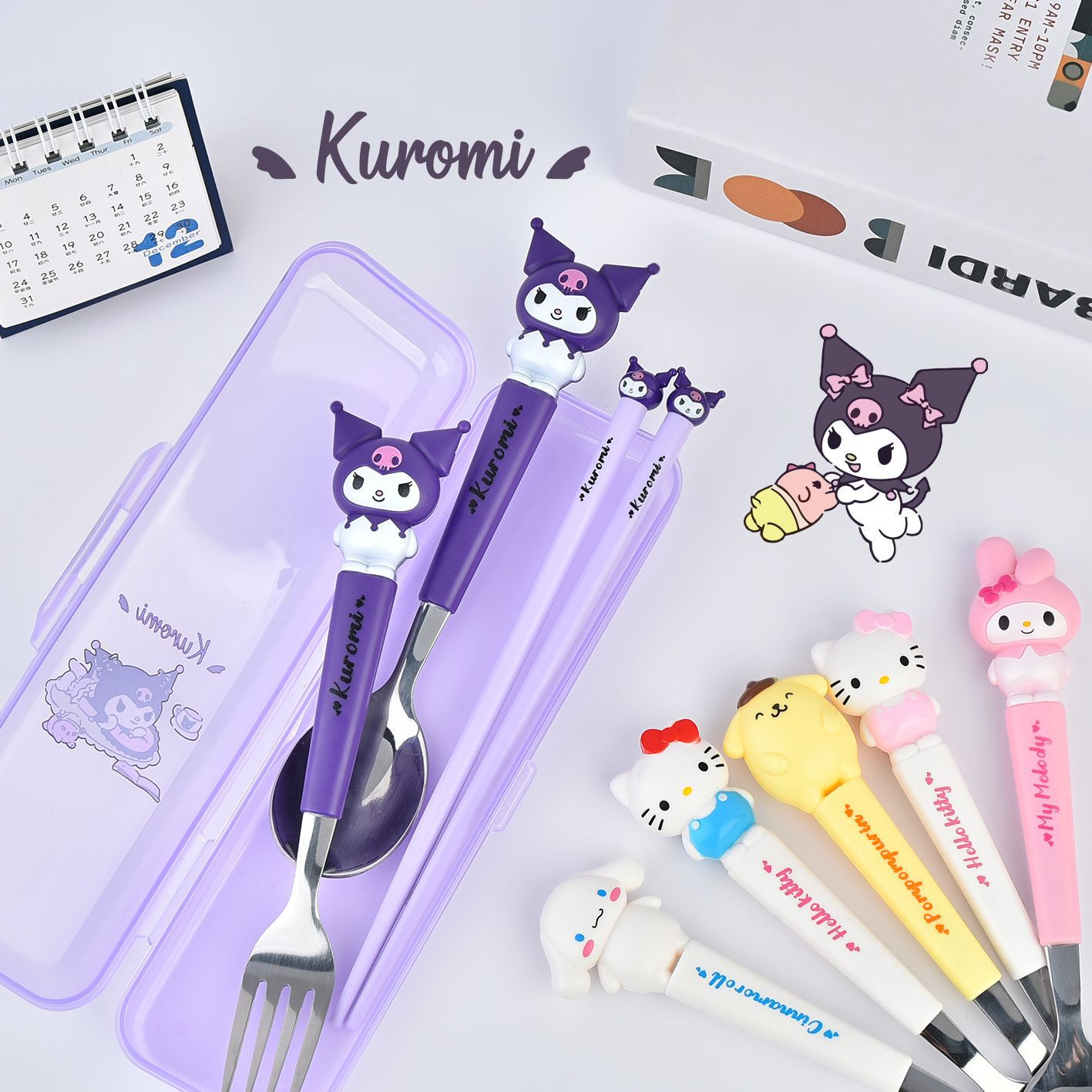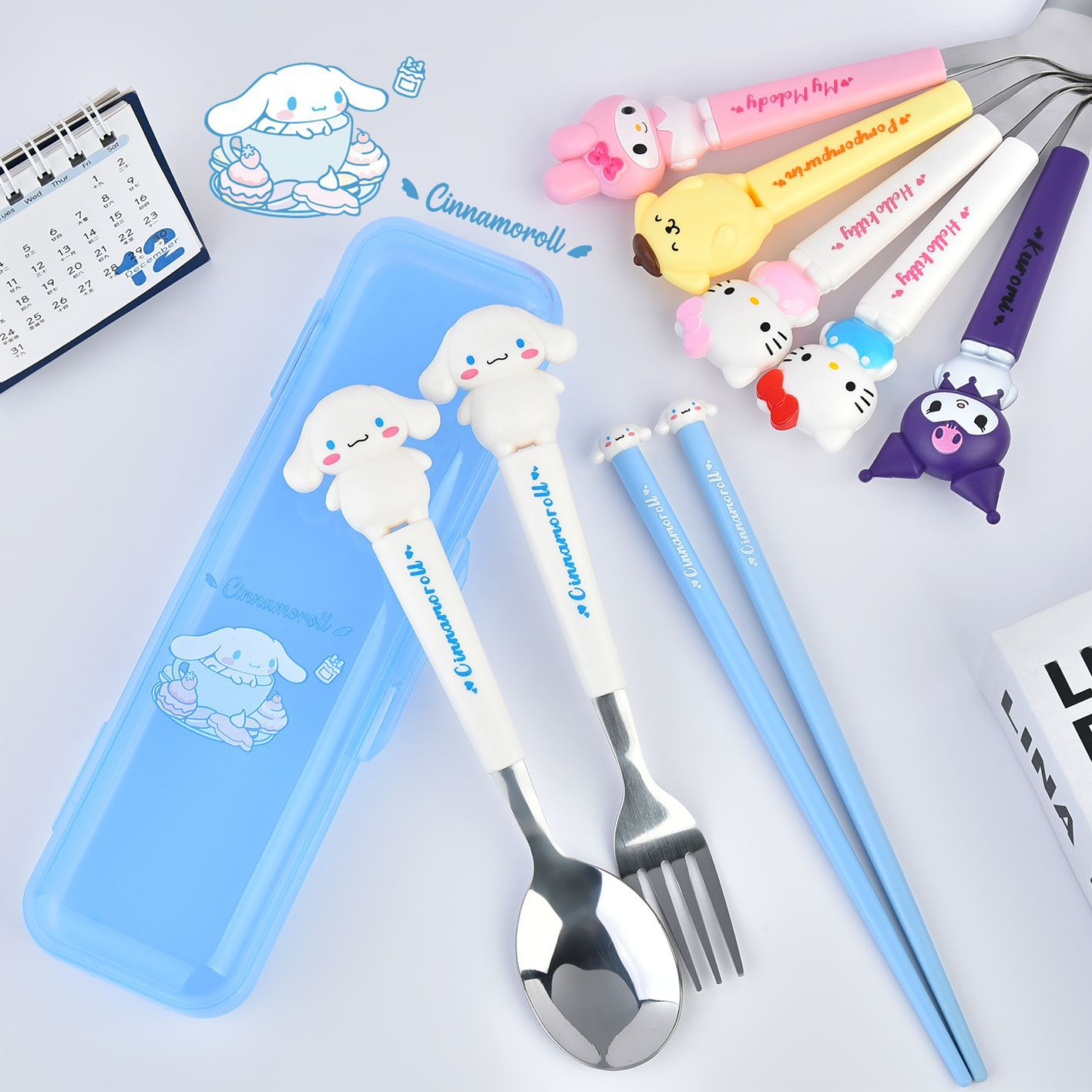 三丽鸥可爱便携三件套装筷子不锈钢叉子