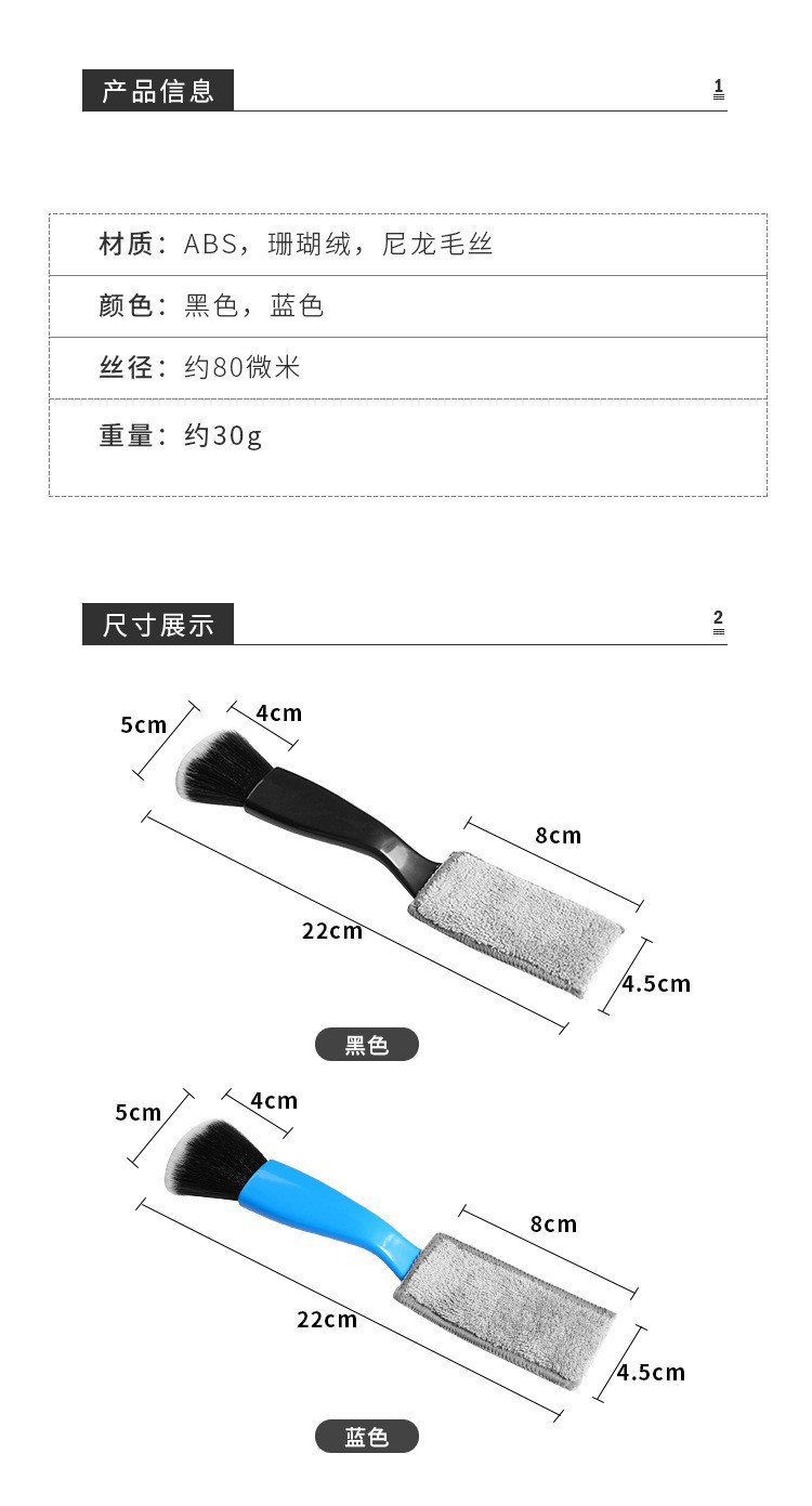에어컨 통풍구 청소 브러시 내부 틈새 청소 도구 양면 먼지 제거 브러시 차량용 청소 자동차 청소