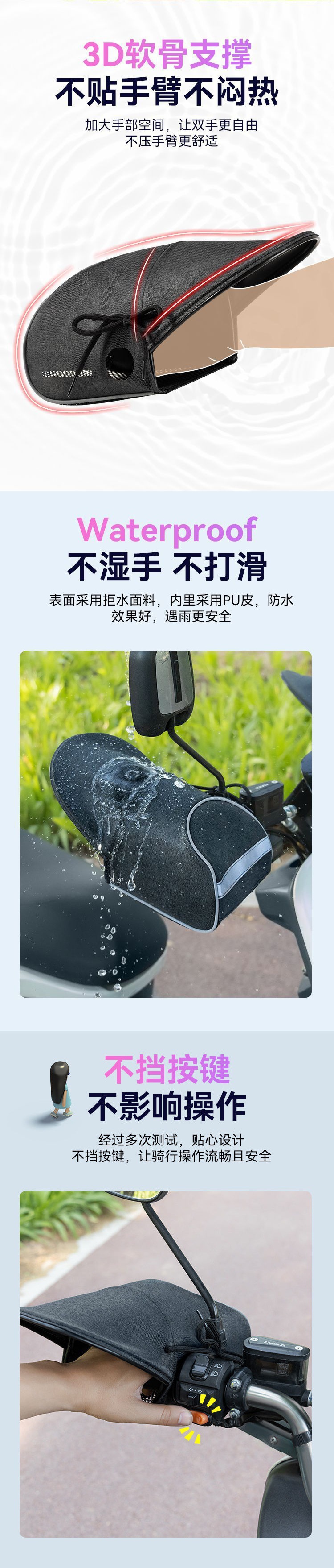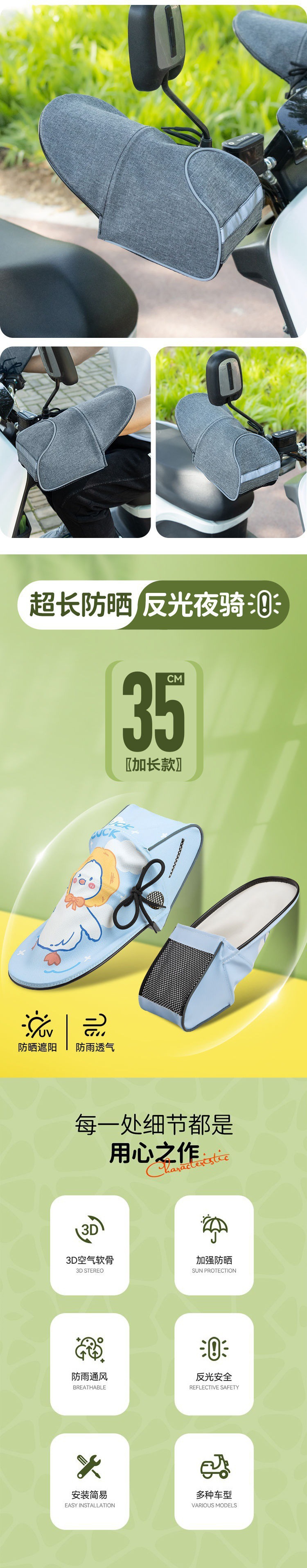 태양 보호 장갑 여름 전기 자전거 트램 오토바이 핸들 커버 배터리 자동차 전기 오토바이 3 차원 핸들 커버 도매