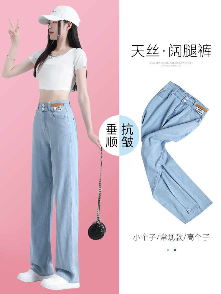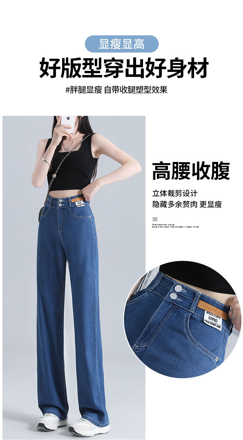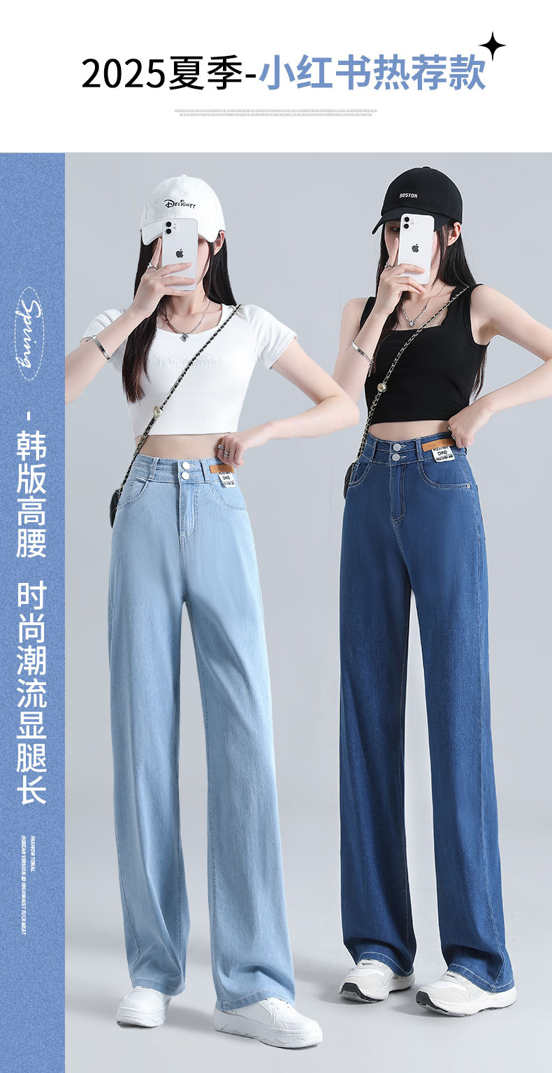 텐셀 여성용 여름 얇은 청바지 2026 신상 하이웨이스트 슬림핏 아이스 실크 와이드 레그 슬림핏 스트레이트 팬츠